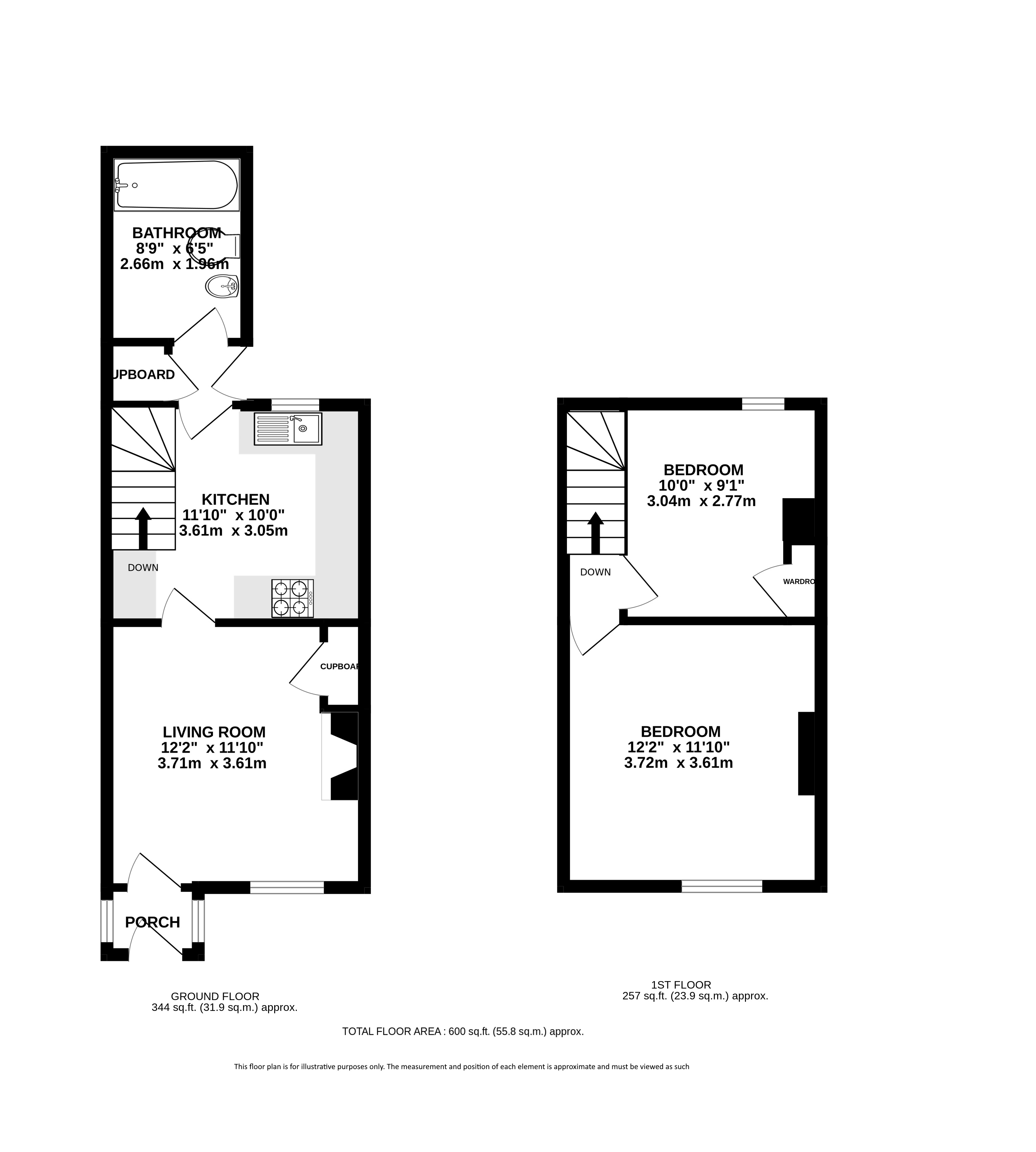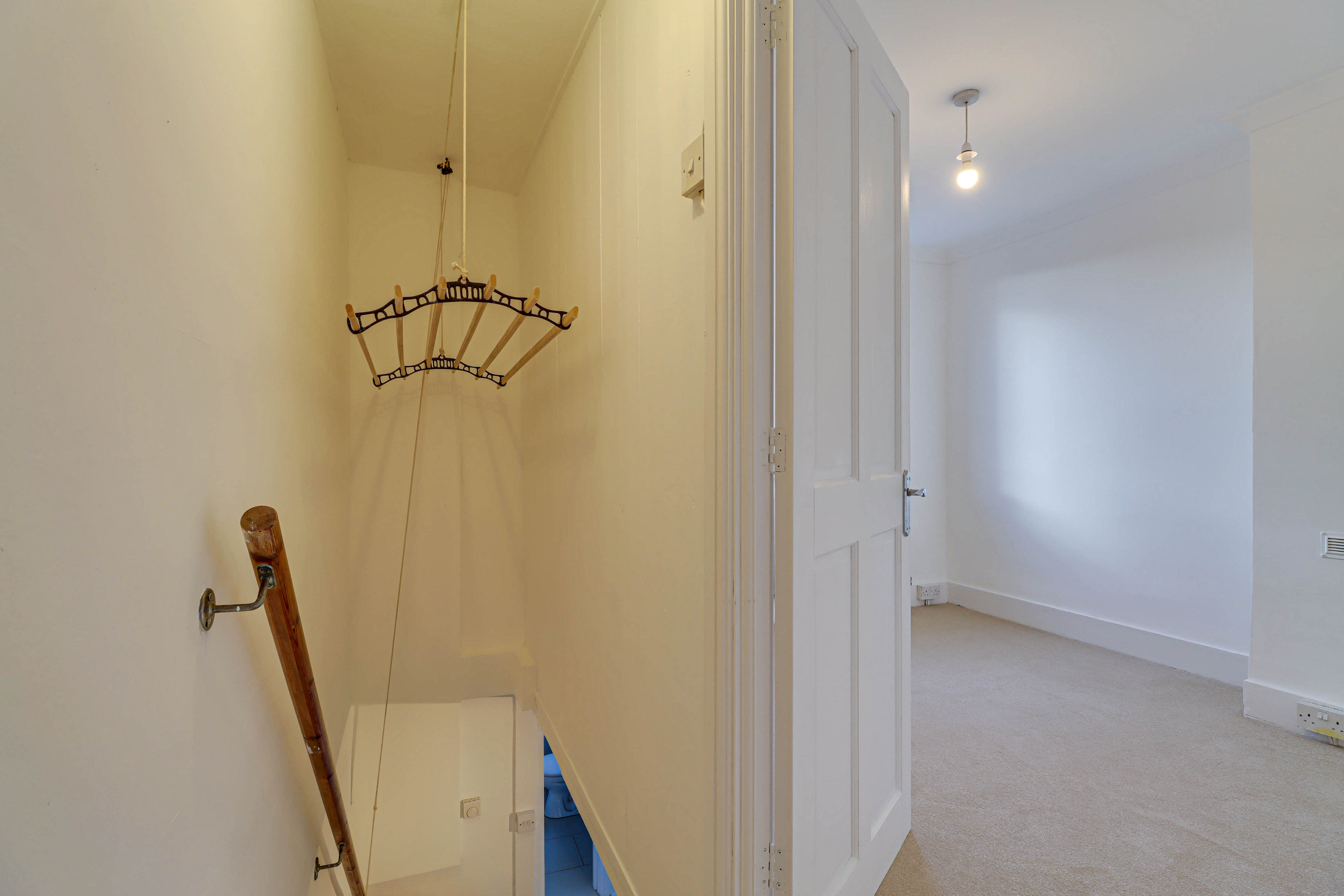 To the rear of the property is the fully tiled bathroom with white suite. There are two double bedrooms on the first floor and there is a useful ceiling mounted laundry dryer above the stairs.
