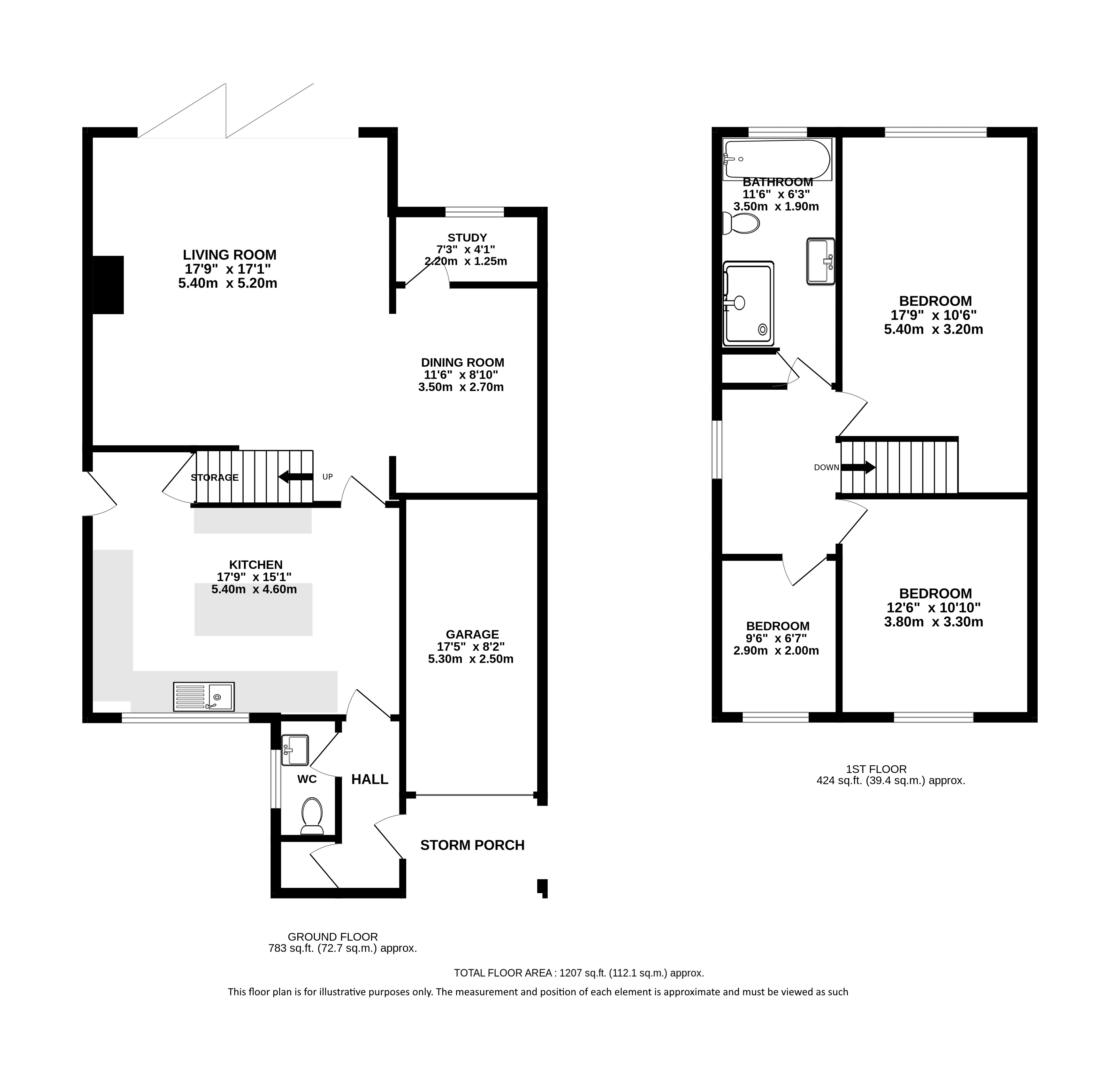 The ground floor is thoughtfully arranged, featuring a spacious living room that offers an inviting space for relaxation and entertaining. This flows seamlessly into a well-proportioned dining room, perfect for family meals and gatherings. The kitchen is impressively sized and well laid out, providing ample workspace and storage, with the added benefit of a useful understairs storage area. A separate study offers an ideal home office or hobby room, while a ground floor WC adds everyday convenience. The property also benefits from an integral garage and a welcoming storm porch entrance.