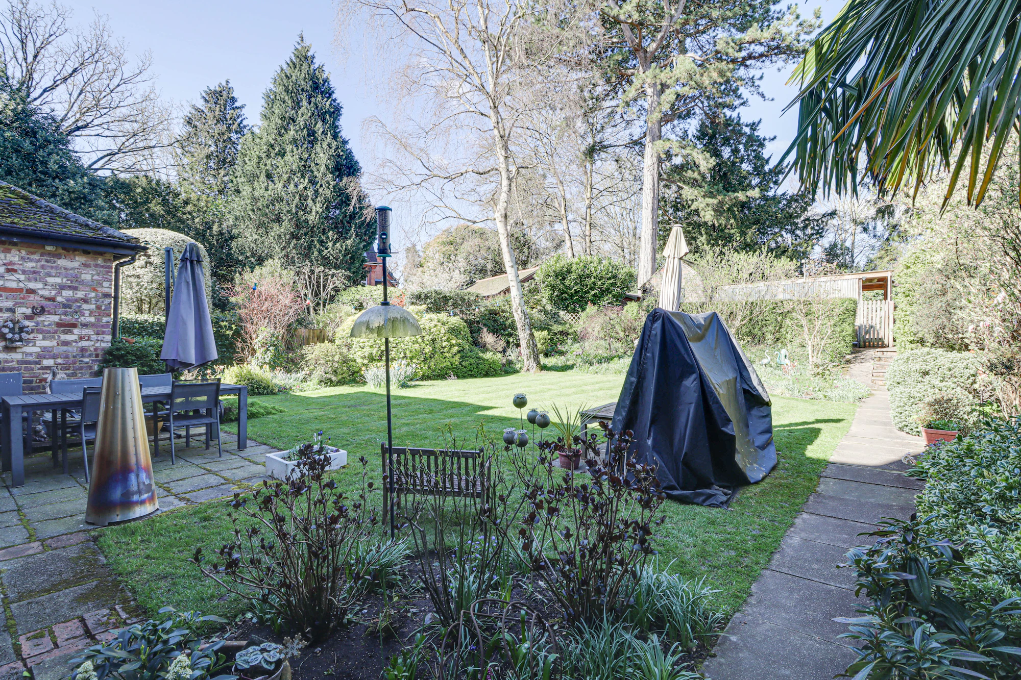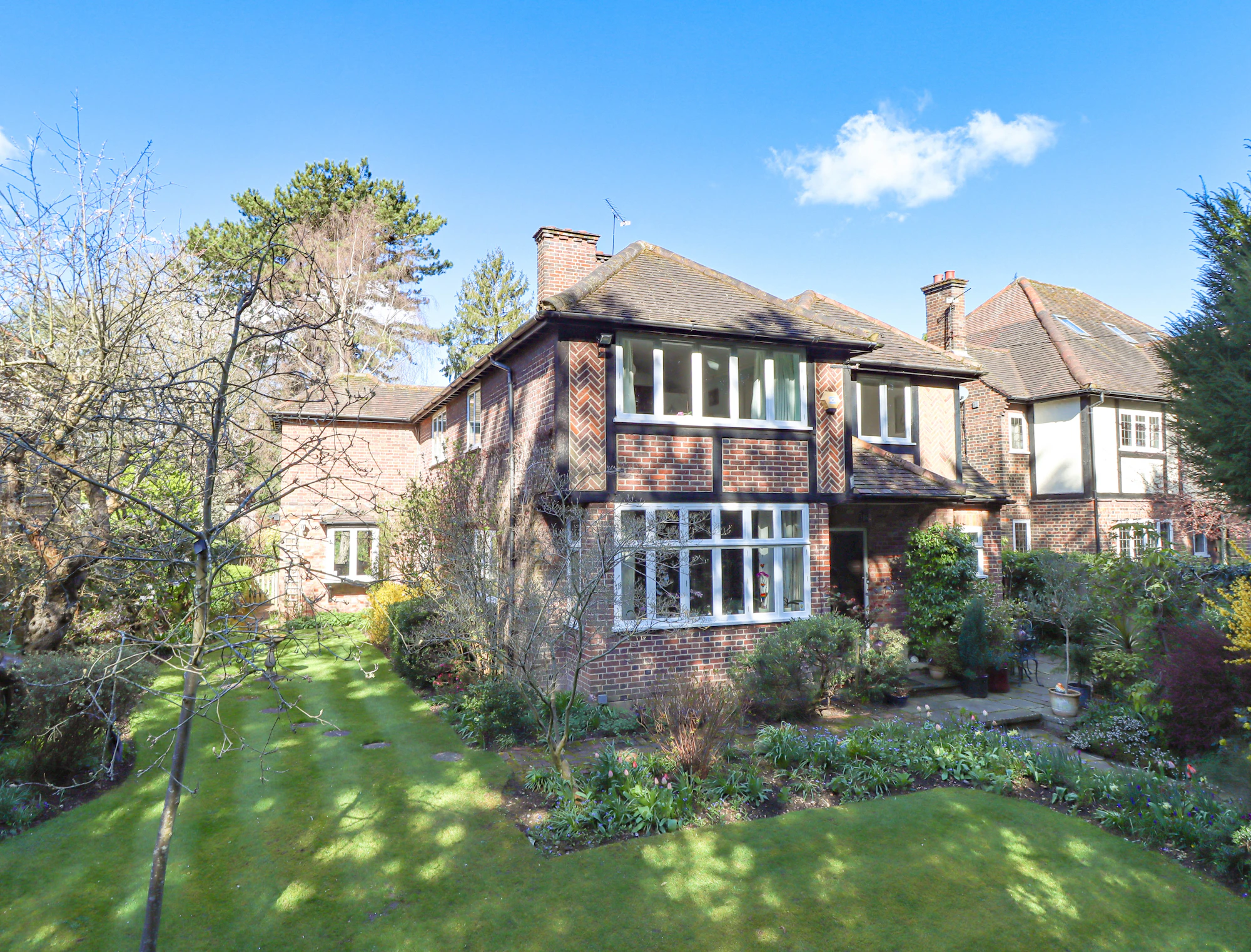 Externally, the wrap-around garden provides a wonderful sense of space and seclusion, ideal for outdoor entertaining, children’s play or further landscaping potential. Parking to the rear enhances both convenience and privacy, with the additional benefit of a detached garage for storage or secure parking.
