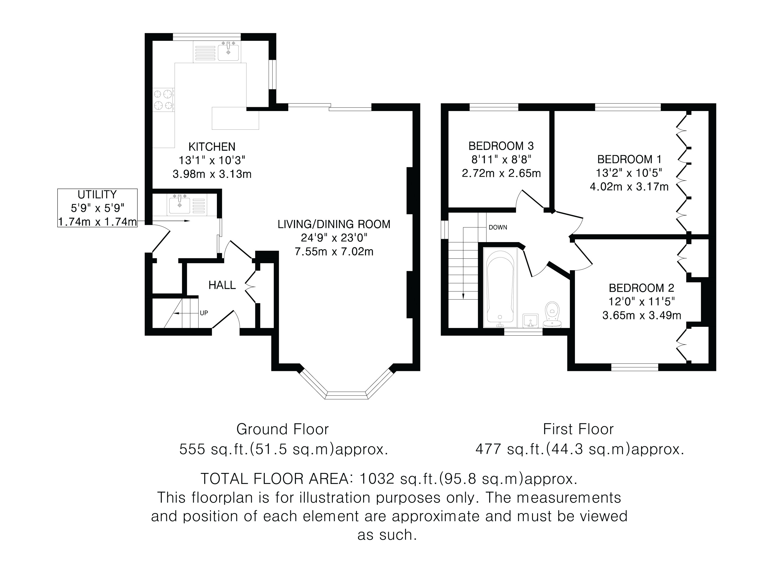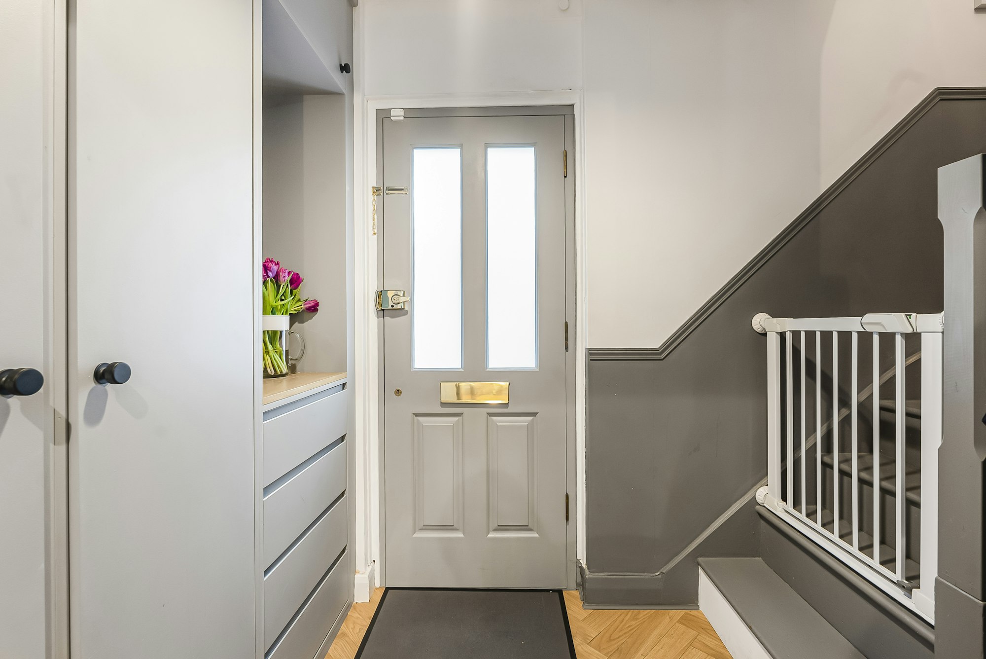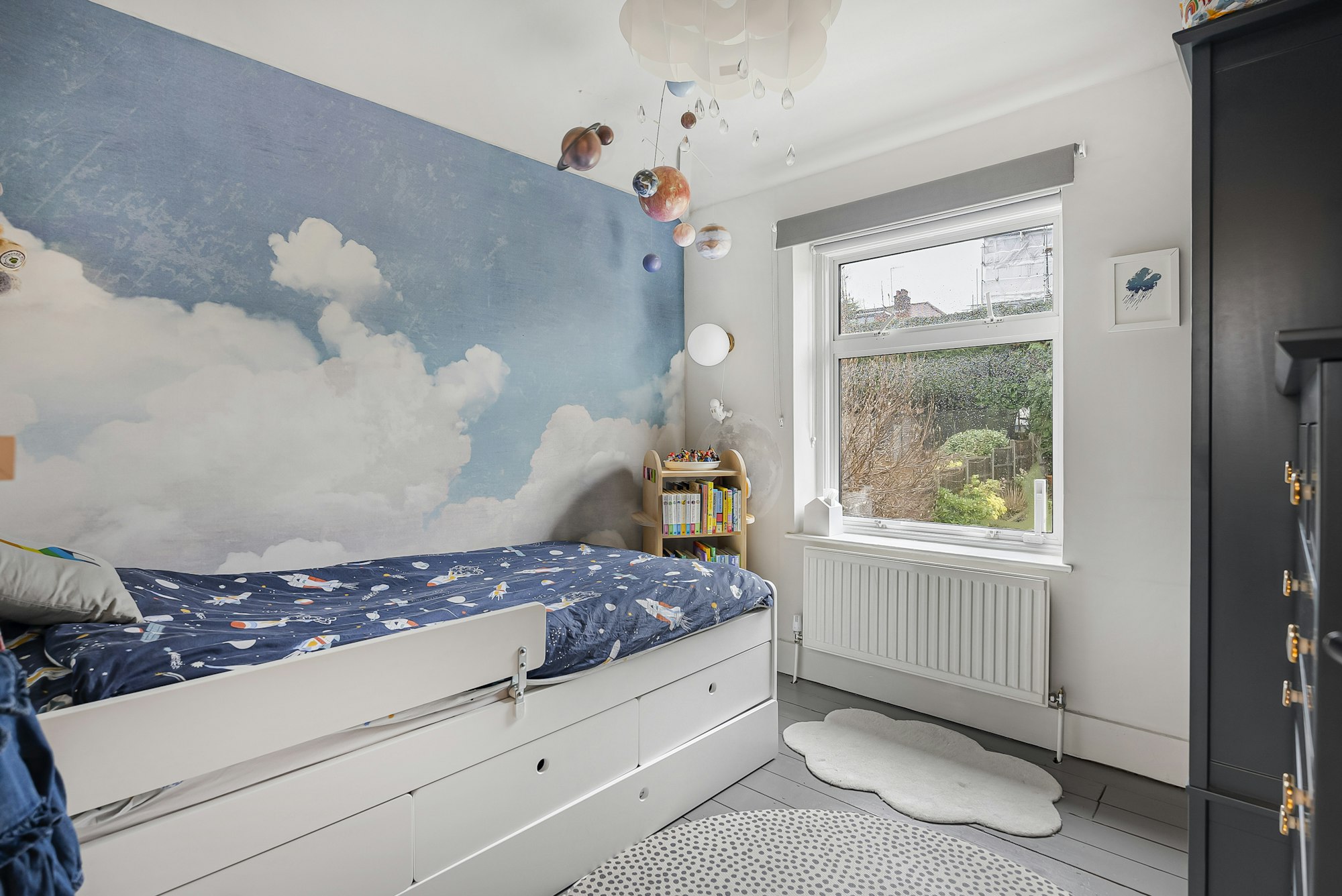 Upstairs, the high-quality finish continues with three well-proportioned bedrooms and a refitted family bathroom. The two largest bedrooms benefit from fitted storage, and the principal bedroom overlooks the front of the property.