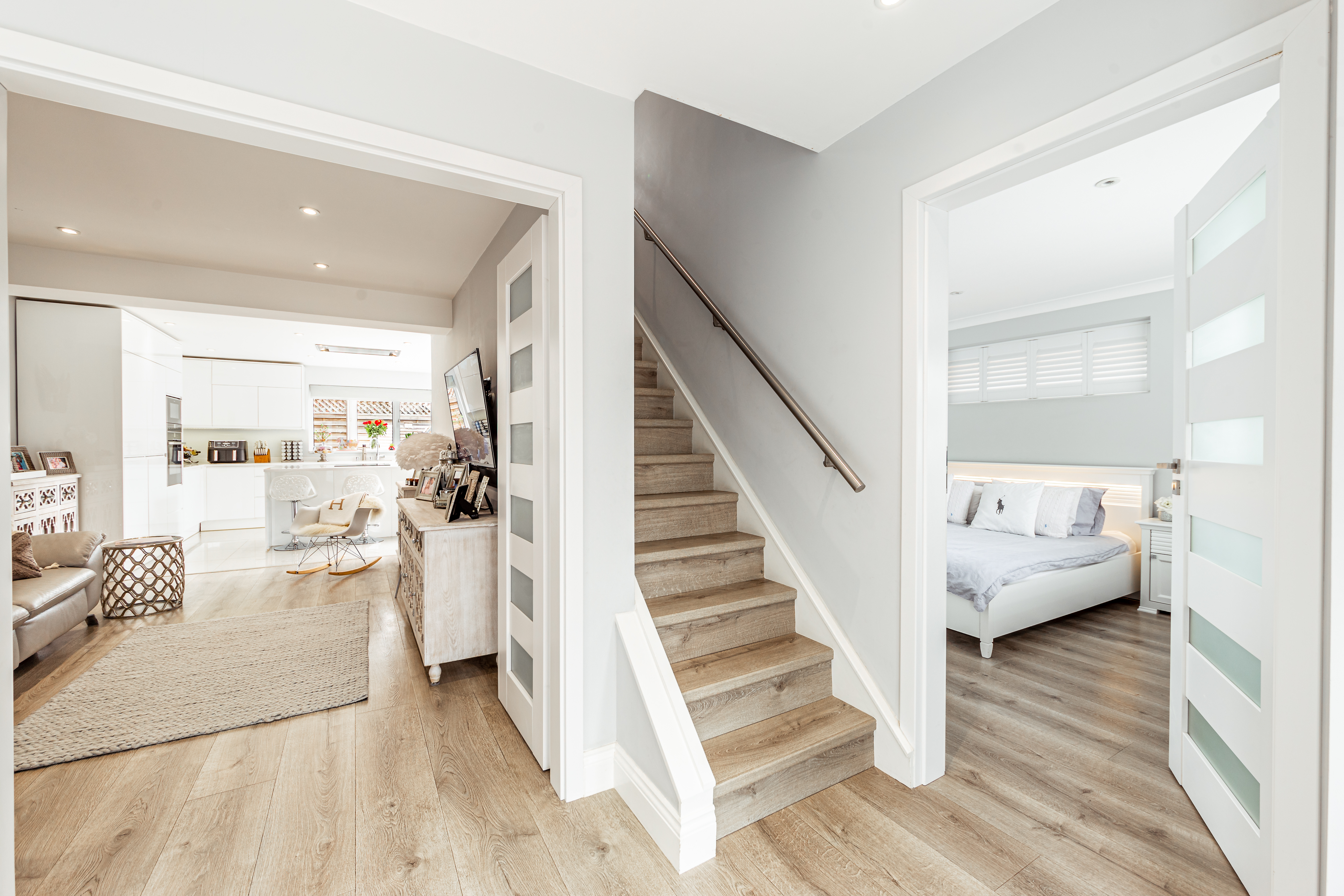 The ground floor welcomes you with a generous entrance hall leading through to a bright and spacious living room, ideal for both relaxing and entertaining. To the rear, the modern fitted kitchen offers ample storage and worktop space, with room for dining and direct access to the rear garden, creating a seamless flow for everyday living. A further large double bedroom with modern en-suite completes the ground floor.