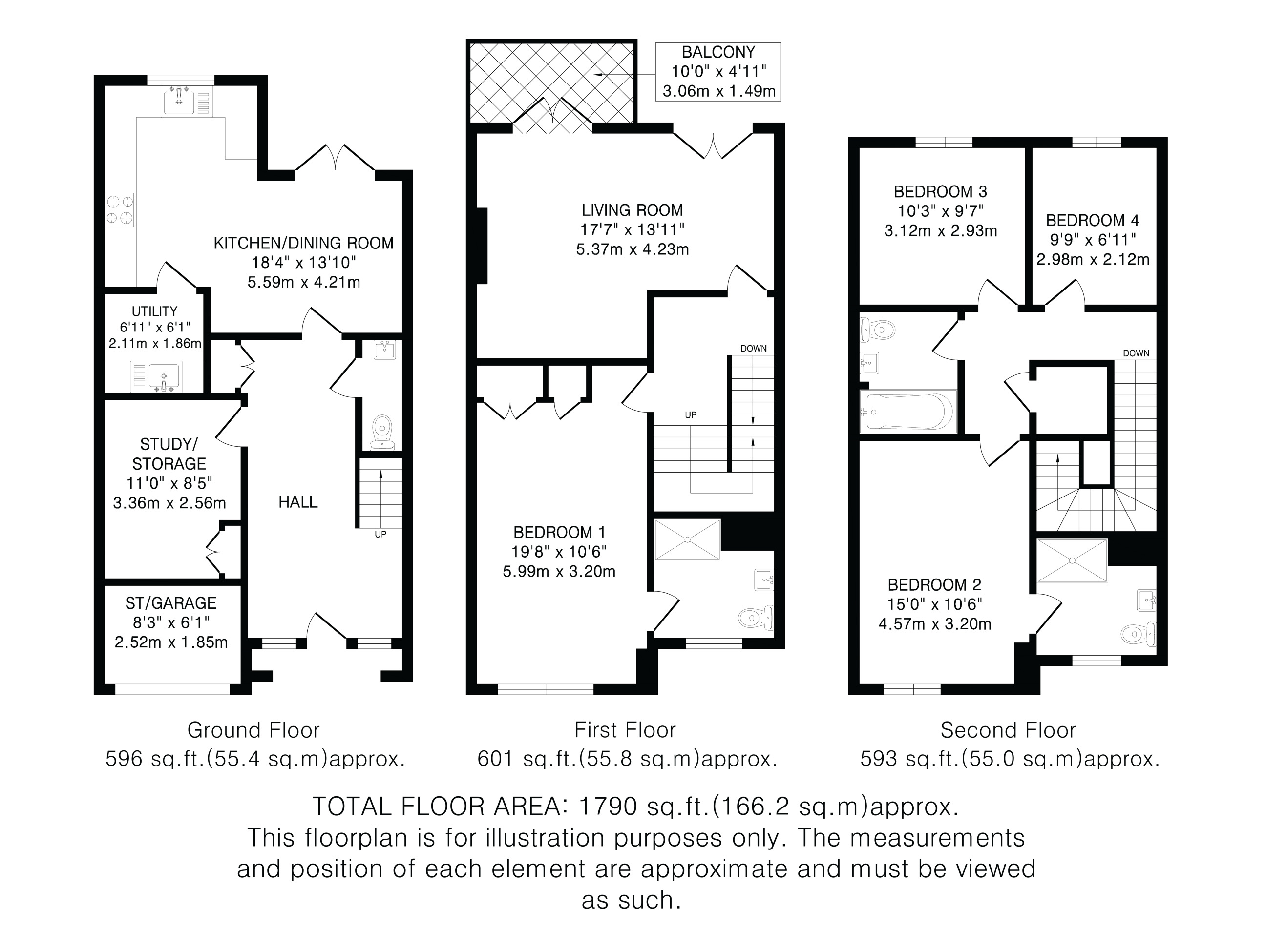 The second floor provides three further bedrooms, including another en-suite shower room to one, along with a contemporary family bathroom accessed from the landing.