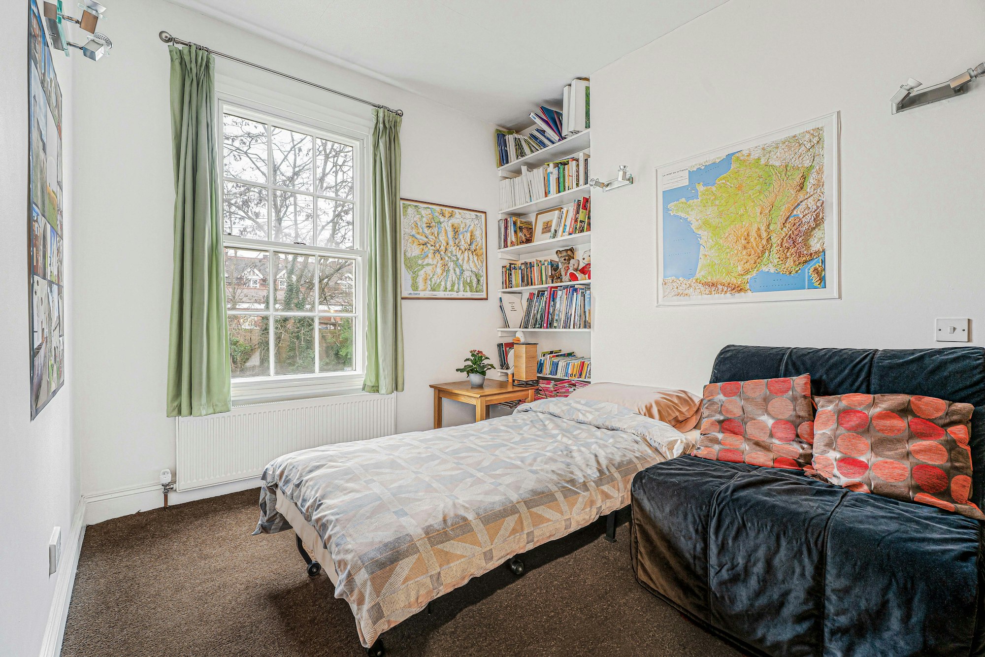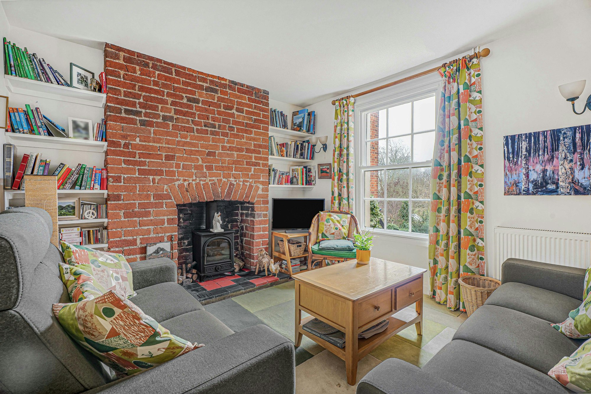 Upstairs, the first floor comprises three bedrooms, including two generous doubles and a third room well suited as a child’s bedroom, home office or nursery. A family bathroom serves the accommodation, accessed from the central landing.