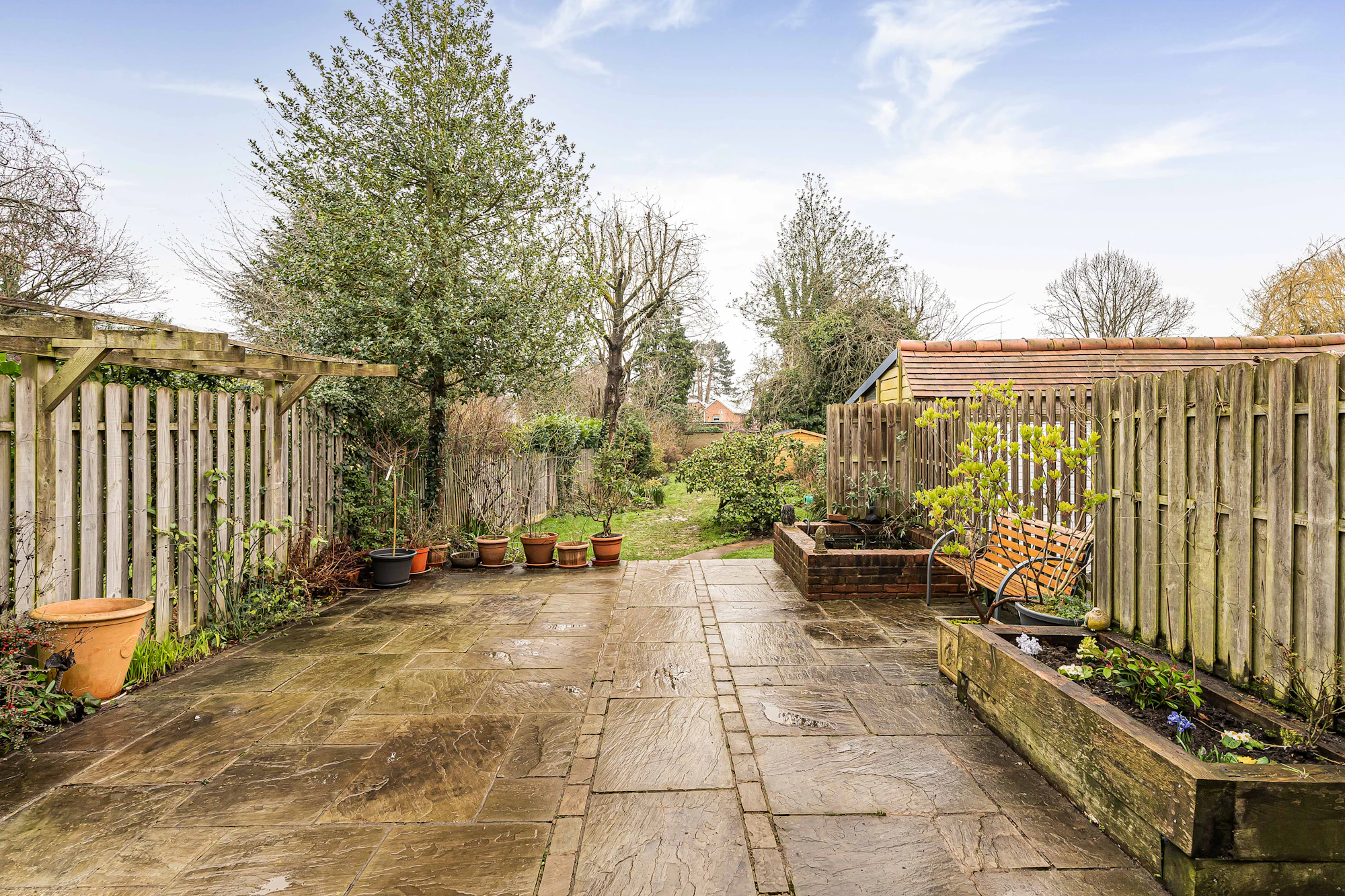 Externally, the property boasts a 180ft rear garden offering excellent privacy and ample space for outdoor entertaining, children’s play, or future extension. To the front, off-street parking and a detached garage provide valuable convenience.