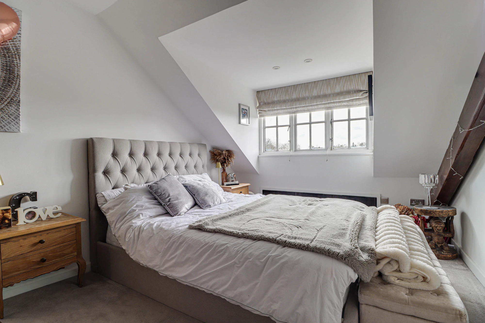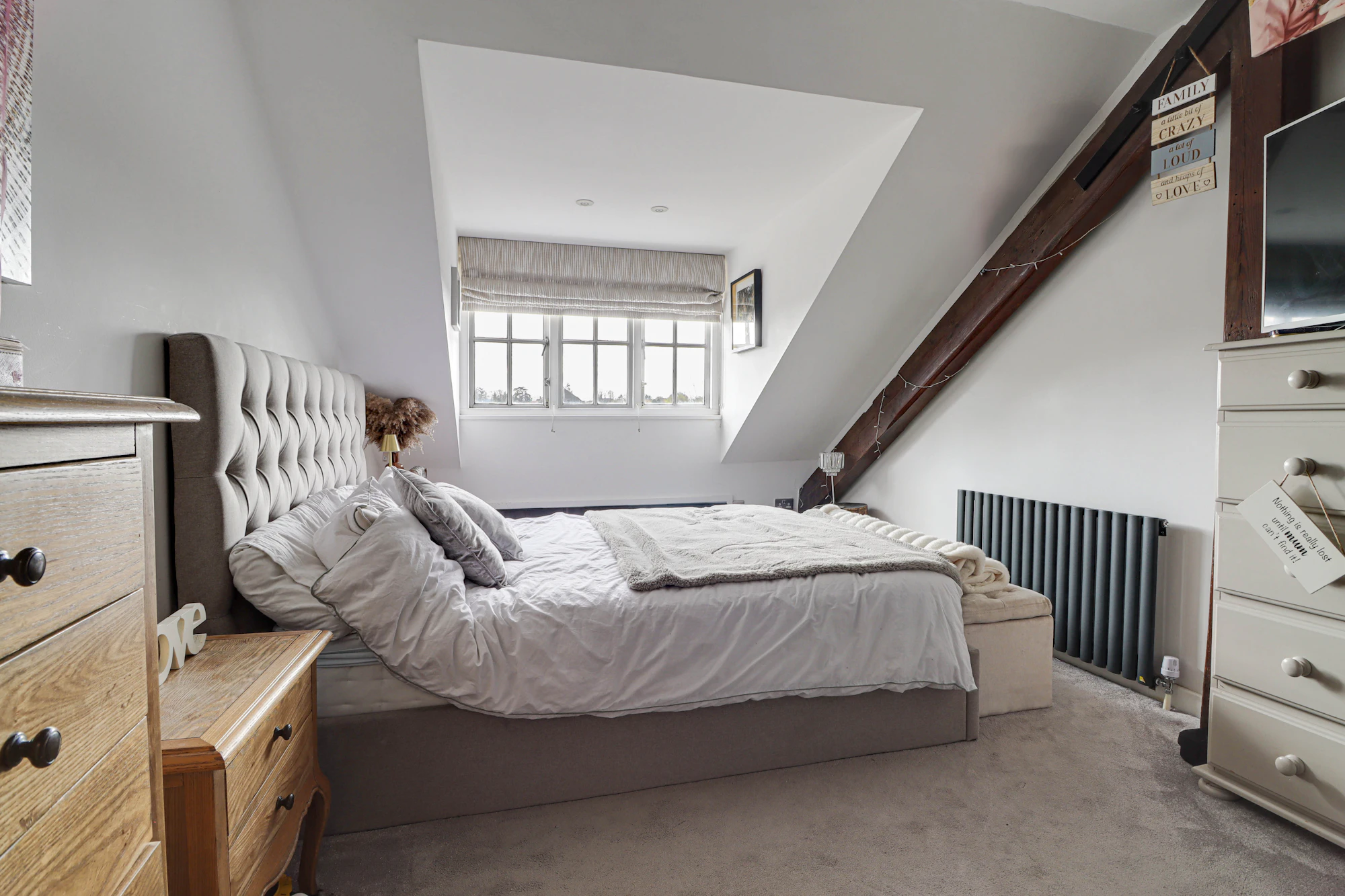 There are two well-proportioned bedrooms with the principal bedroom benefitting from a double wardrobe and a large family bathroom featuring a full-size bath and a separate double shower cubicle, providing both comfort and practicality. There is plenty of storage space including eaves storage drawers and boarded loft space with ladder access.