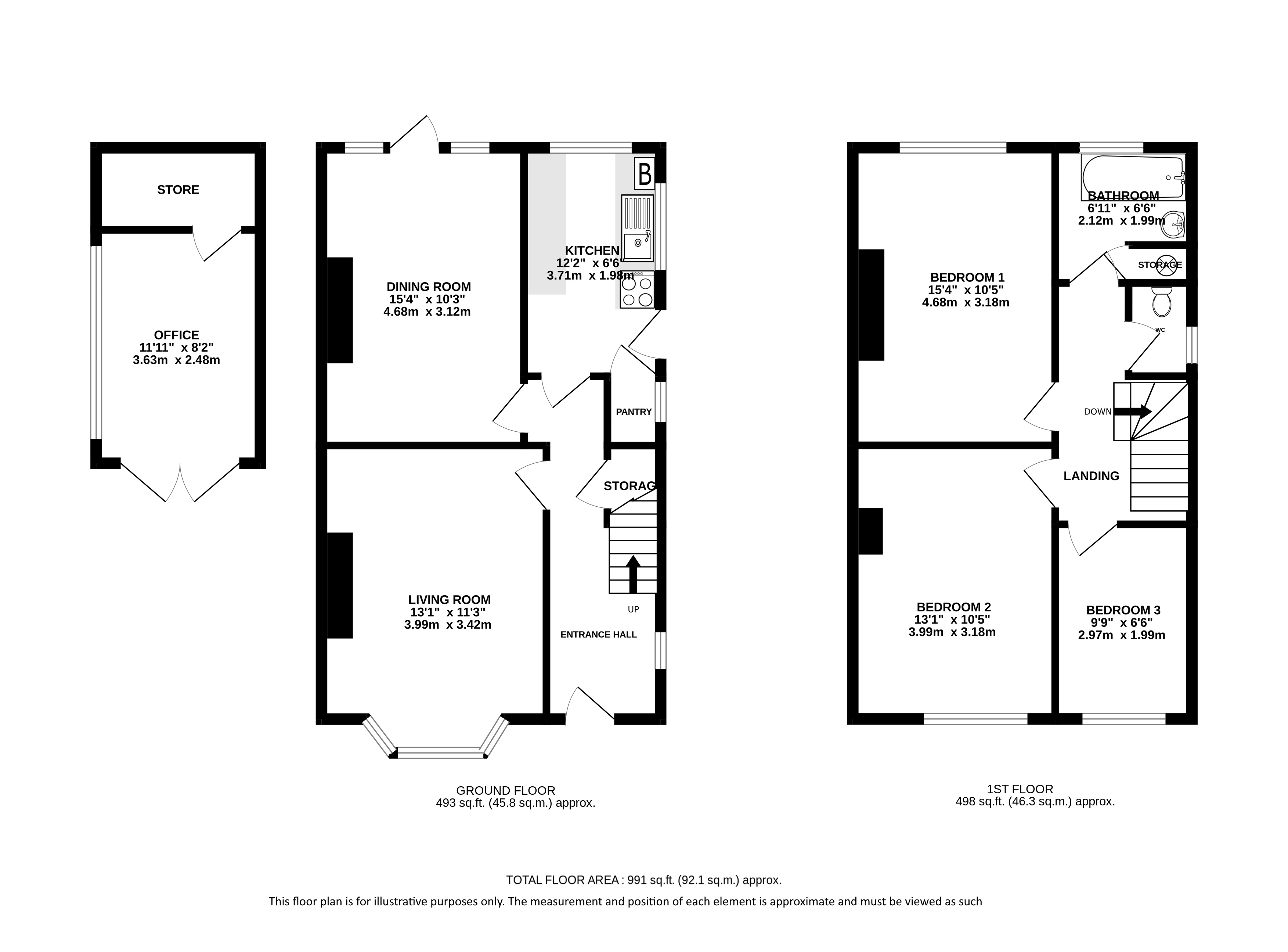 The ground floor features a welcoming entrance hall leading through to a bright and spacious living room, enhanced by a bay window that fills the space with natural light. To the rear, a generous dining room provides the perfect setting for entertaining and overlooks the garden, while the adjoining kitchen offers practicality with additional pantry and storage space.