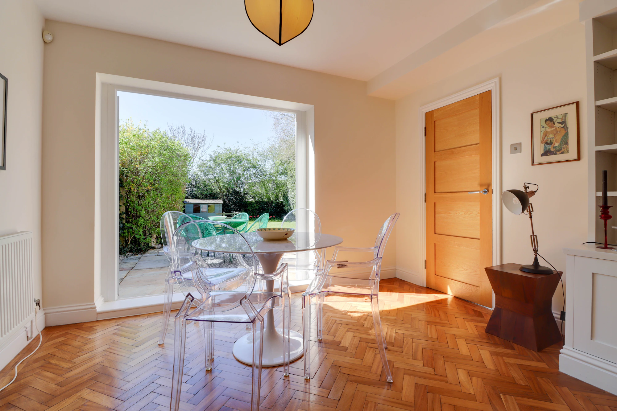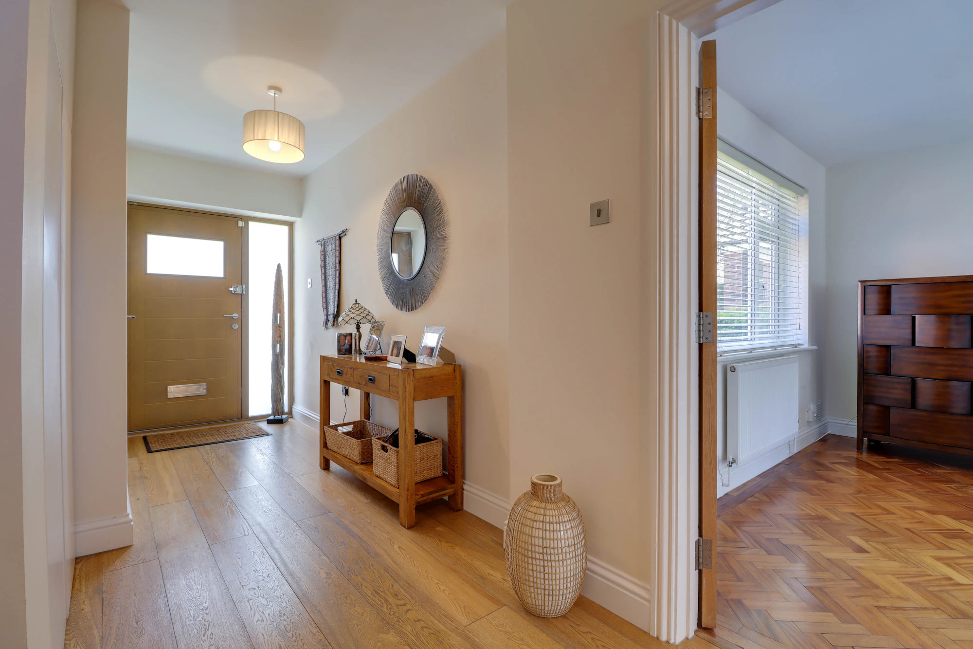 Upstairs, the property boasts four well-proportioned bedrooms, including a spacious principal bedroom with dressing room and en-suite shower room. The remaining bedrooms are served by a modern family bathroom, ensuring comfortable accommodation for growing families.