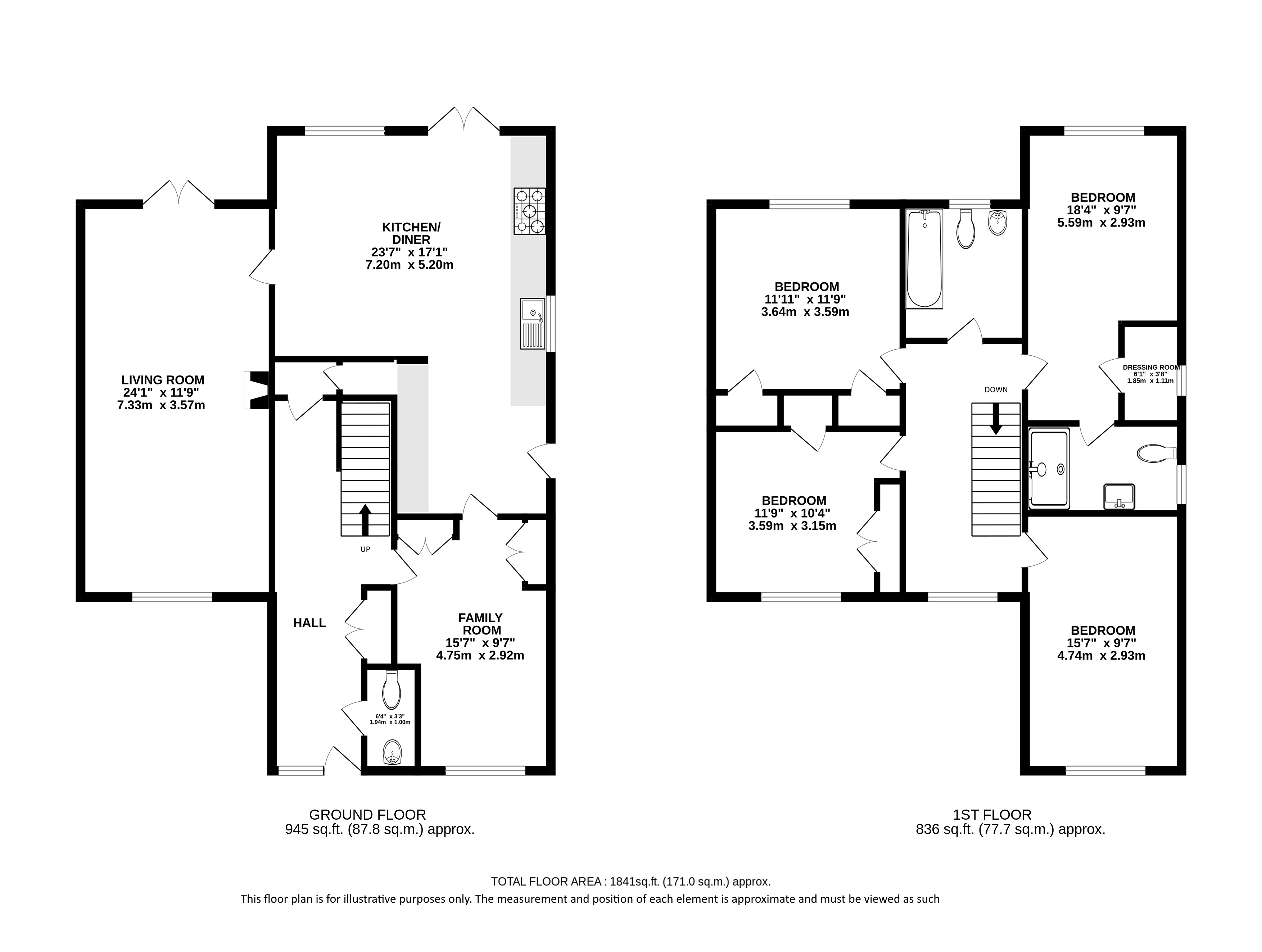 The ground floor provides generous living space, featuring a bright and welcoming sitting room to the front, perfect for relaxing or entertaining. To the rear, a substantial open-plan kitchen/dining room forms the heart of the home, offering ample space for dining and everyday family life, with direct access to the impressive rear garden. A separate family room adds further flexibility, ideal as a playroom, home office, or snug, complemented by a convenient ground floor cloakroom.