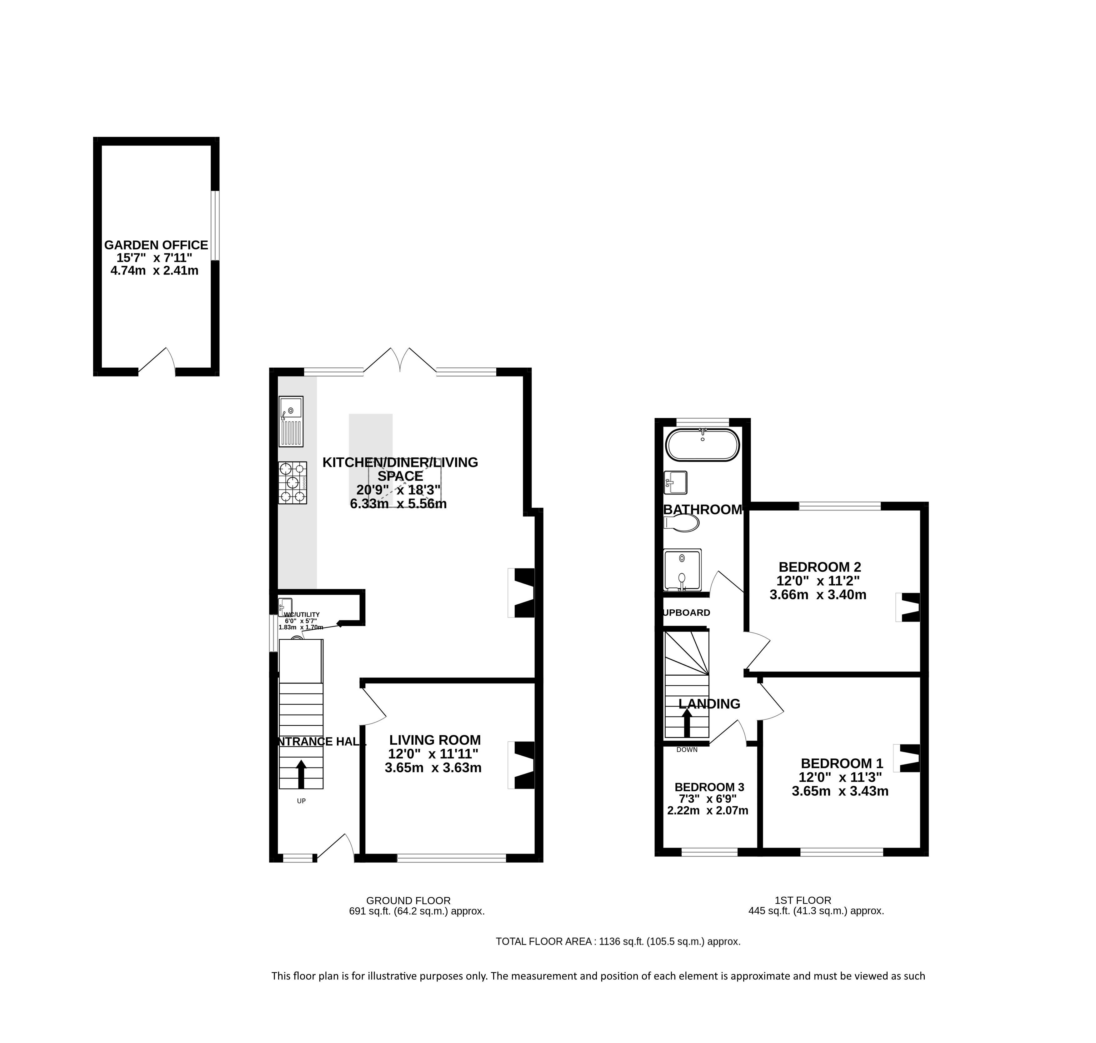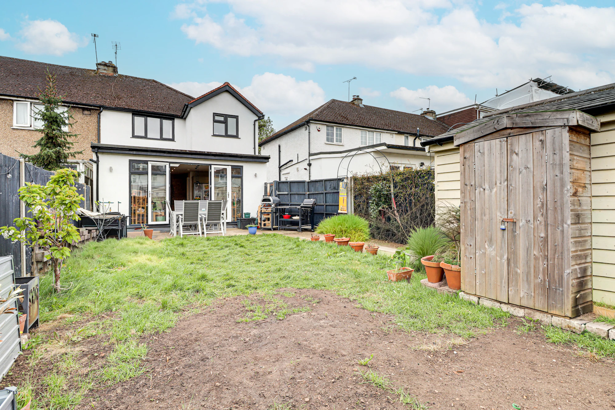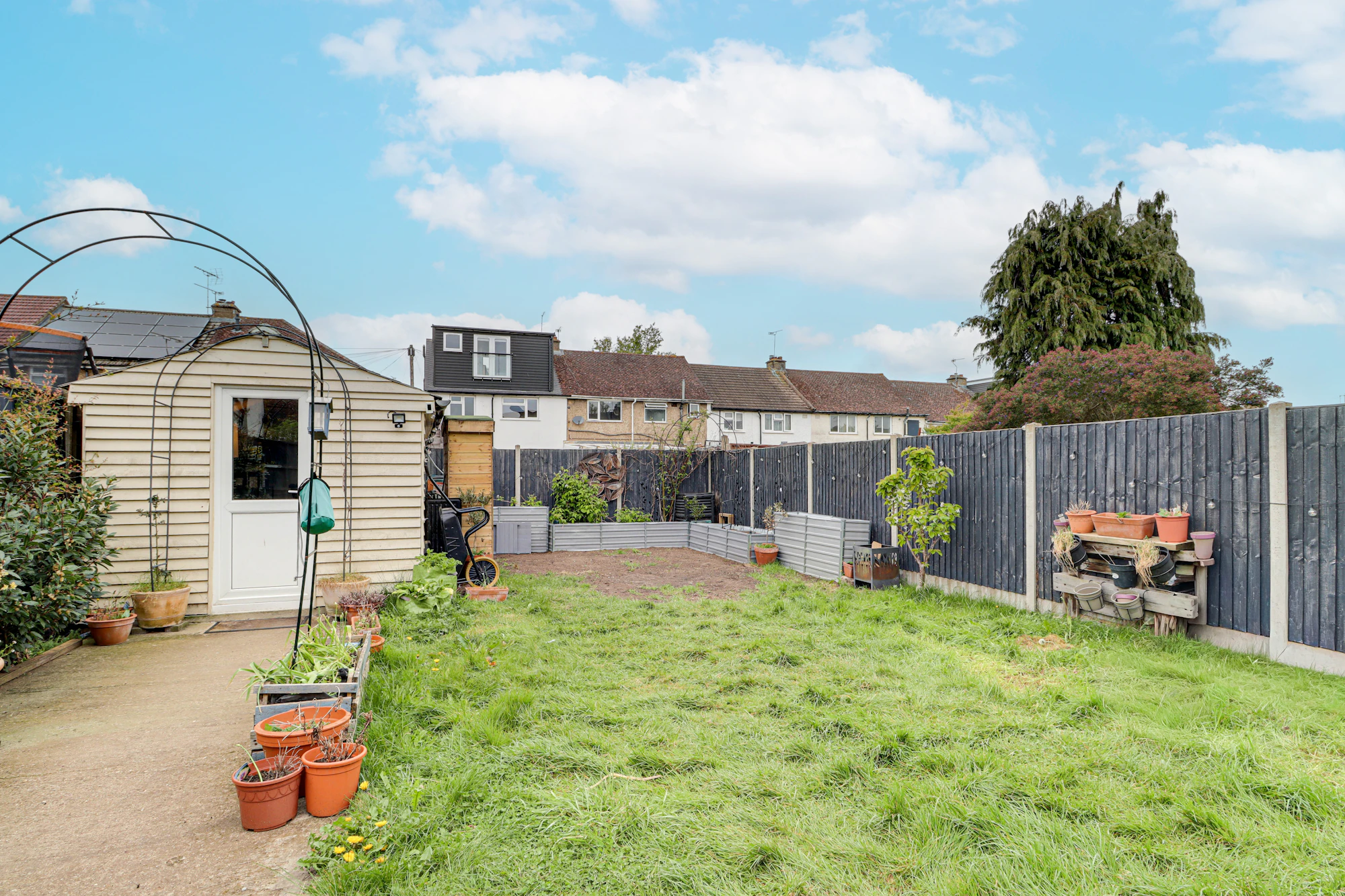 The rear garden is a good size and is largely laid to lawn and there is a paved seating area close to the house which leads to property’s excellent home office, converted from a garage by the current owners.