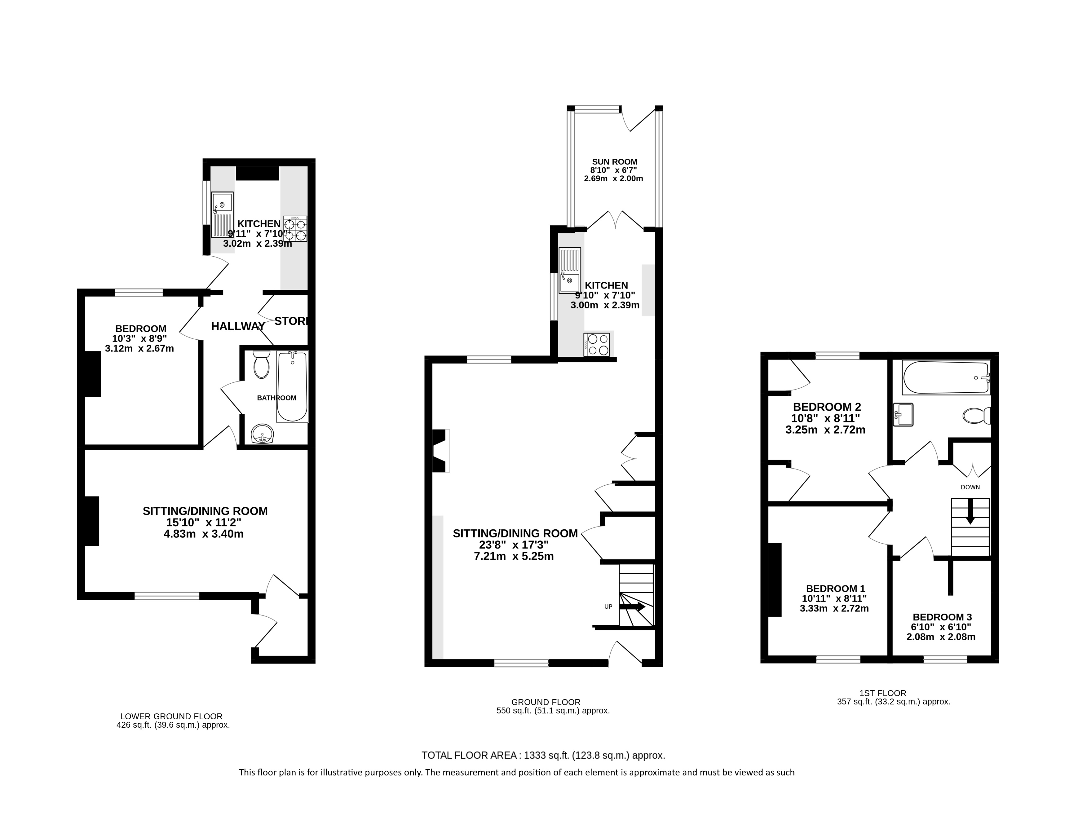 The first property is arranged over two floors and provides well-balanced accommodation. The ground floor features a spacious sitting/dining room, a well-proportioned kitchen, and a bright sunroom overlooking the garden, ideal for relaxing or entertaining. Upstairs, there are three bedrooms and a family bathroom, creating a comfortable and practical living space.