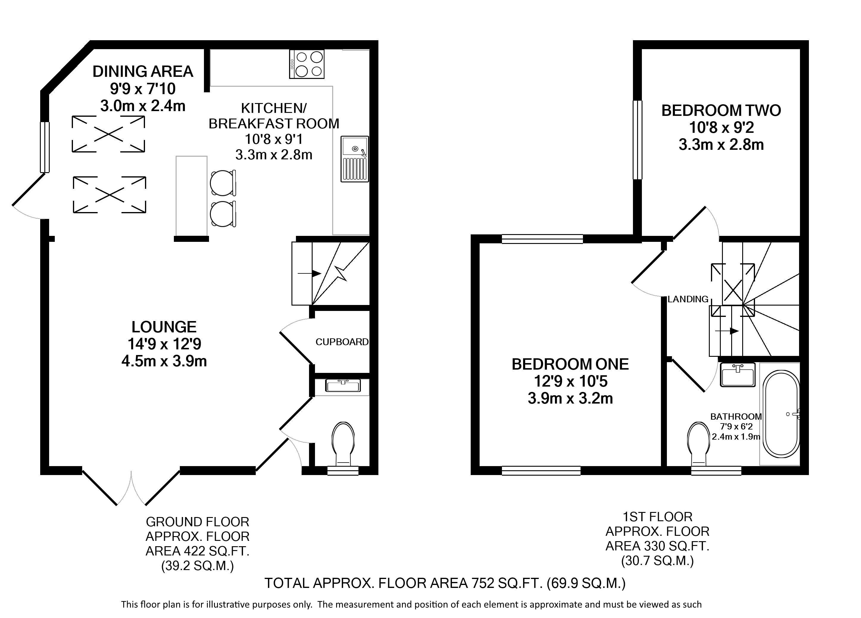 The first floor landing has a large Velux window bringing in plenty of natural light. Both bedrooms can accommodate a double bed and there is a fully tiled family bathroom with a bath/shower-over, w/c, hand wash basin and a front aspect window.