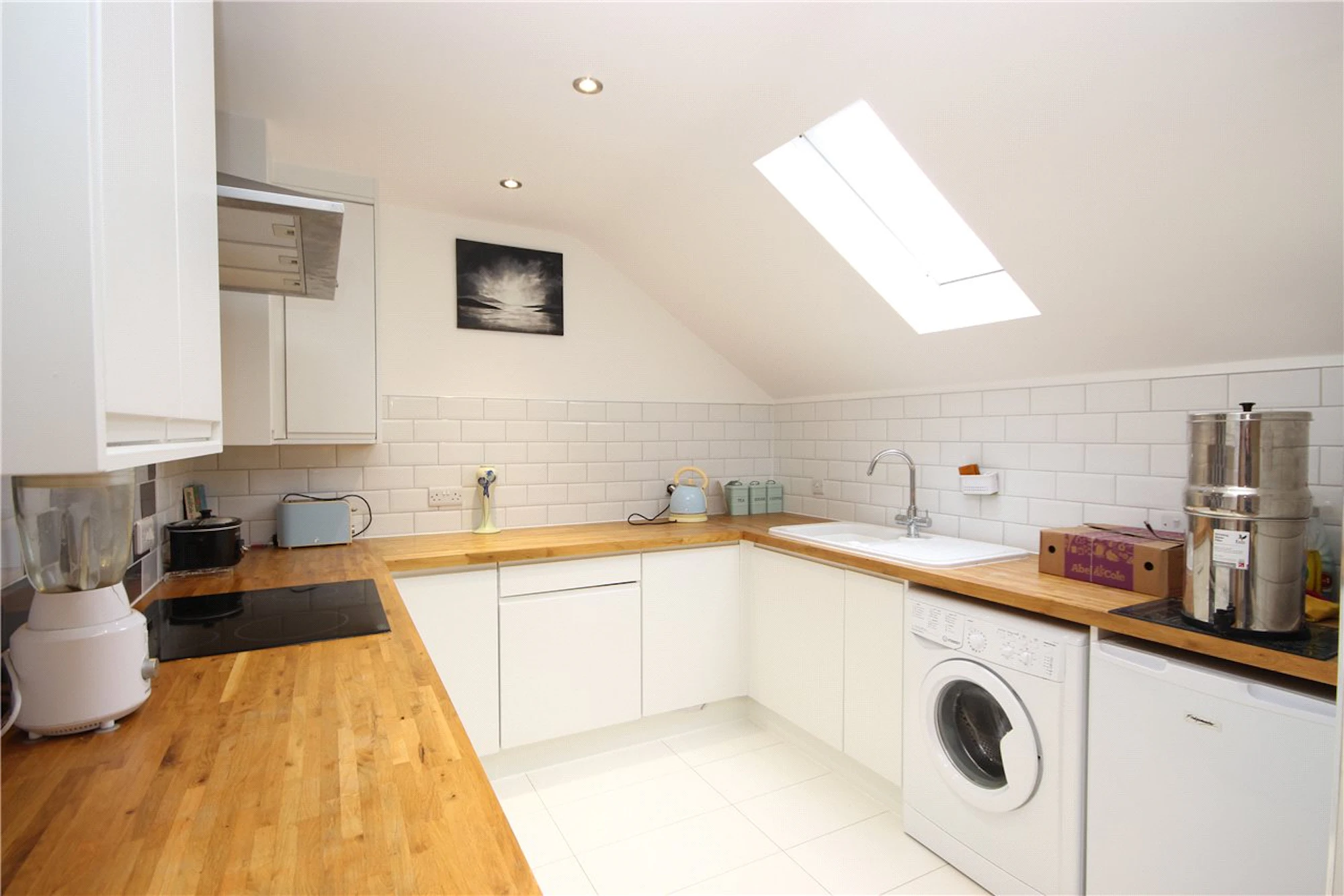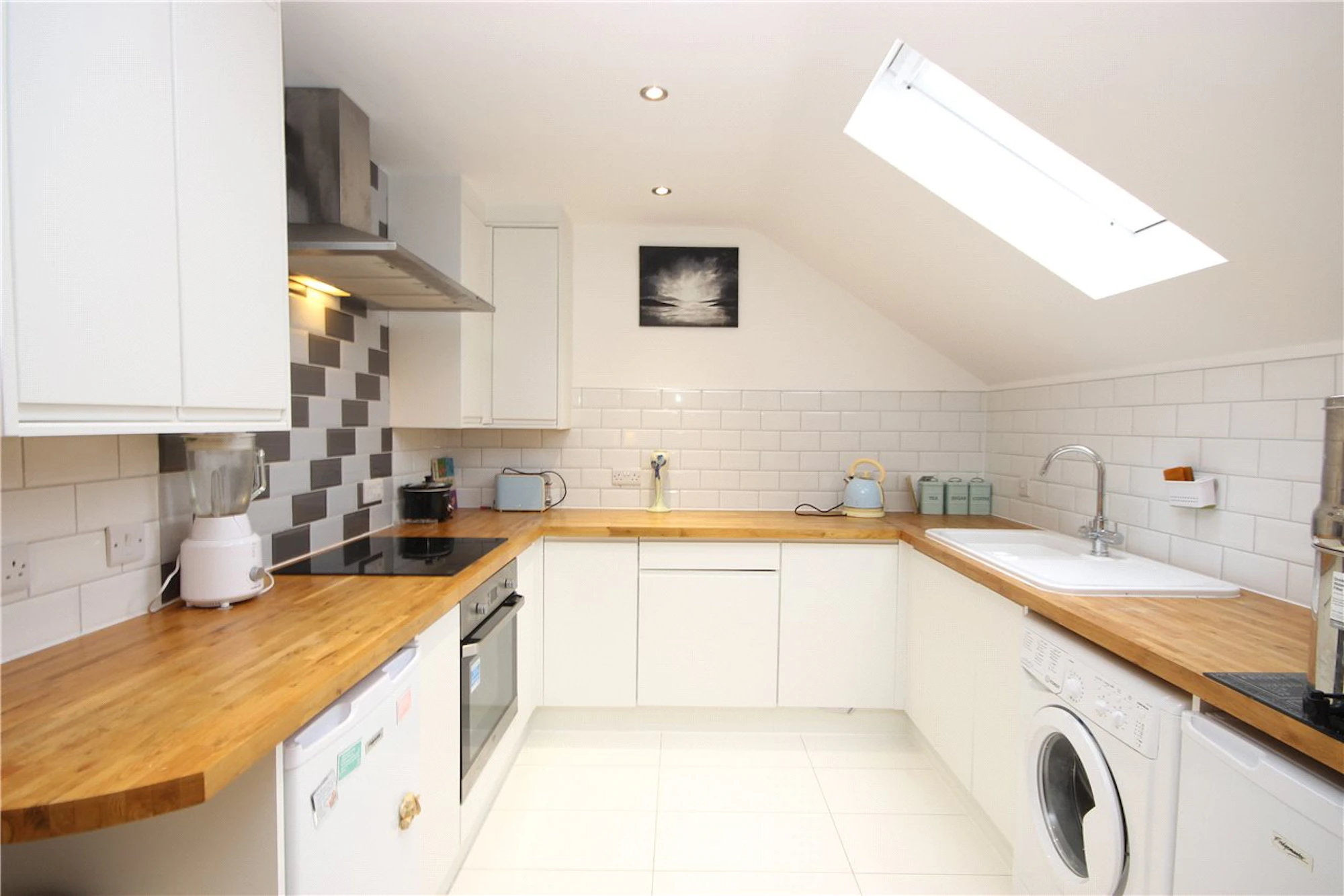 The spacious kitchen has been fitted with modern appliances and wooden worktops offering a bright and contemporary space to enjoy cooking in.