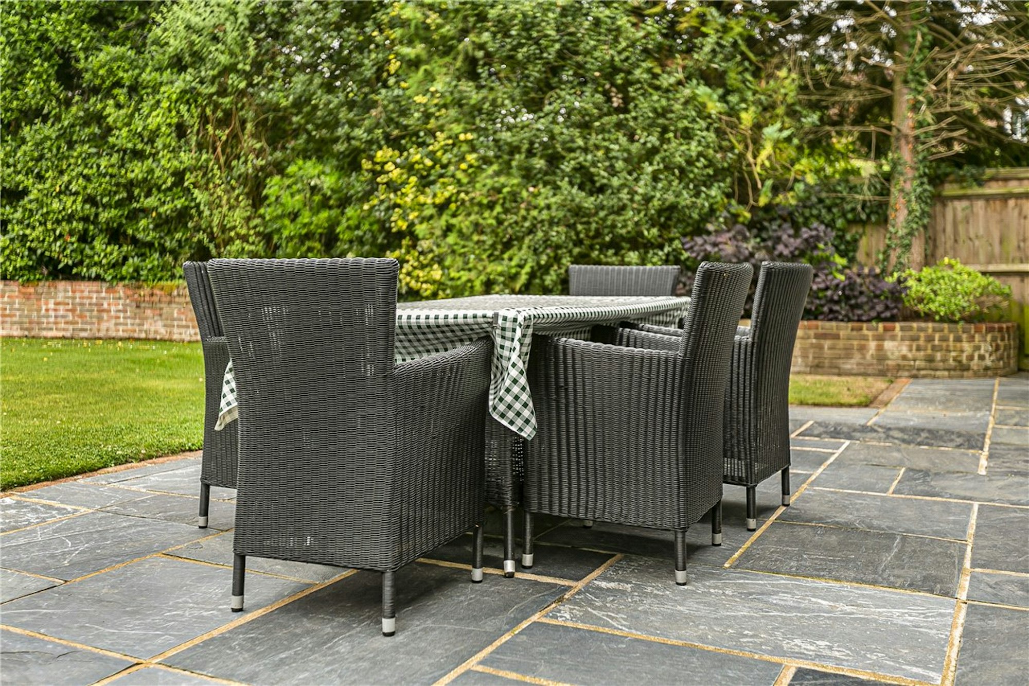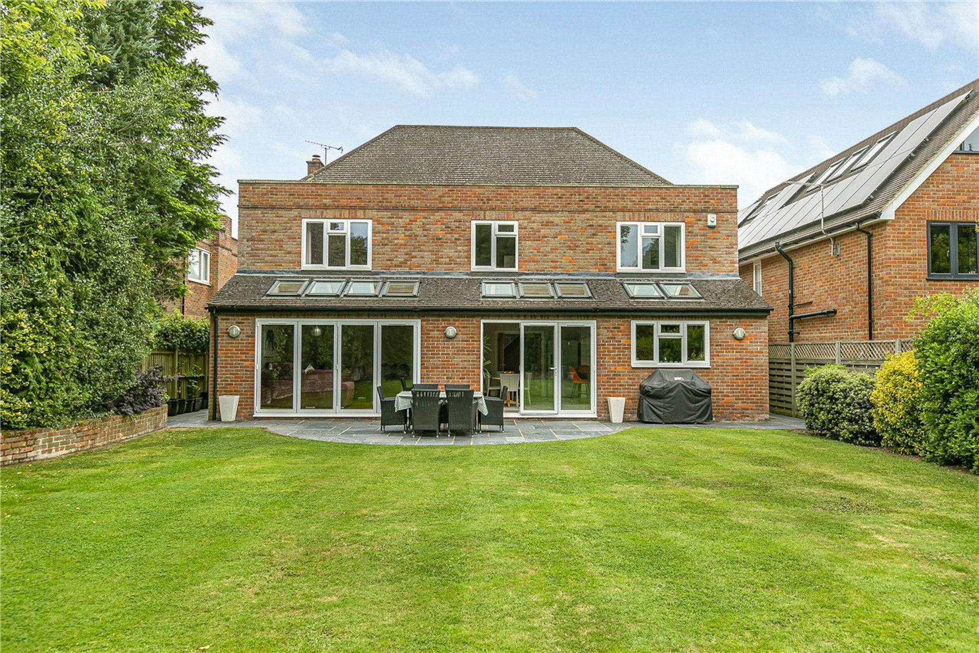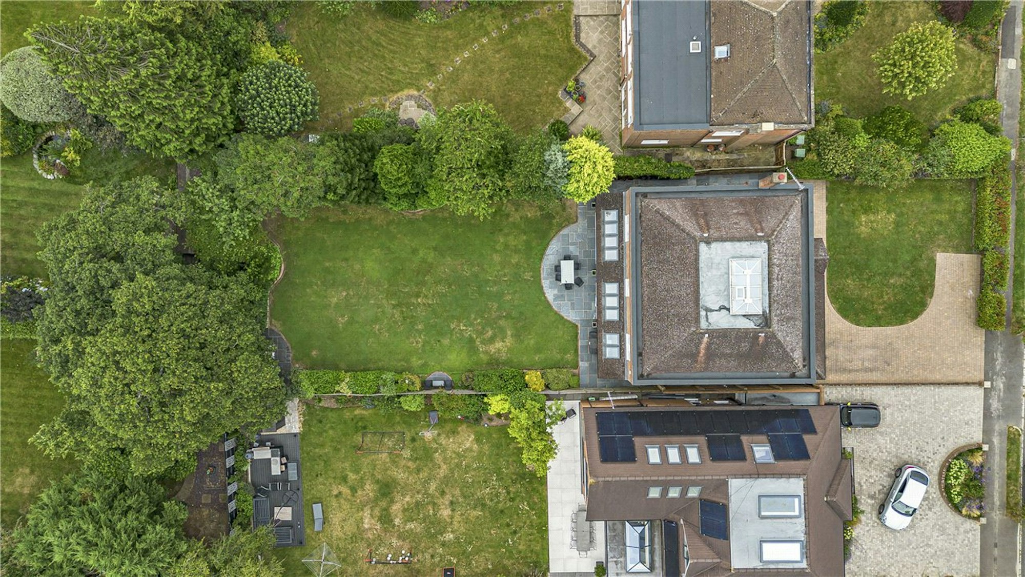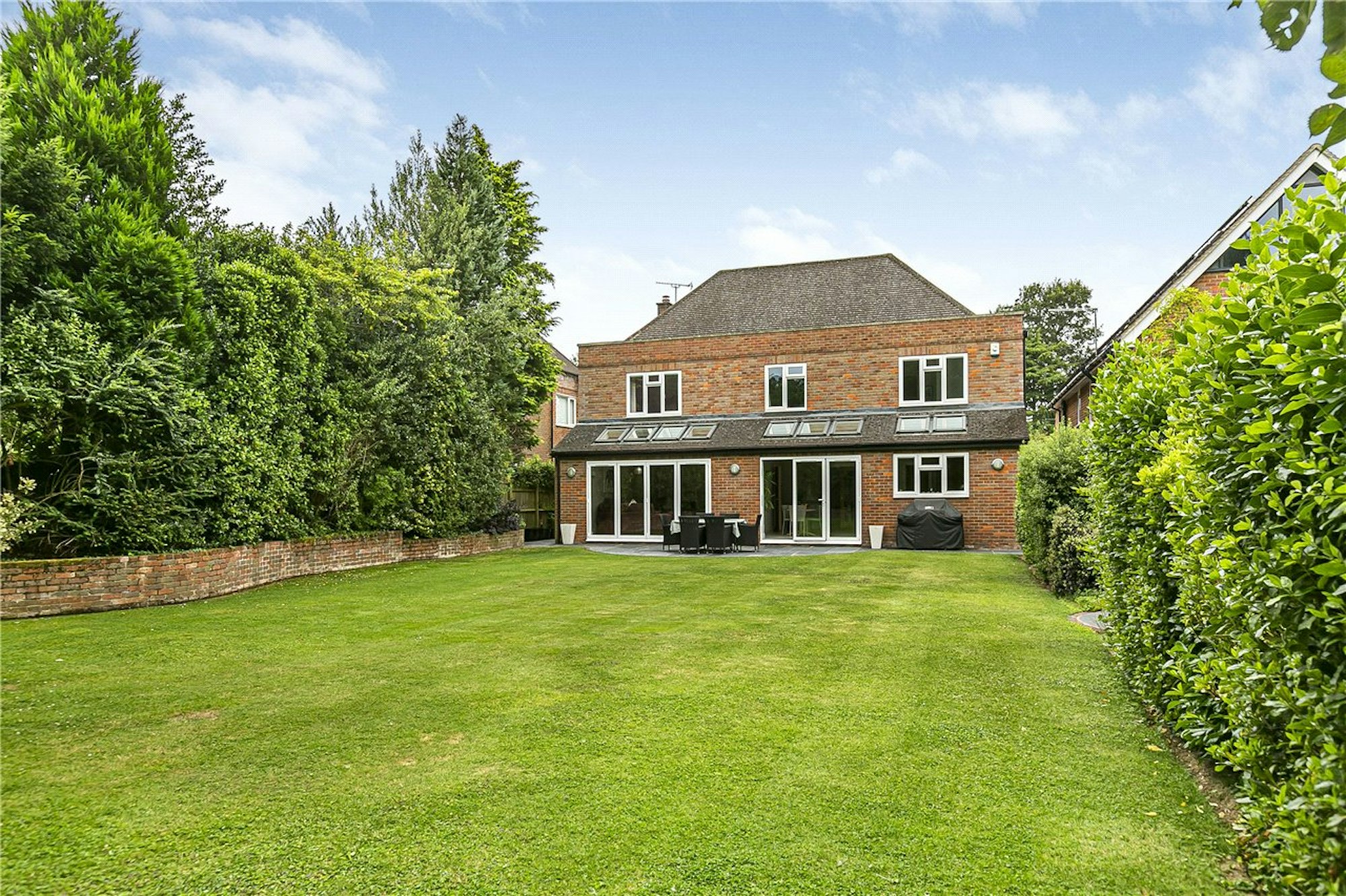 The rear garden is an excellent size and has a large lawn, with mature shrubs and trees to the boundaries giving a good level of privacy. A paved seating area close to the house offers a lovely space in which to relax, and there is access to the front by paths to both sides.