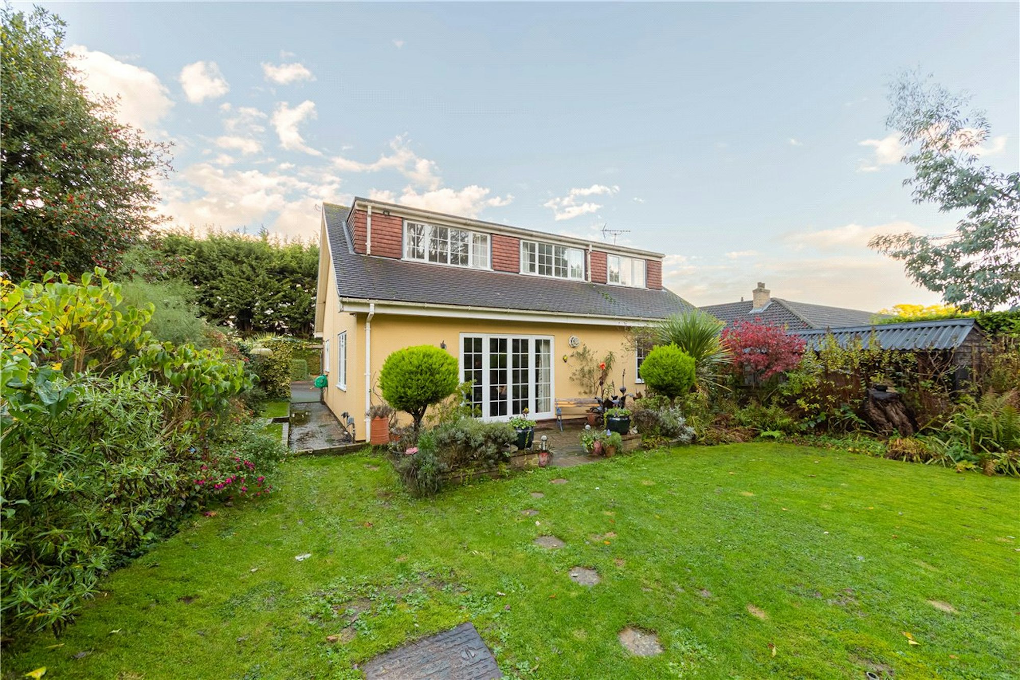 A spacious four bedroom detached chalet bungalow in a beautiful setting on a private road. With flexible accommodation arranged over two floors, this spacious property has off-street parking for several vehicles and a lovely south west facing garden.
