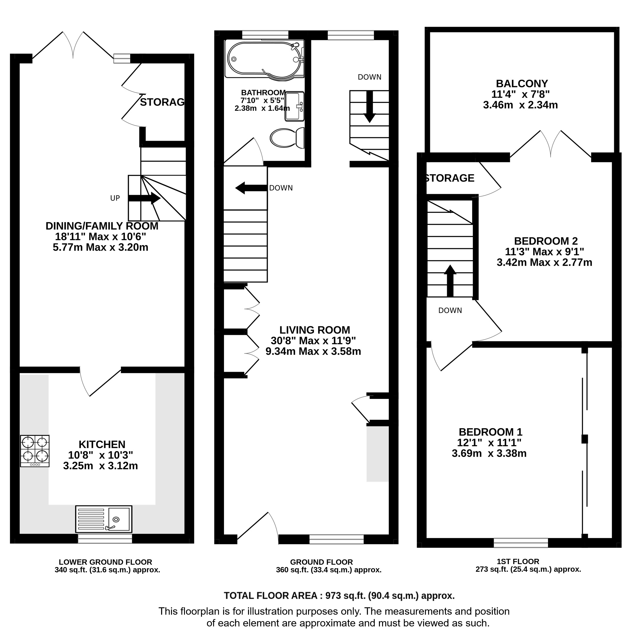 The ground floor features a generous living space ideal for relaxation or entertaining, complemented by an attractive and well-appointed bathroom suite. Upstairs, the first floor boasts two double bedrooms, with the second bedroom benefiting from access to a private roof terrace that enjoys the same sunny south-westerly aspect as the garden below.