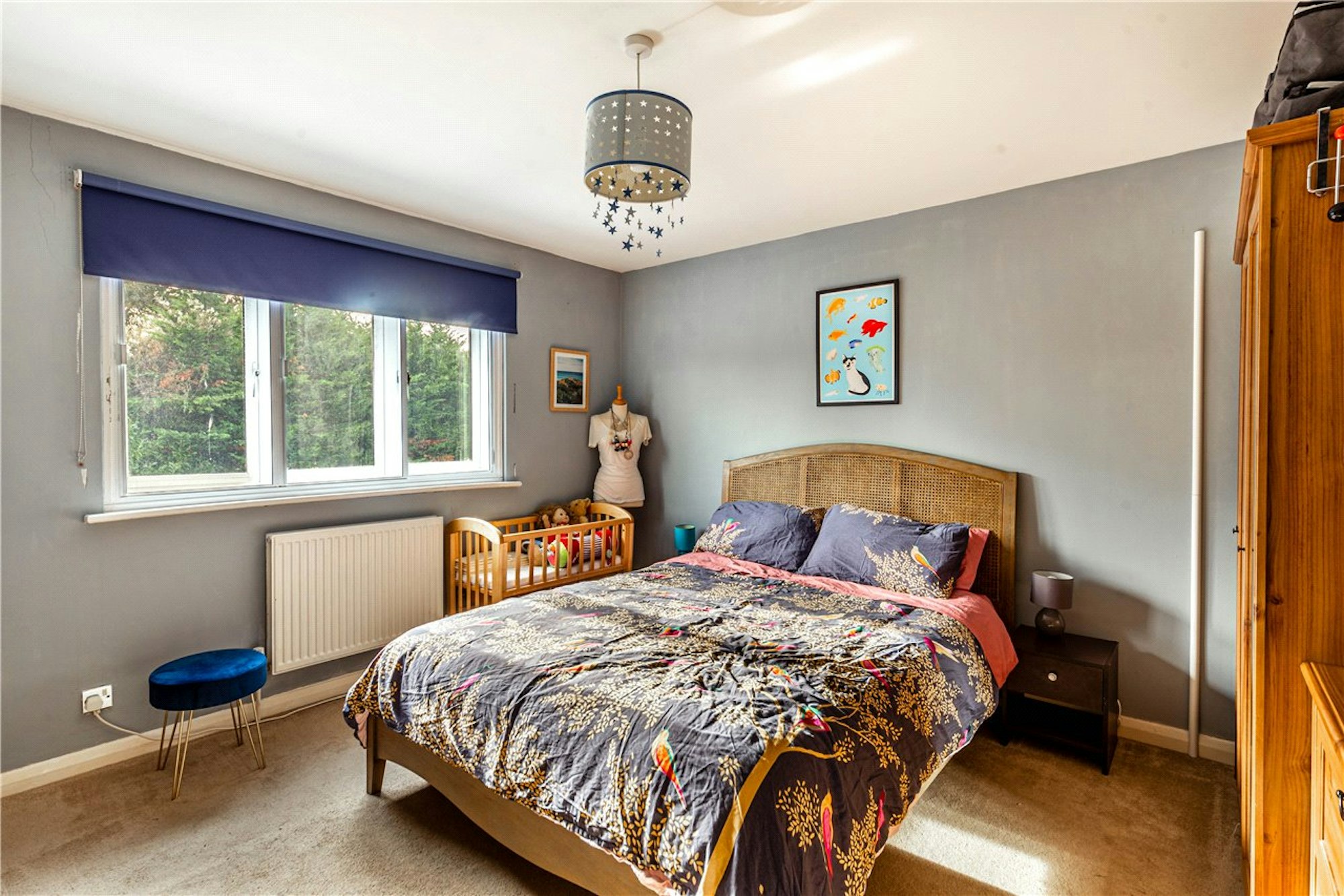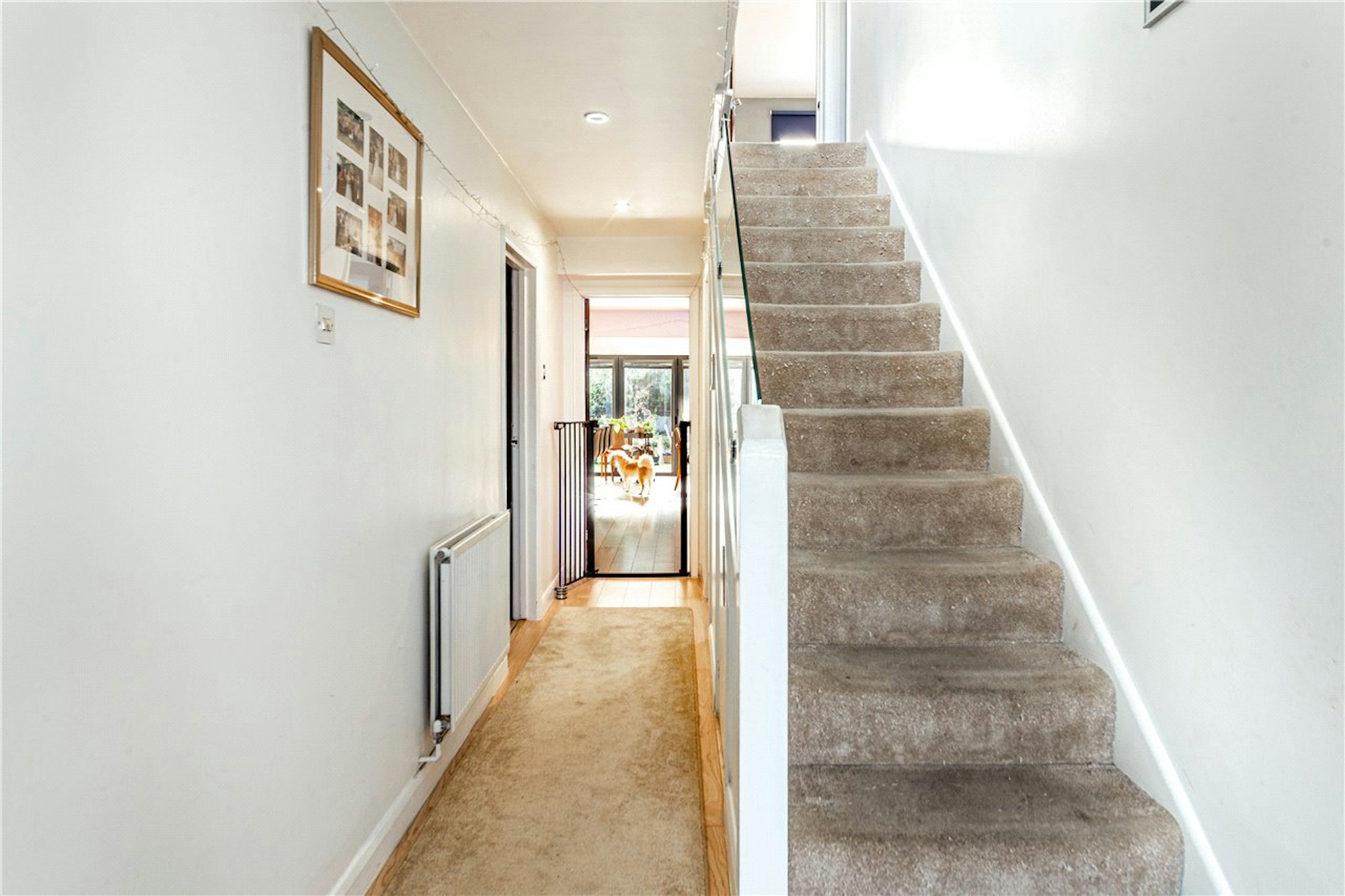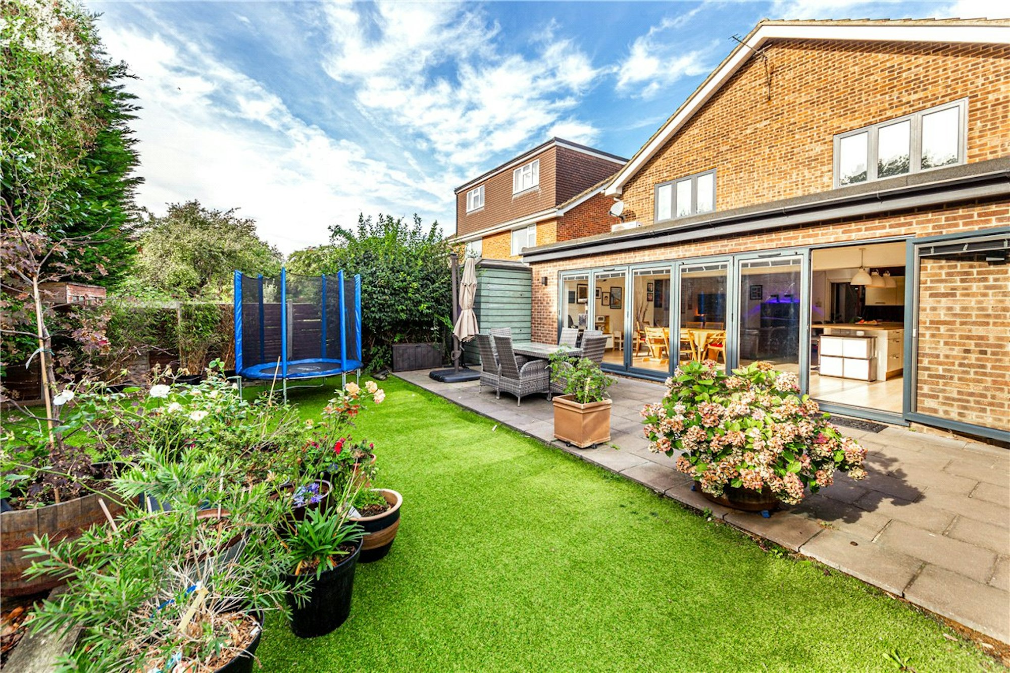 The low maintenance south-facing rear garden is laid with artificial turf with an array of mature trees, shrubs and a vegetable patch at its boarders. Additionally, there is a large storage shed and patio area ideal for al fresco dining.