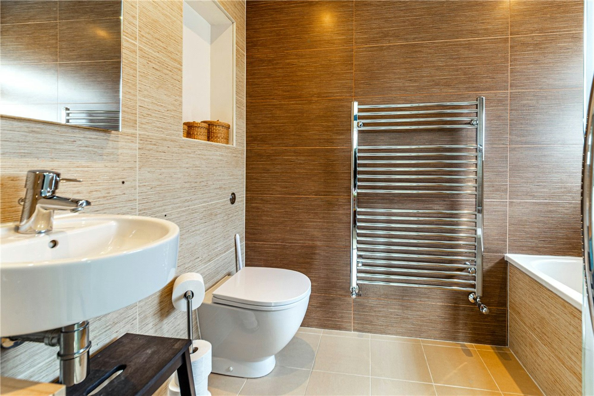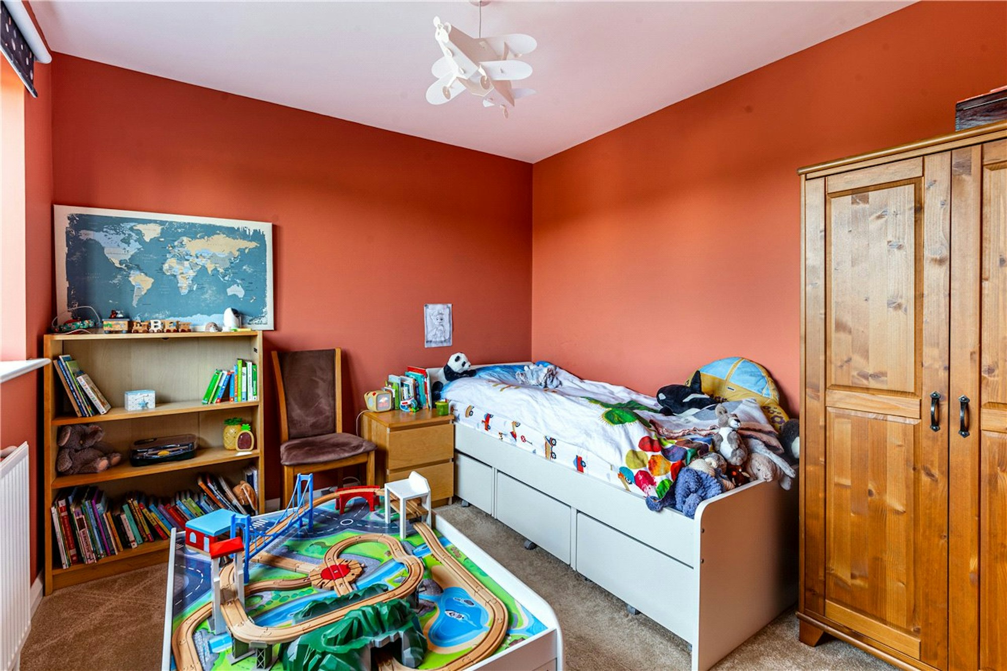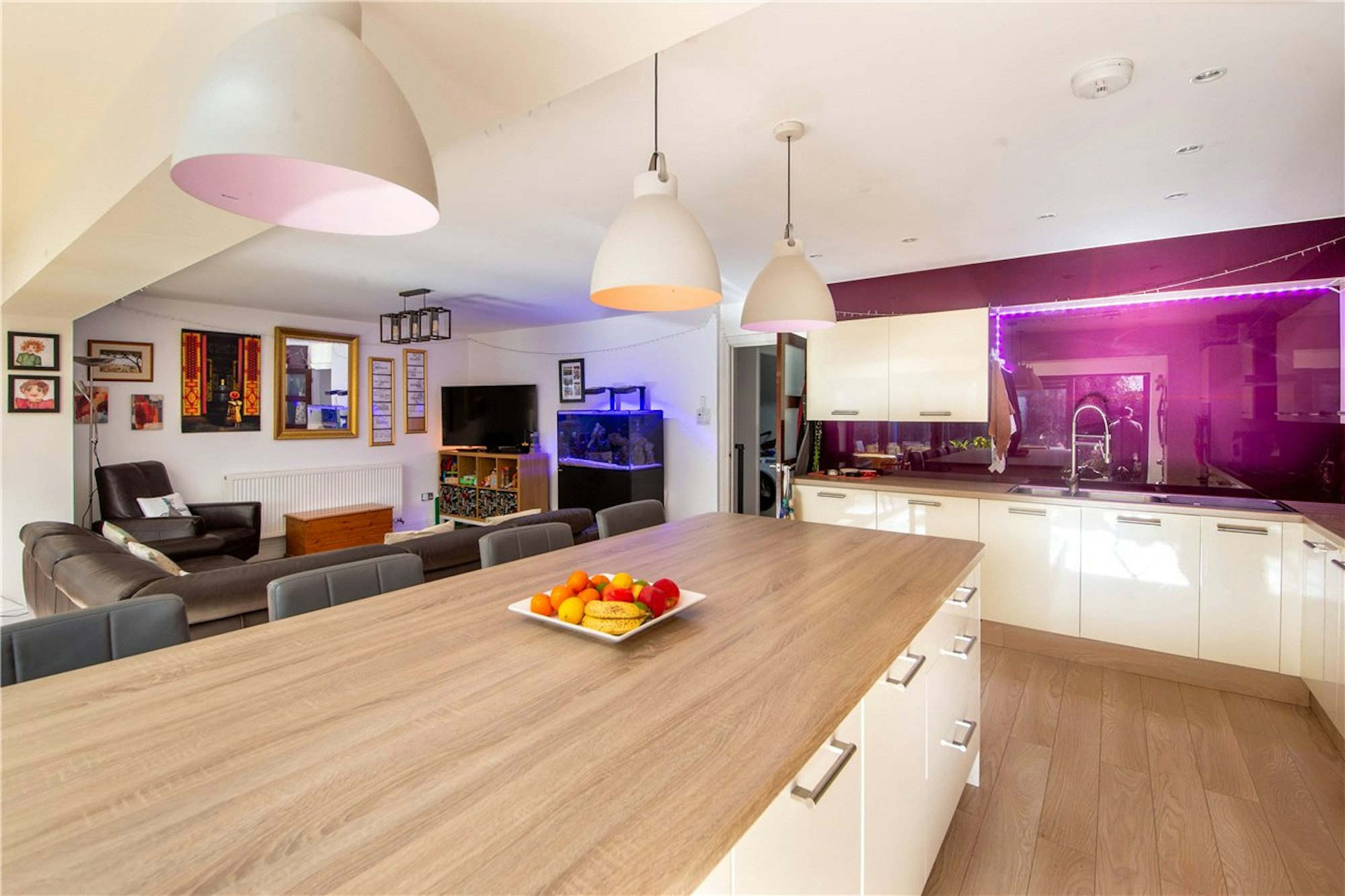 The low maintenance south-facing rear garden is laid with artificial turf with an array of mature trees, shrubs and a vegetable patch at its boarders. Additionally, there is a large storage shed and patio area ideal for al fresco dining.