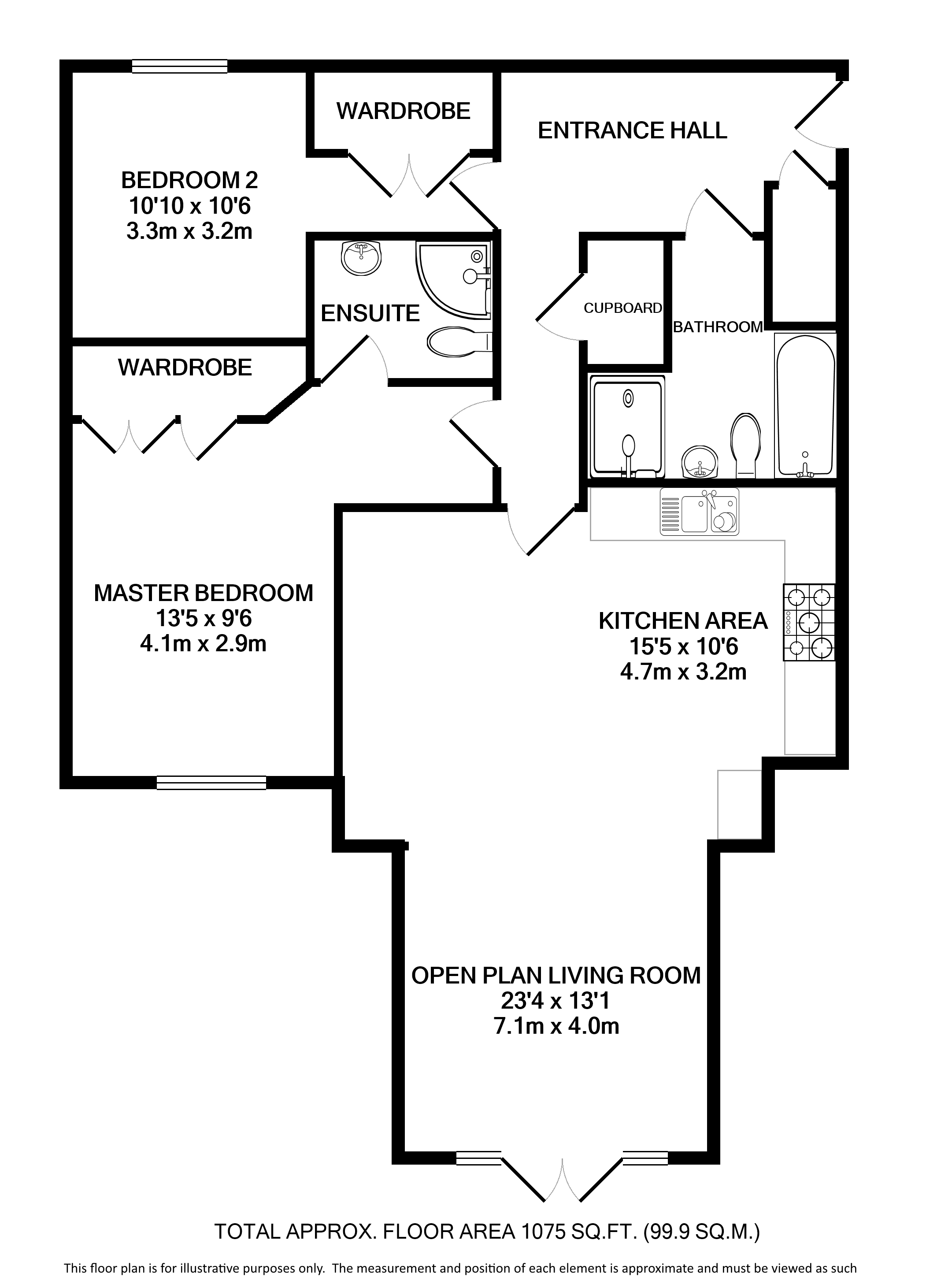 The principal bedroom has front aspect windows, fitted wardrobes and an en-suite shower room. Bedroom two has fitted wardrobes and is large enough for a bed and desk. The luxury bathroom has a four piece suite including a bath and a separate double sized shower cubicle.