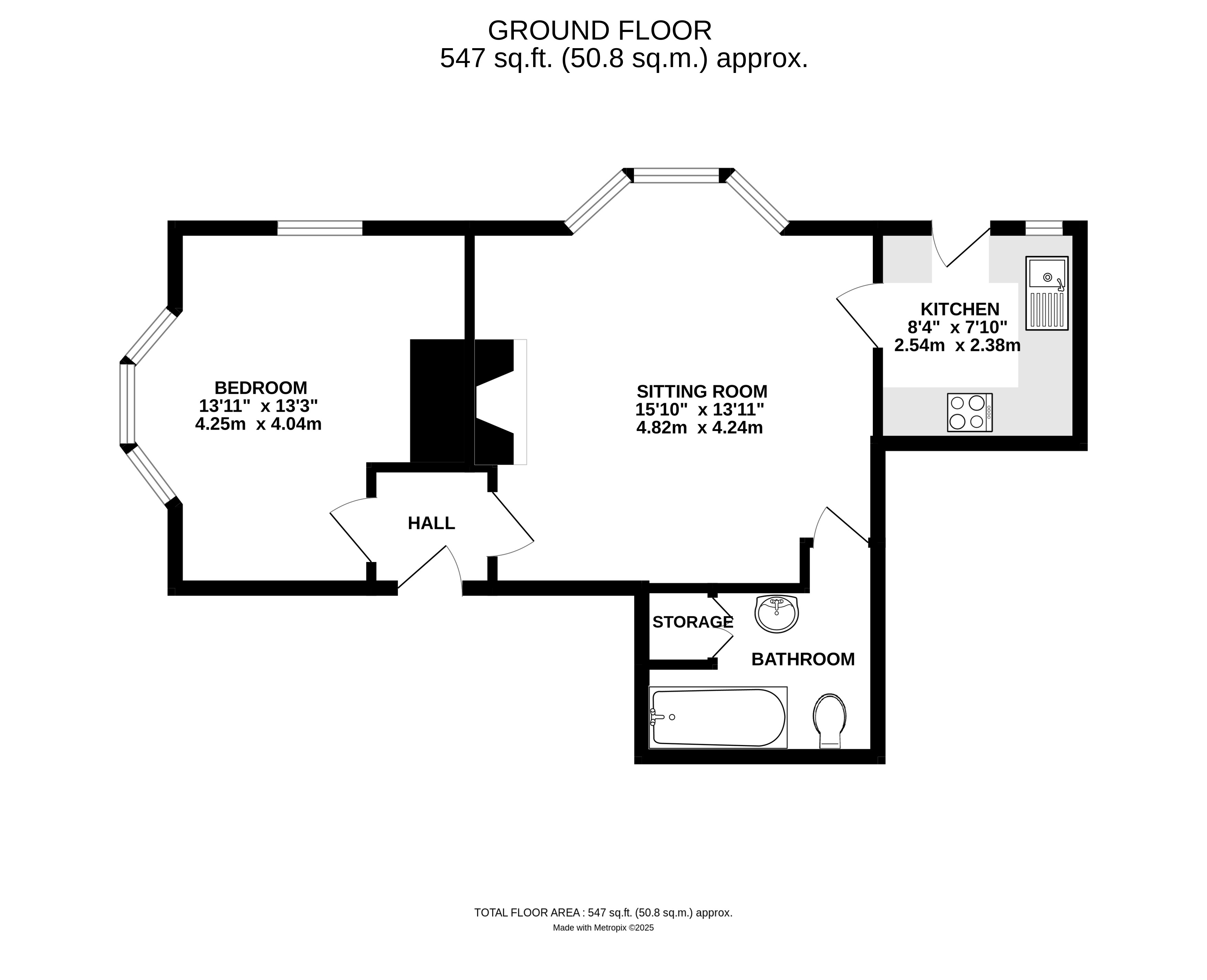 Featuring a large dual aspect double bedroom with bay window and high ceilings, lovely living room with high ceilings, wood floors and access to a patio area, just off the living room is the newly fitted Kitchen, and the modern and fully tiled bathroom suite which has a shower attachment above the bath.