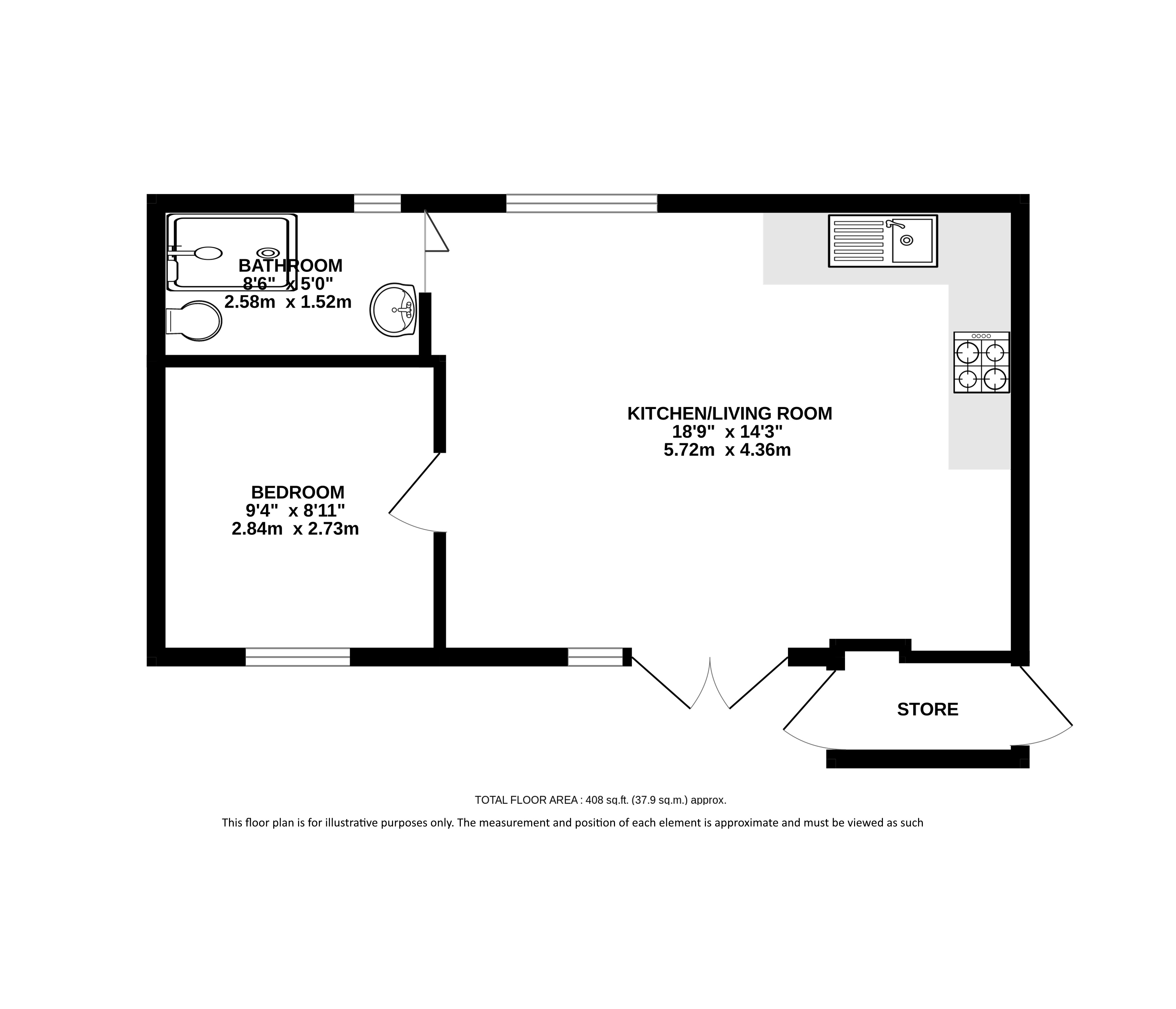 The bedroom has built-in shelving and hanging and the tiled shower room has a window and extractor fan. The property also features gas central heating and double glazing.