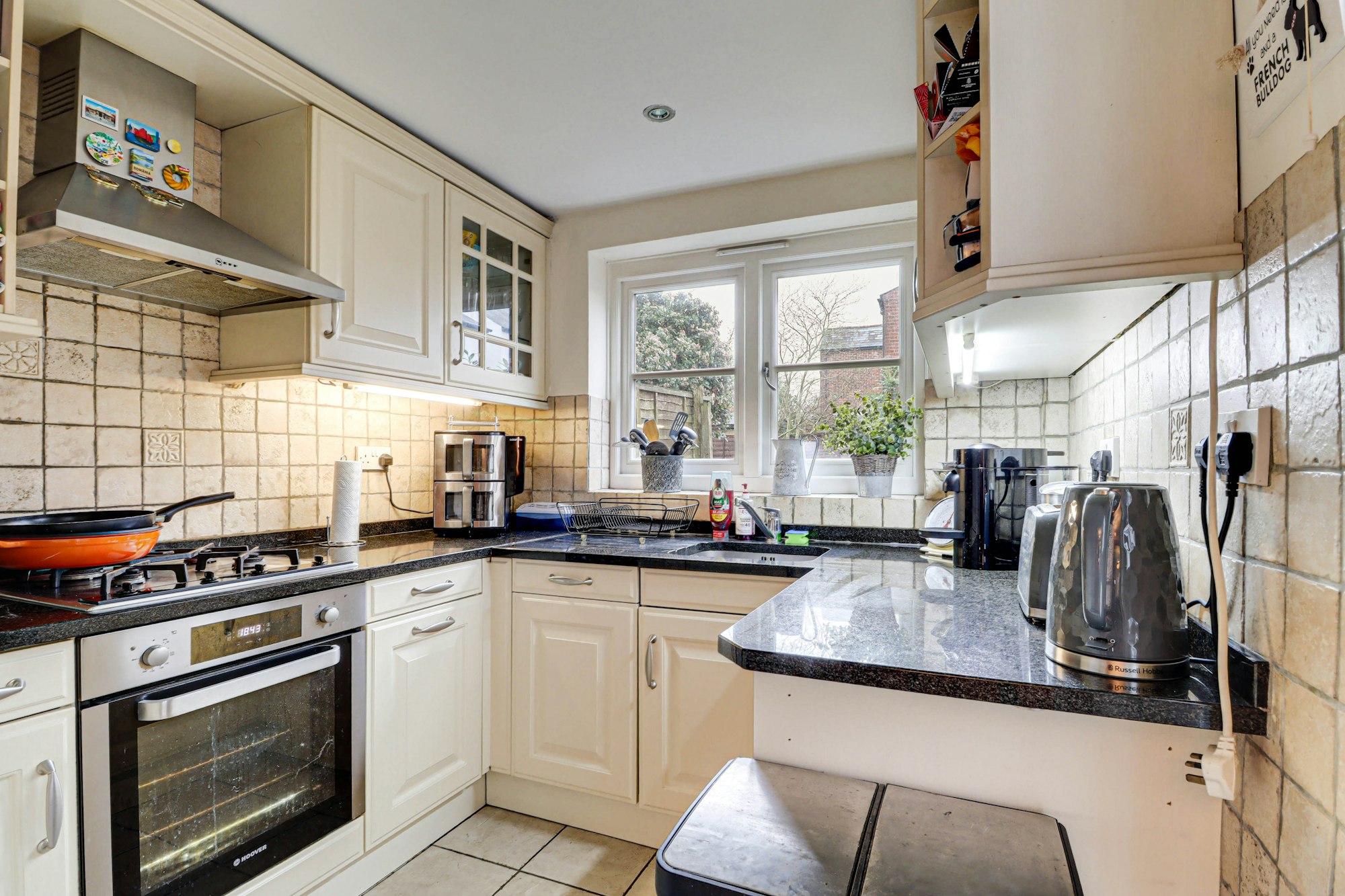 The spacious living/dining room leads into the well-appointed kitchen which is fitted with a range of base and wall cupboards with granite worktops over. It also includes a range of quality integrated appliances including a dishwasher, fridge/freezer and washer/dryer.