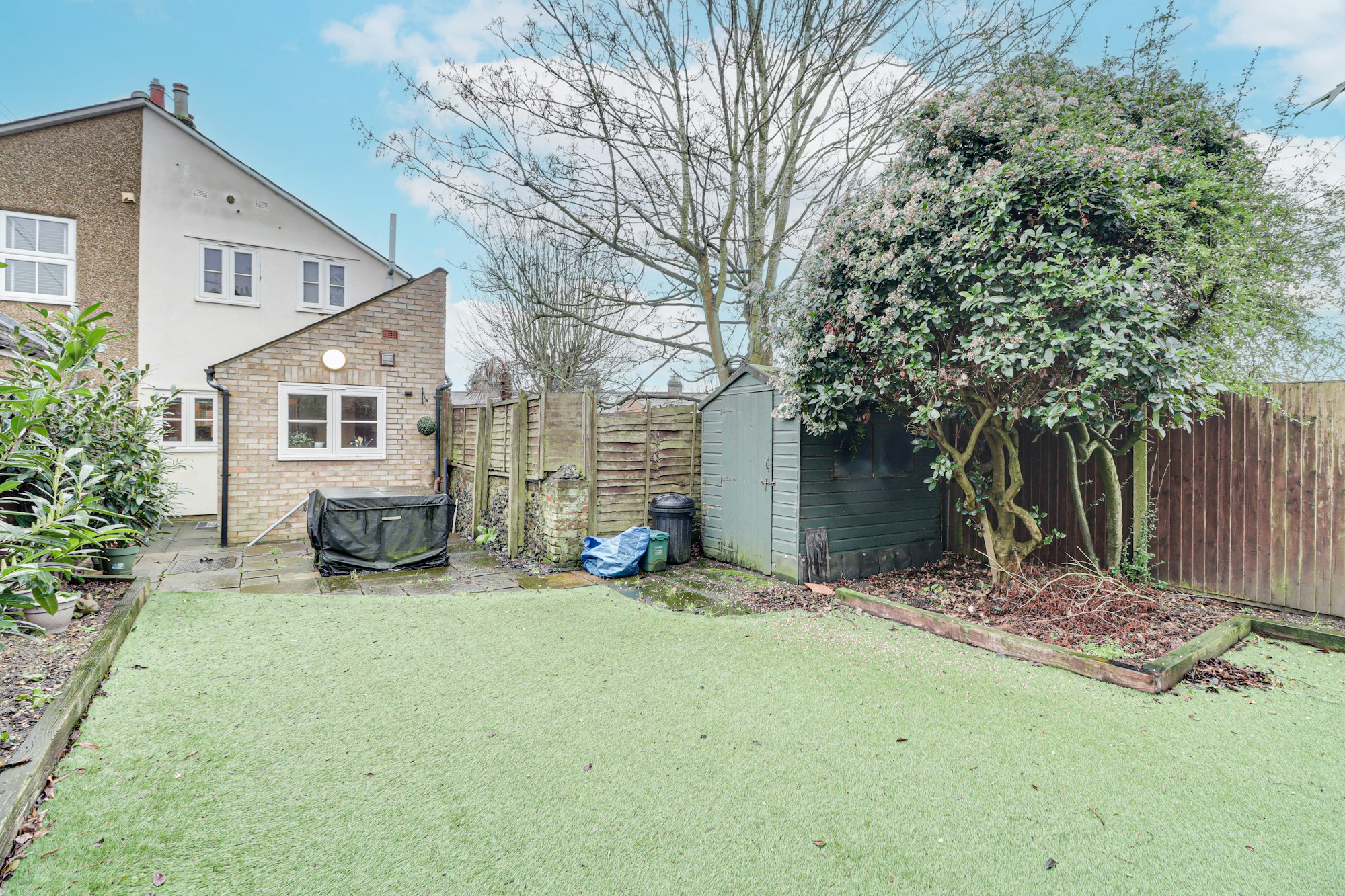 Outside, the generous rear garden is fully enclosed and has a south westerly aspect. Featuring a paved seating area, artificial grass, well stocked flowerbeds and timber garden shed.
