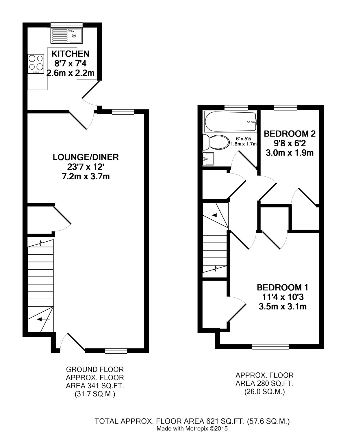To the first floor there are two bedrooms; both benefiting from fitted wardrobes, which are serviced by the family bathroom, with electric shower.