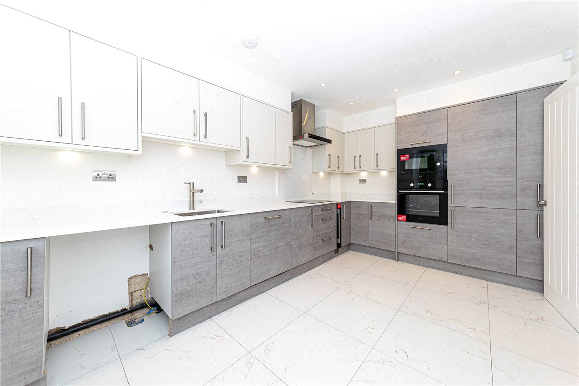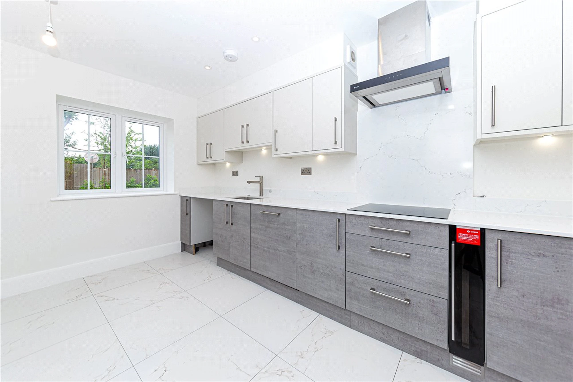 The stunning kitchen breakfast room is equipped with integrated applicances, such as the large fridge freezer, oven, microwave and induction hob.