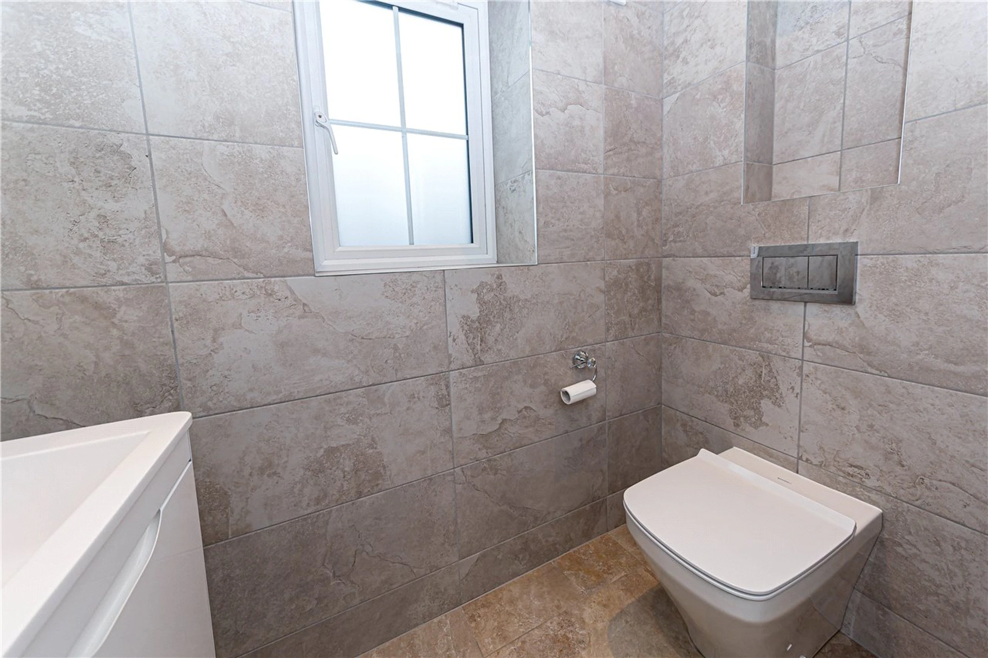 Downstairs there is a stylish cloakroom with WC.