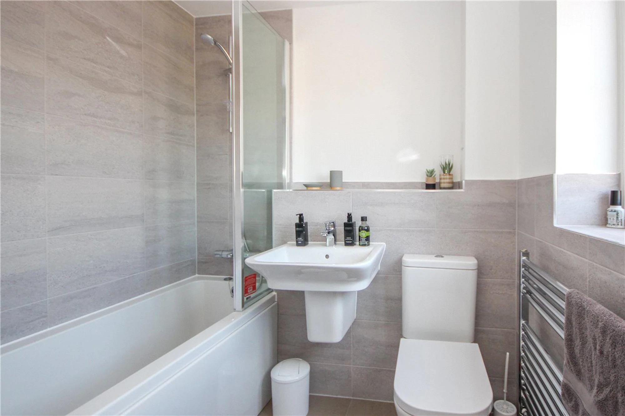 The main bedroom and second guest bedroom are well proportioned, and both served by a stylish, contemporary family bathroom with bathtub and shower over.
