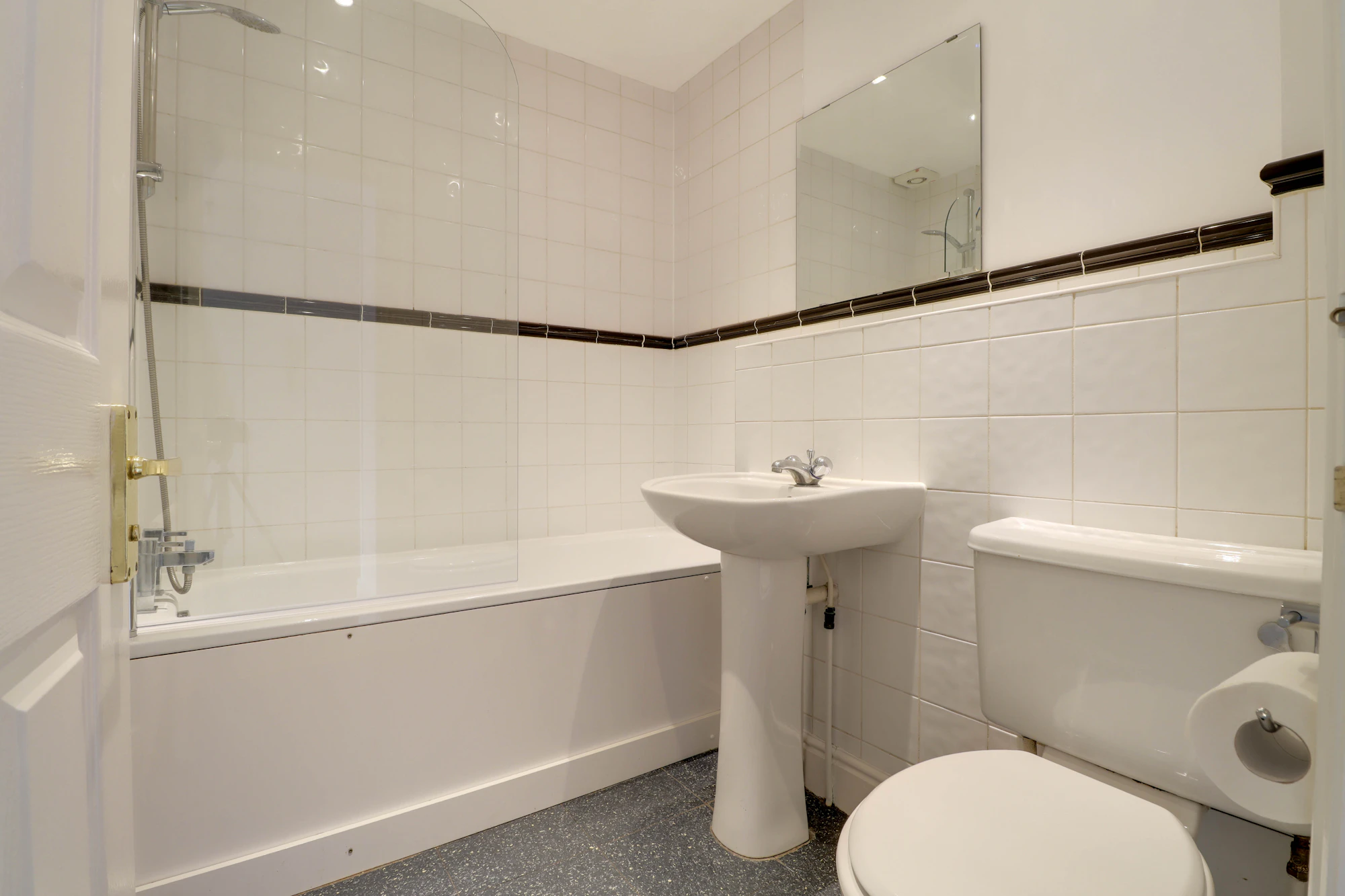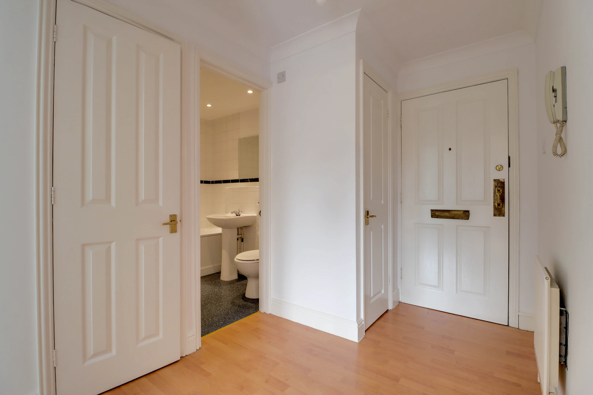 The well decorated property features 2 useful storage cupboards in the entrance hall, a lovely living room with Juliet balcony overlooking the well maintained communal gardens, a fully fitted modern kitchen with integrated appliances to include, a dishwasher, washer/dryer, fridge/freezer, electric oven and gas hob. The large double bedroom has fitted wardrobes and the smart white bathroom suite has a shower over the bath.