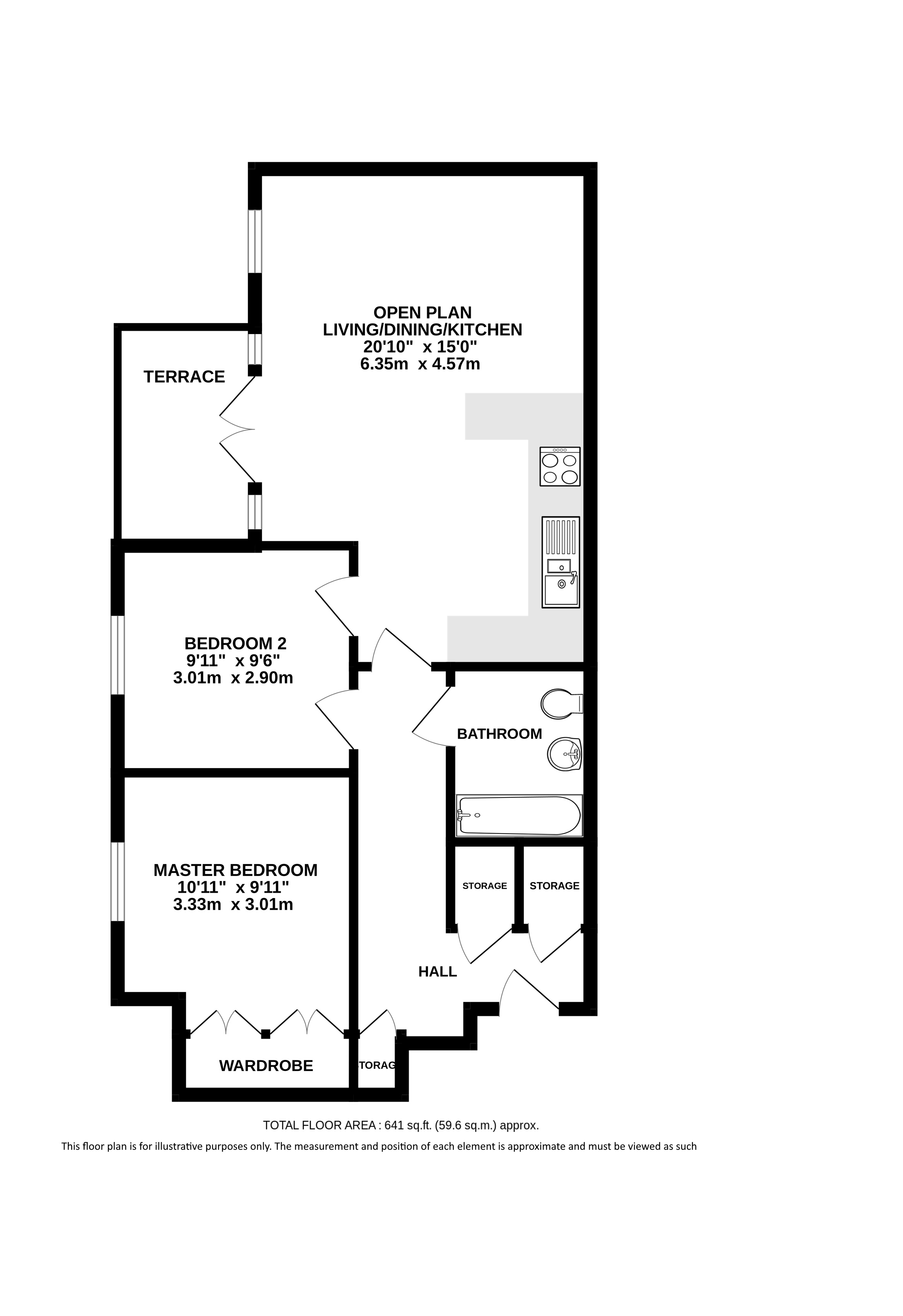 Off the hallway are the two spacious double bedrooms, the master benefiting from built in wardrobes and both are serviced by a contemporary family bathroom with shower over the bath.