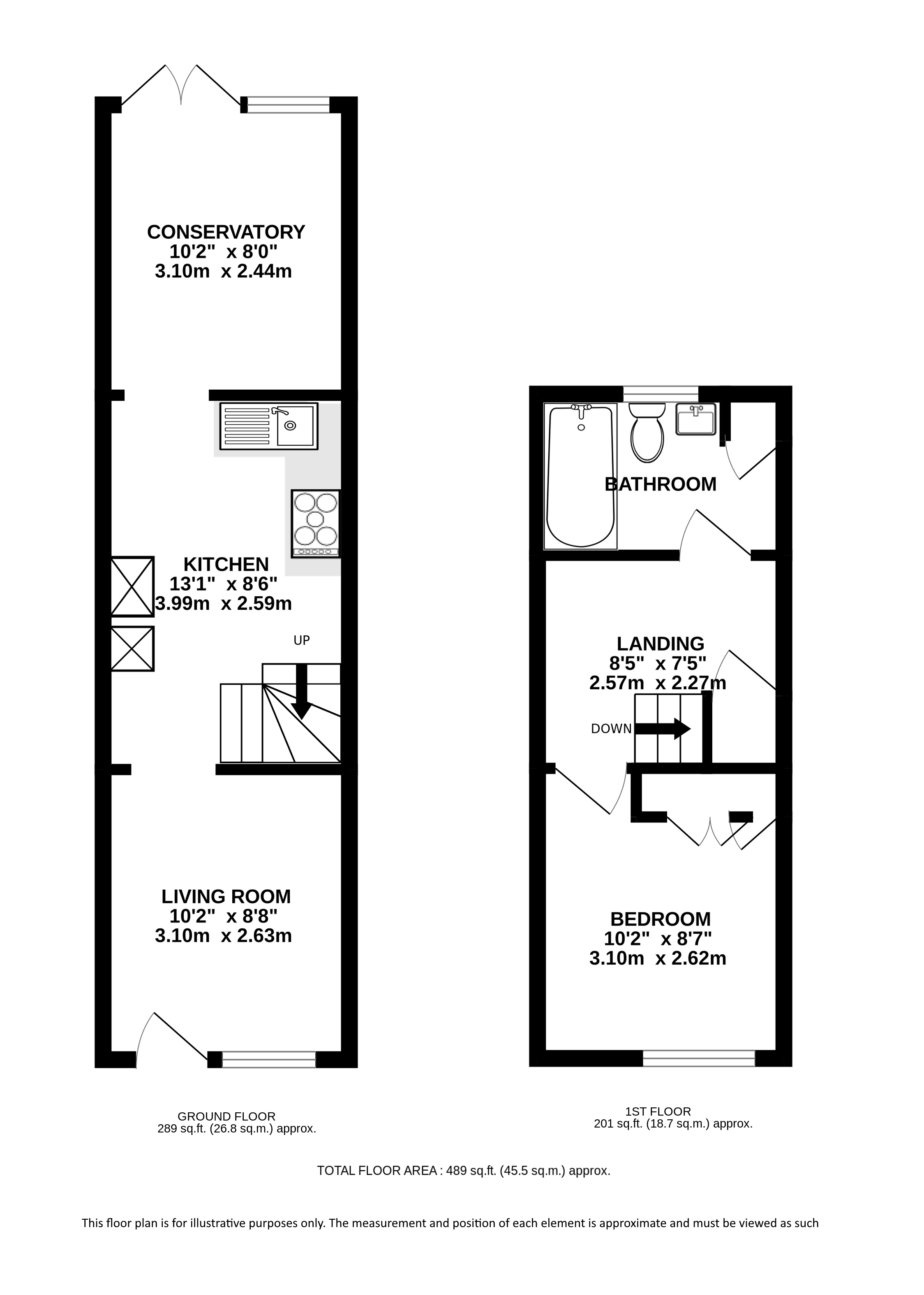 The bedroom is at the front of the property and has a lovely vaulted ceiling. There is a large landing with storage and the recently refurbished bathroom is to the rear with a white suite and chrome towel radiator.