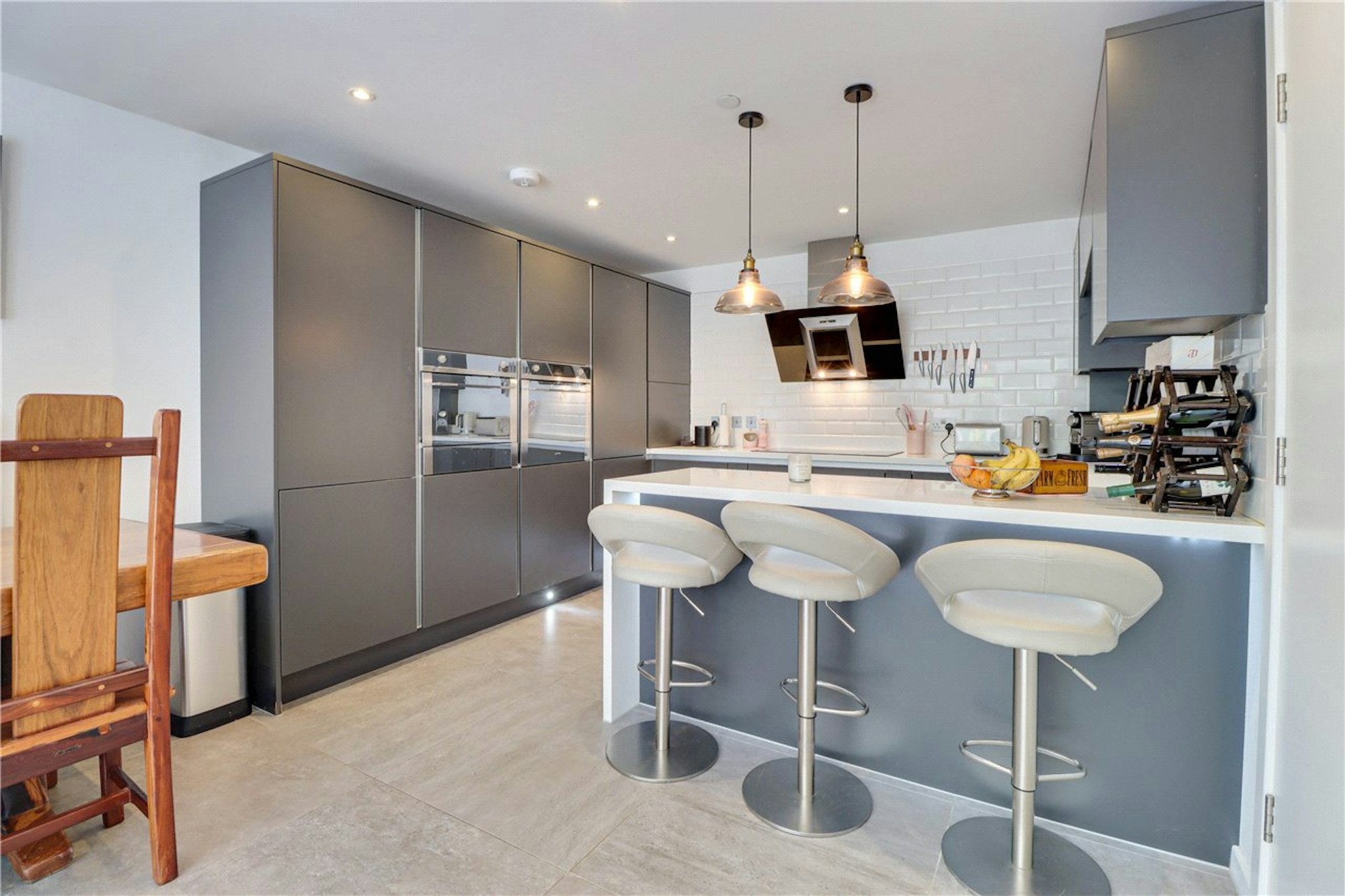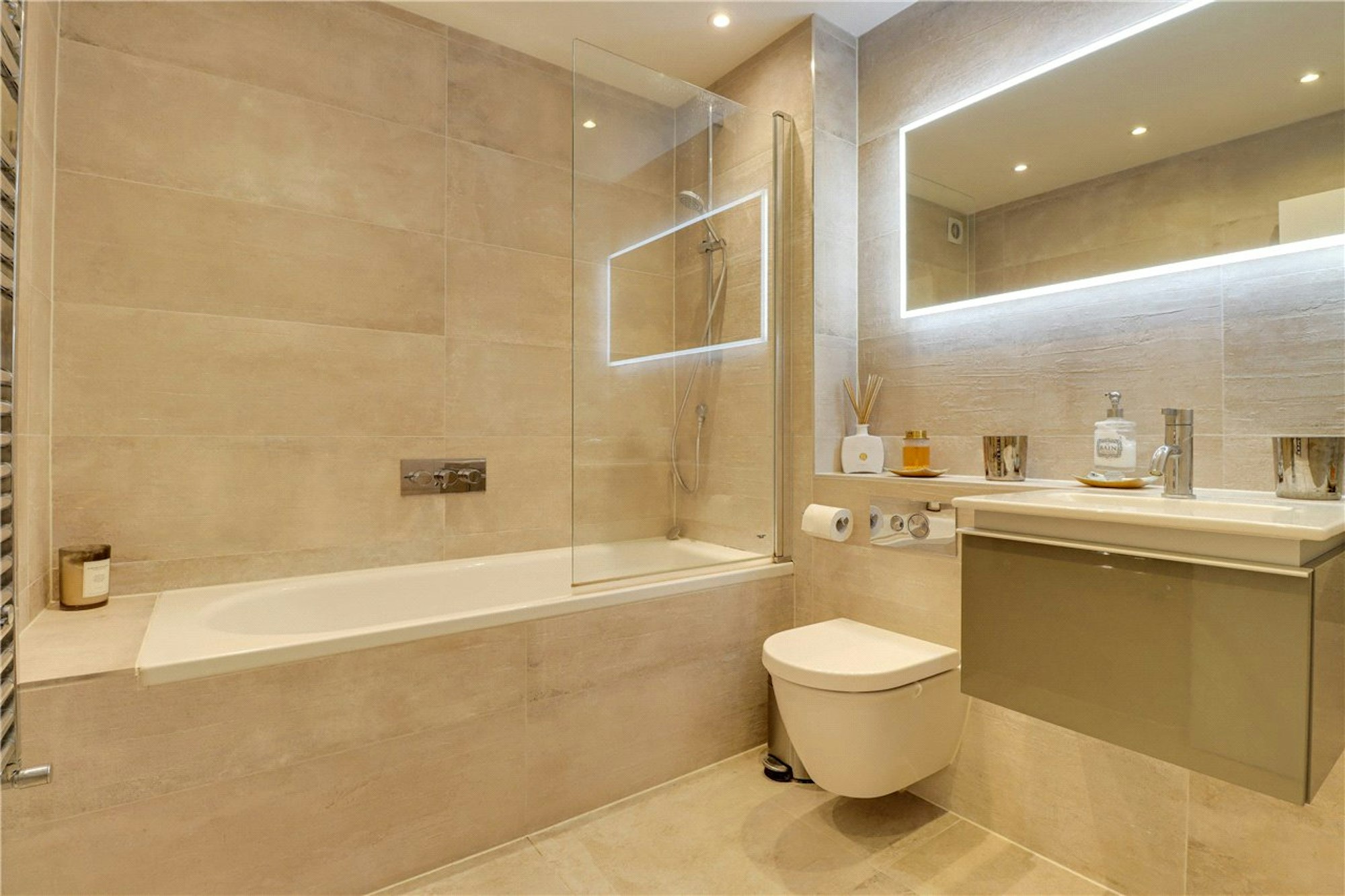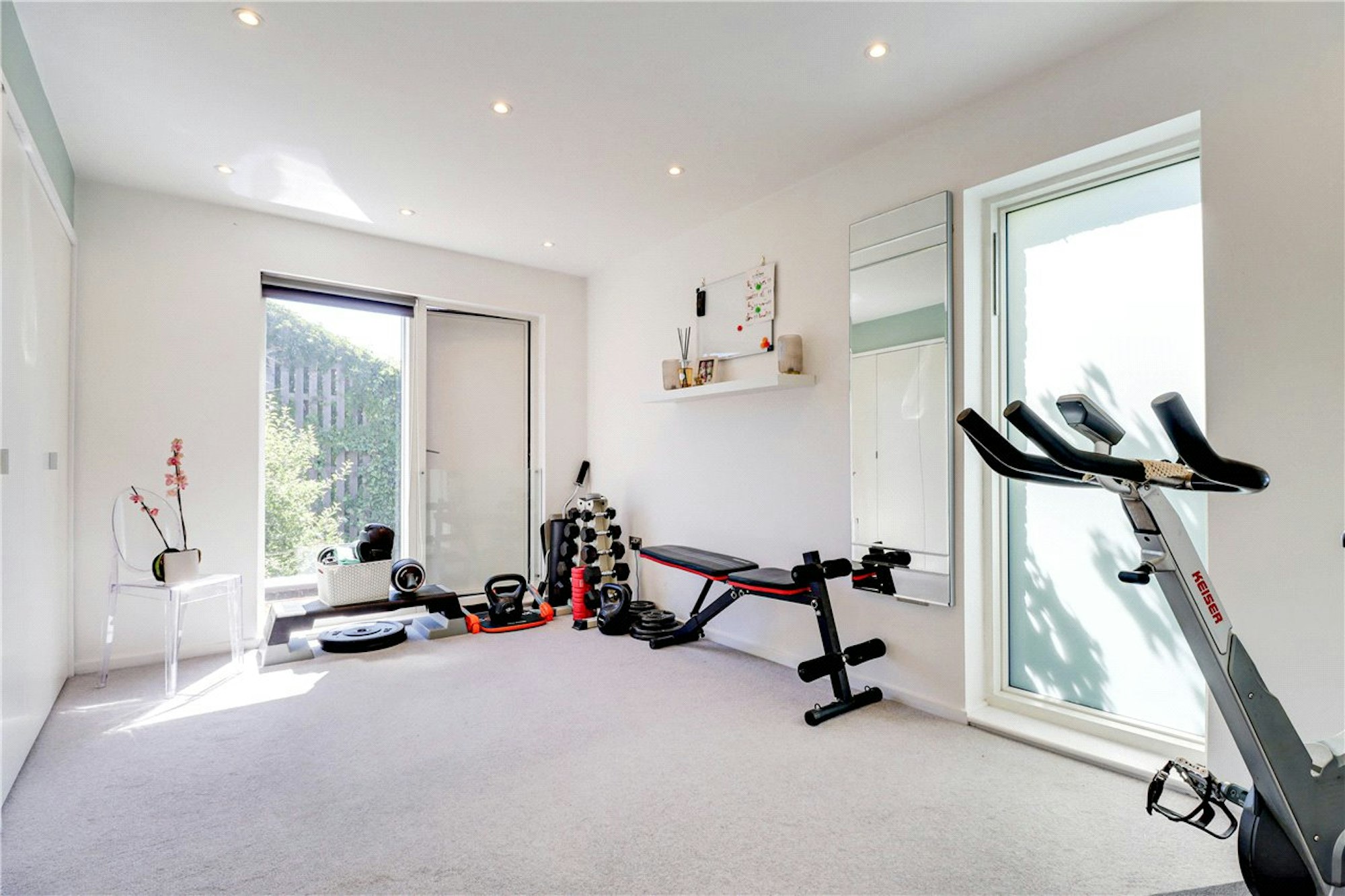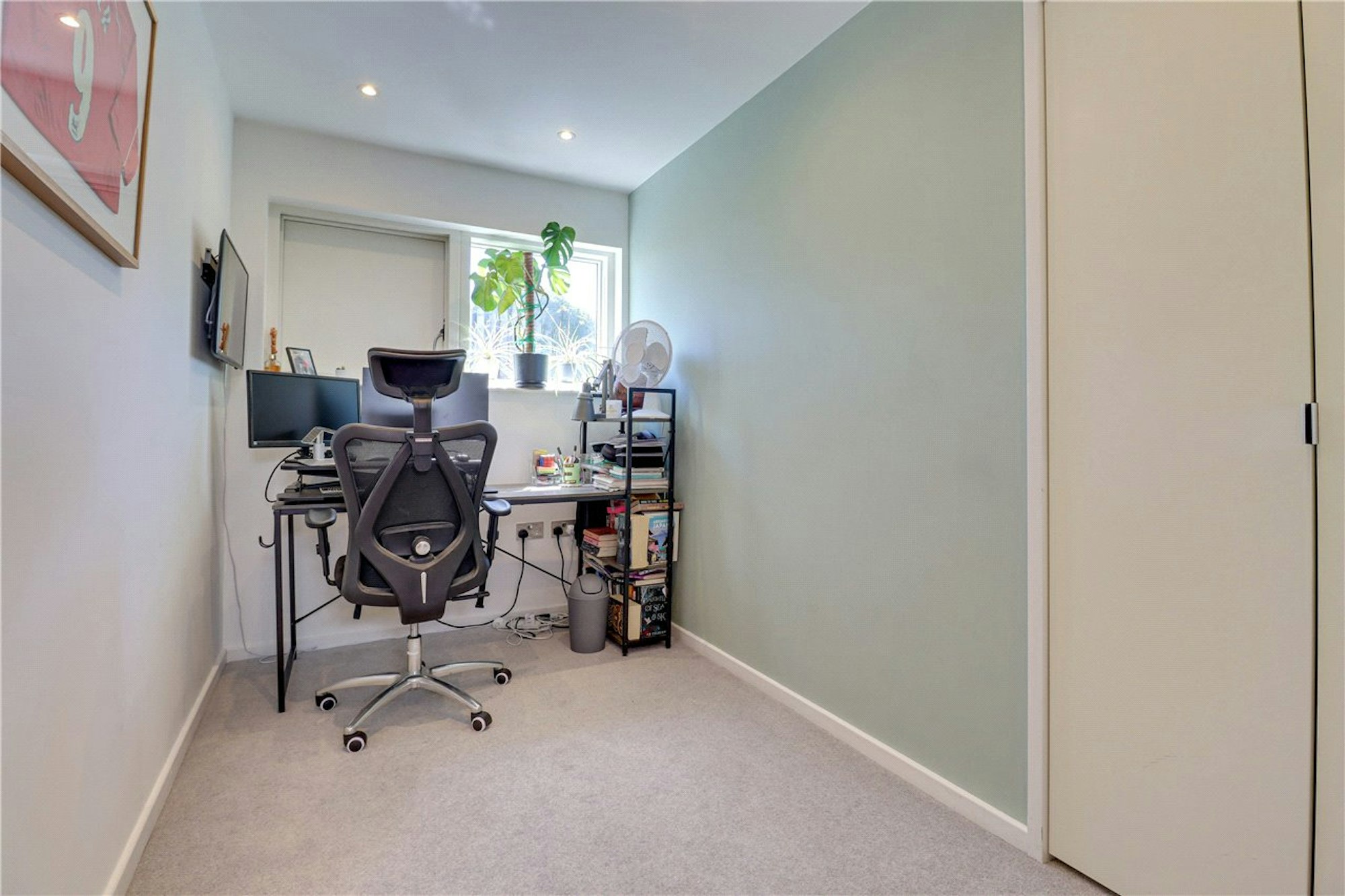 The principal bedroom occupies the second floor and has rooftop views over St Albans through the large full height windows. There is excellent provision for storage, with large wardrobes across the full width of the room and a fully tiled en-suite shower room.