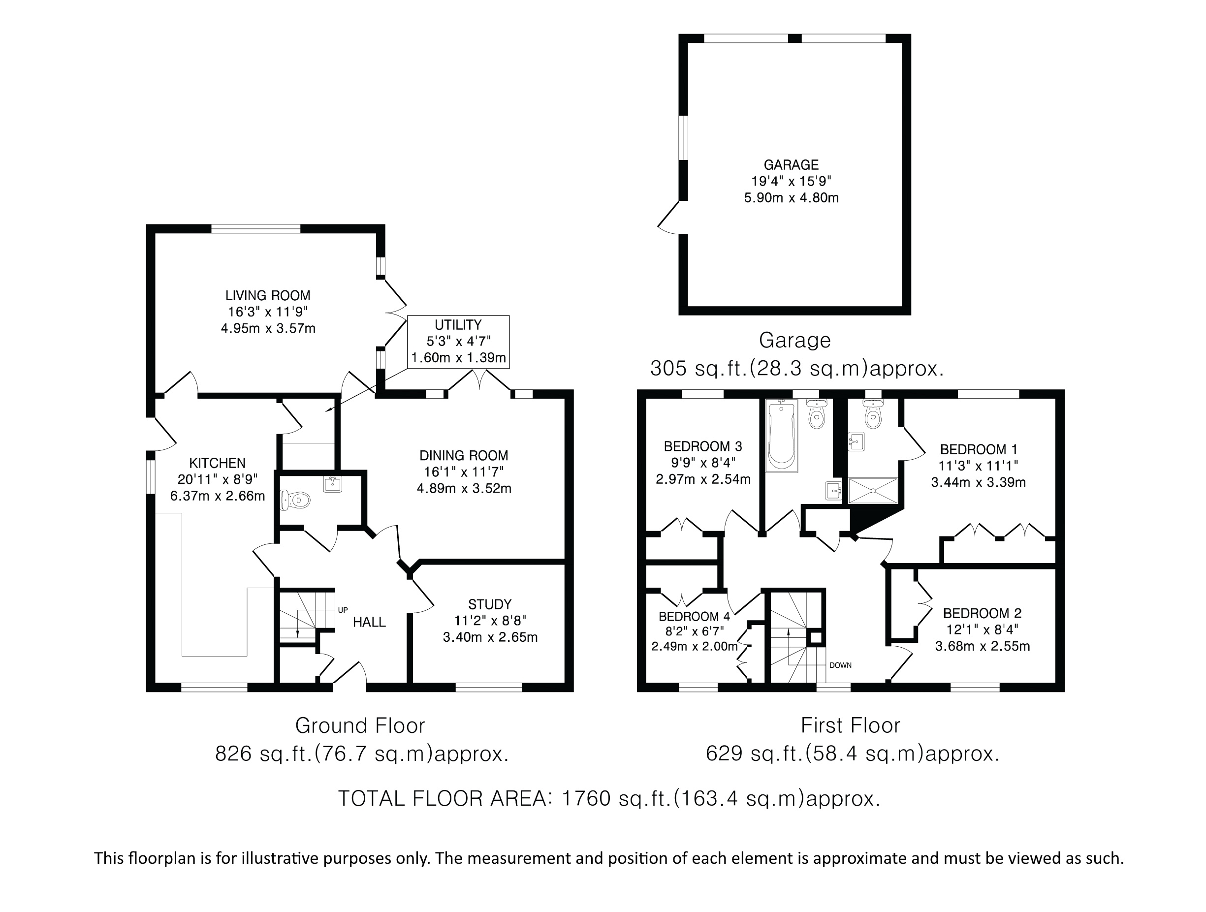 Upstairs there are four bedrooms, all with built in wardrobes. The principal bedroom benefits from an ensuite shower room and a family bathroom serves the remaining bedrooms.