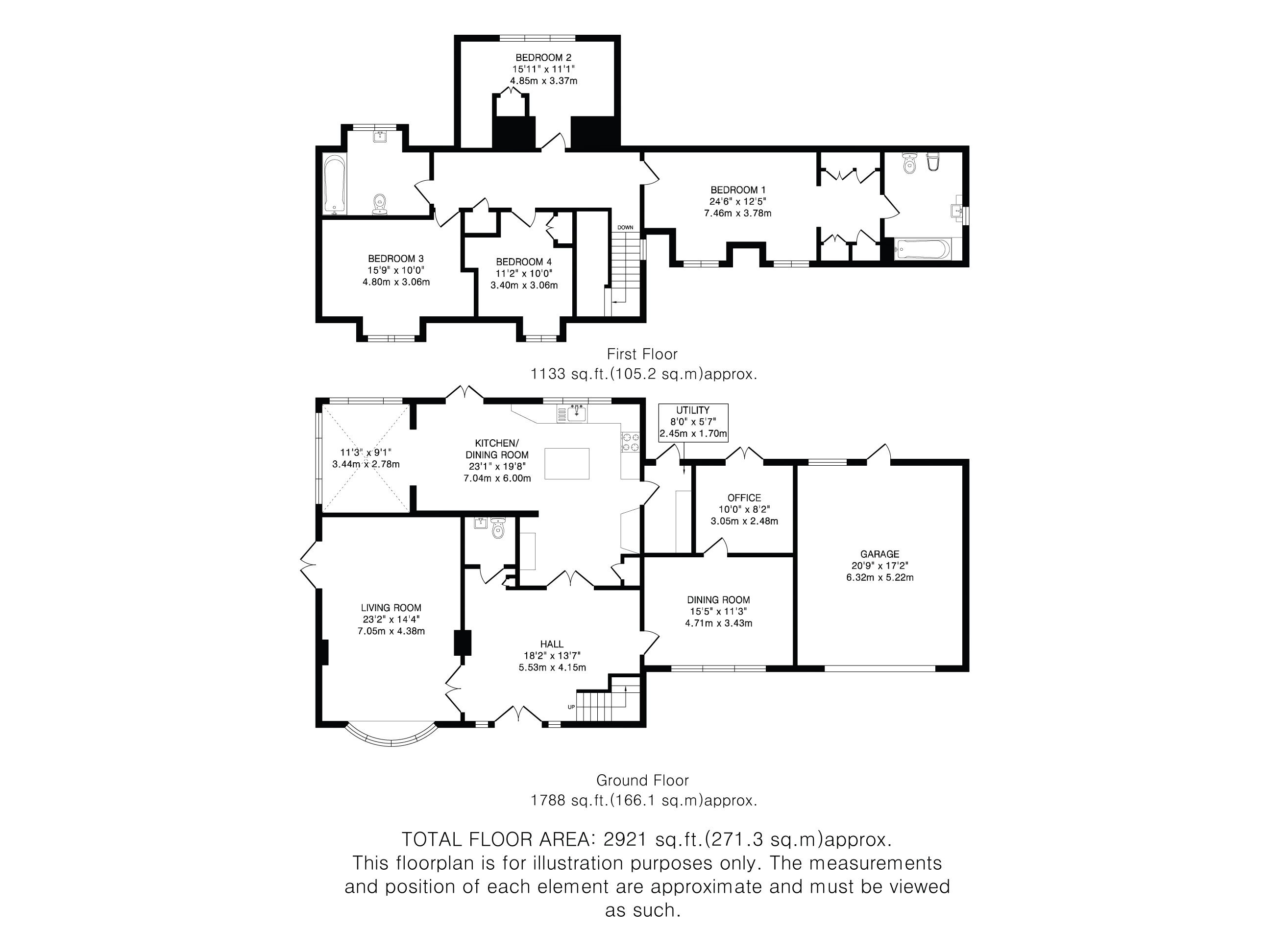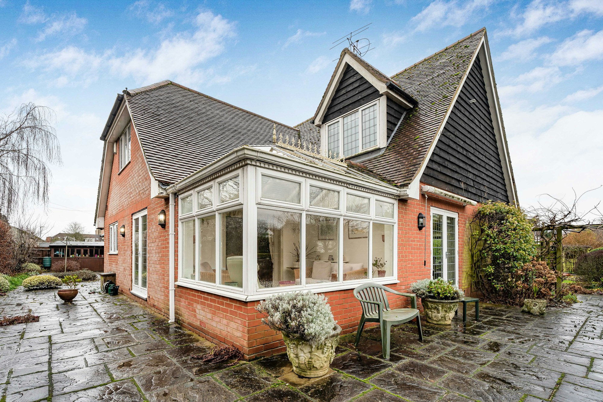 A substantial house with three reception rooms as well as a large family kitchen, dining room, sun lounge, utility and cloakroom on the ground floor. Upstairs there is a principal suite with ensuite bathroom and dressing area. Three further bedrooms and a bathroom complete the living accommodation.