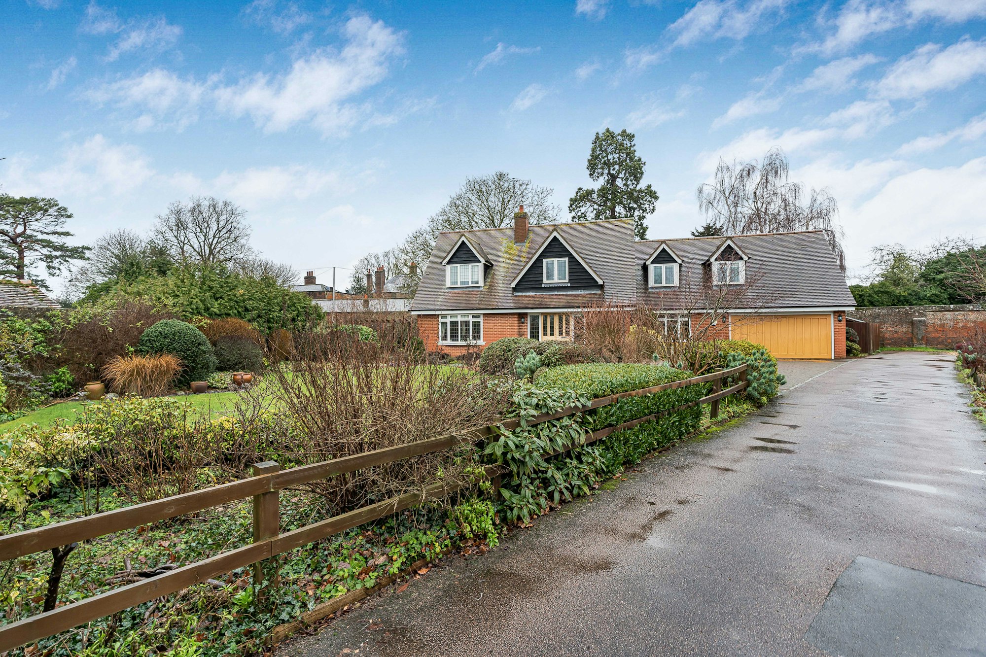 Outside there is a double integral garage and off-street parking for at least three cars. The landscaped award-winning gardens with useful timber shed are set in a quiet cul de sac, just a moments walk from the village centre.