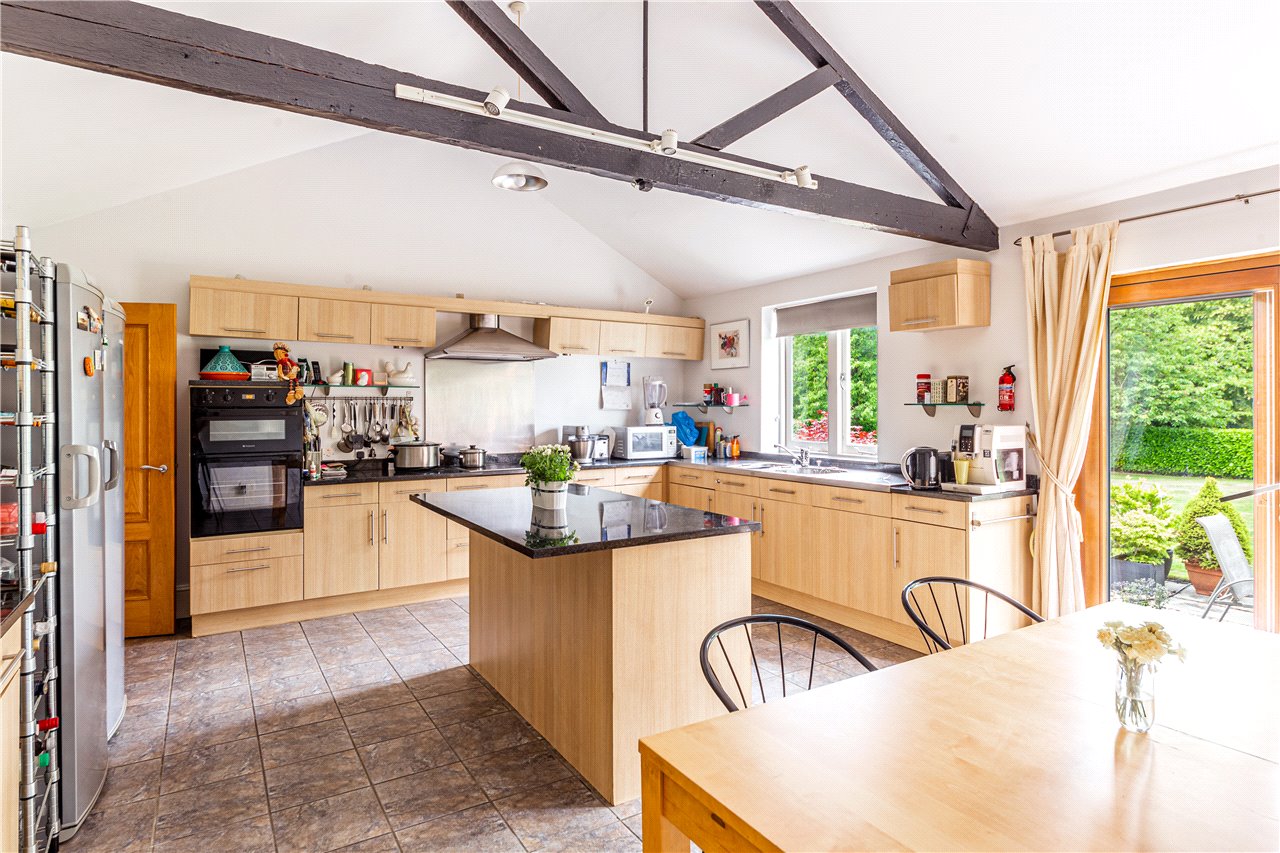 On the ground floor there are three reception rooms, including a large living room with feature fireplace which overlooks the central courtyard and an attractive dining room which opens into a spacious family room with log burner. A generous kitchen/breakfast room is fully fitted with an excellent range of units and integrated appliances.