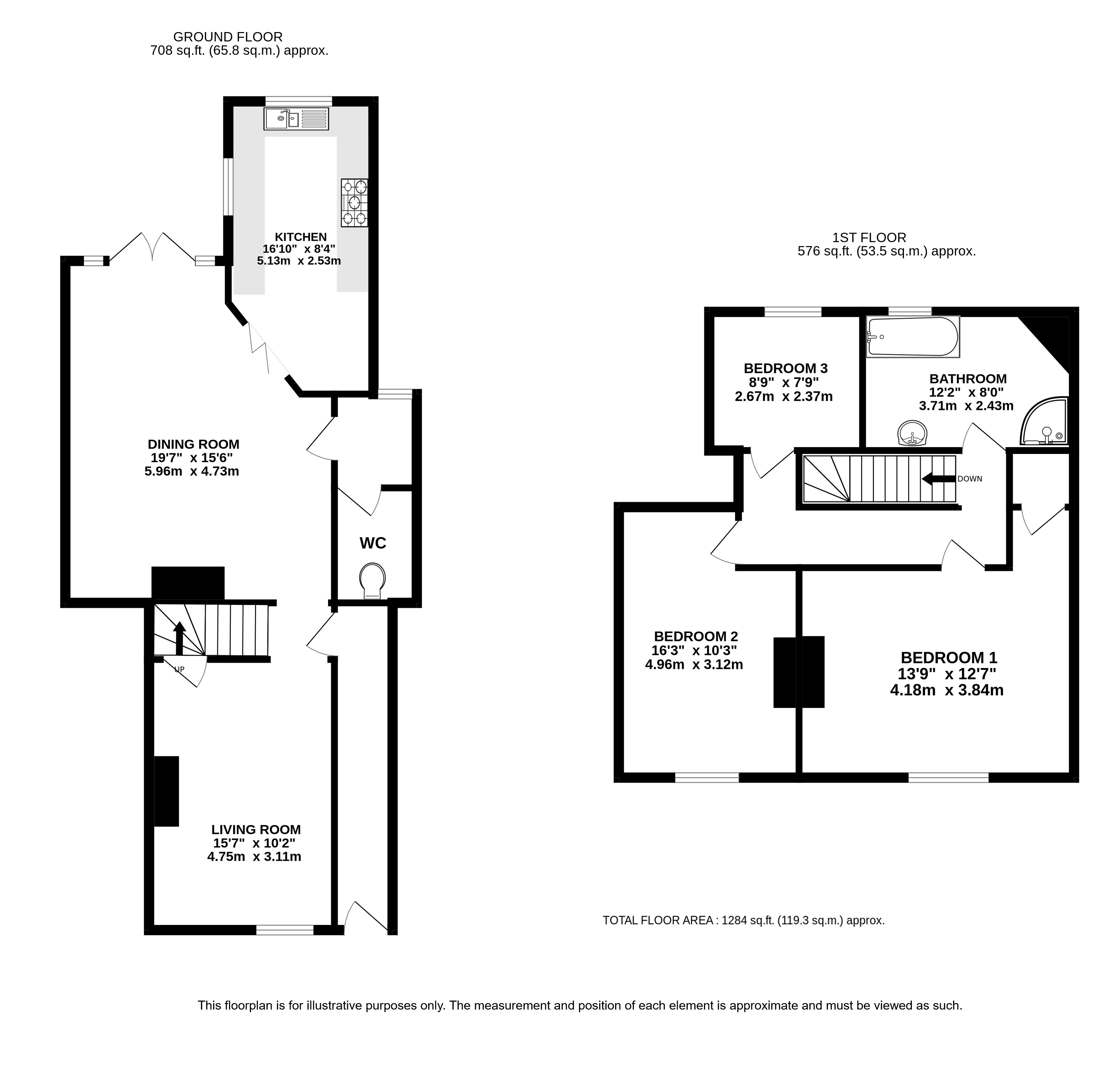 The living space includes two large reception rooms a comfortable sitting room with feature fireplace at the front of the property and a large dining room at the rear with French doors opening out to the garden, wood flooring runs throughout. The dining room opens into a fitted kitchen with an excellent range of units and space for a Range style cooker, dishwasher, washing machine and tumble dryer. A cloakroom with WC and hand basin has been installed by the current owner.