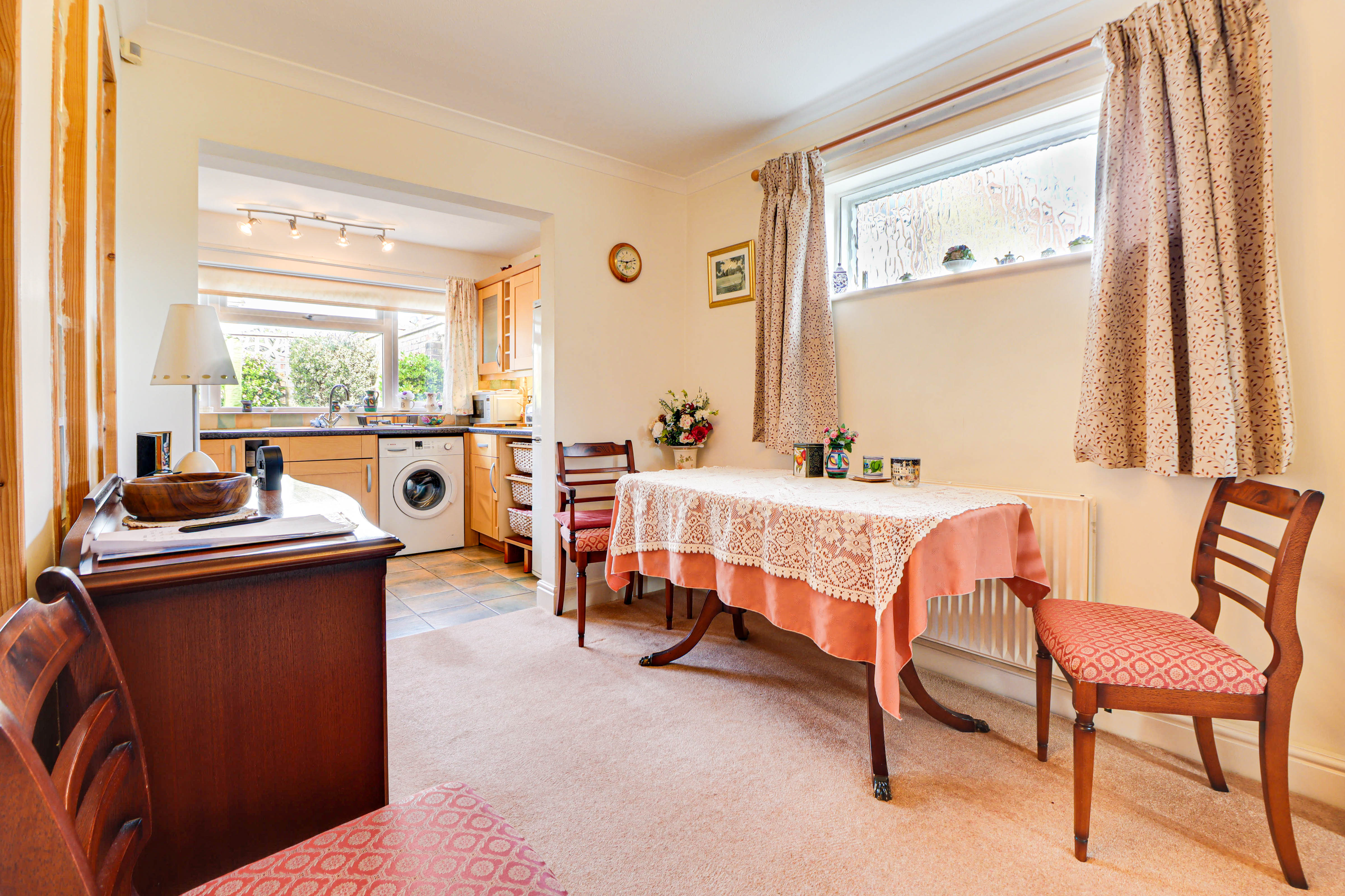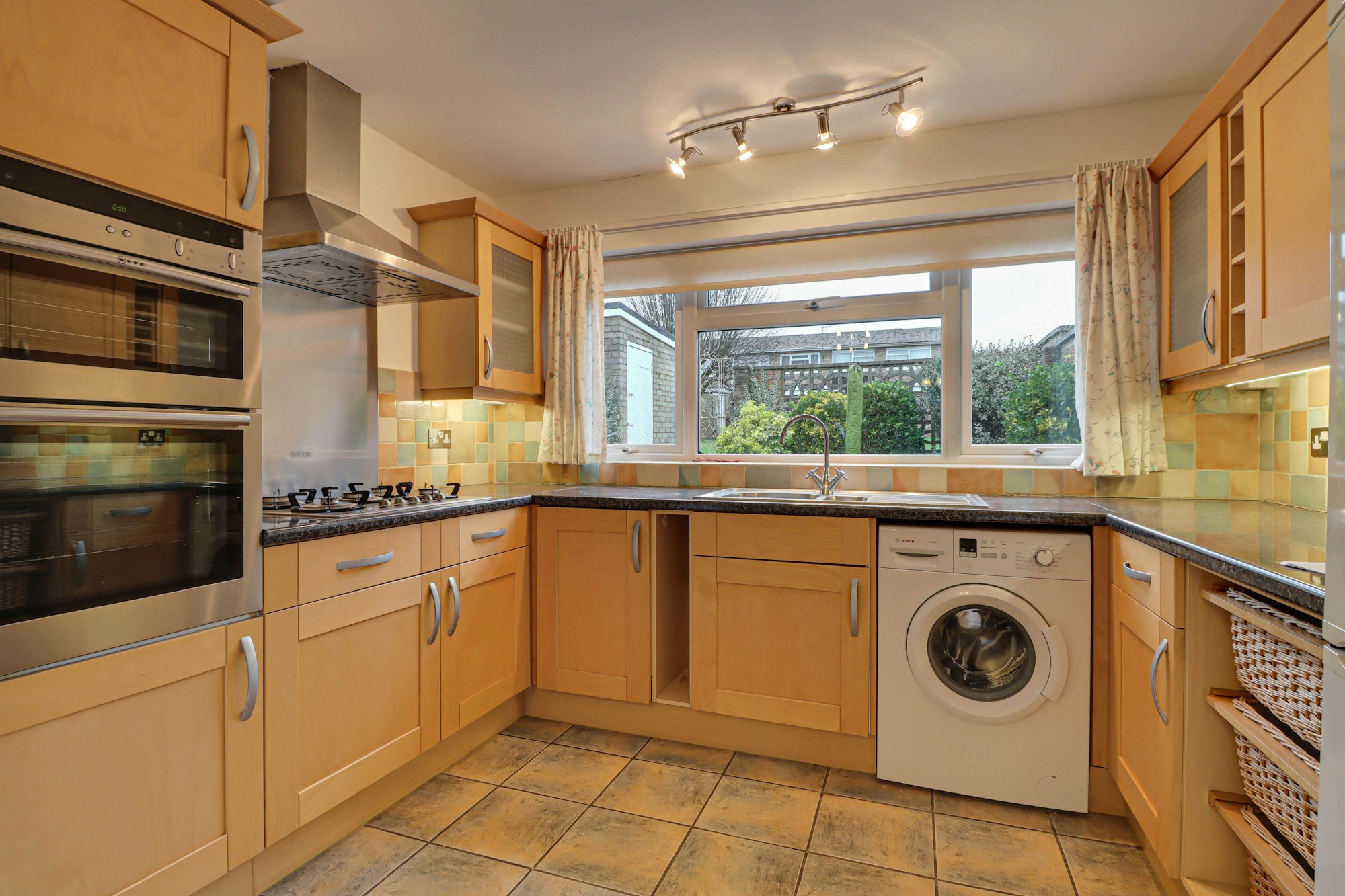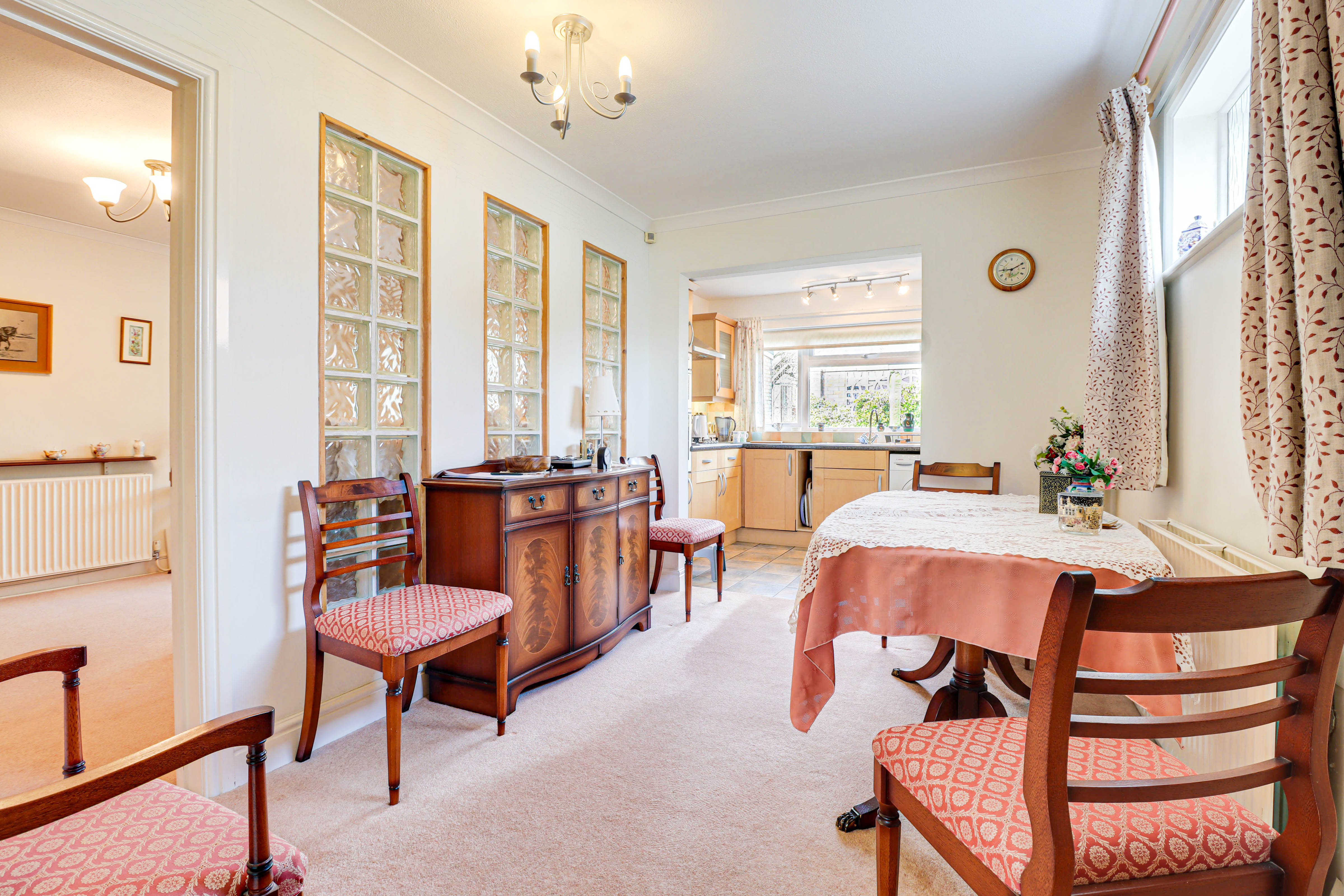 The accommodation includes an entrance hall, guest cloakroom and large living room which leads into a pretty conservatory at the rear. There is a separate dining room which opens into a fitted kitchen with a good range of units, built-in eye-level oven, gas hob, space for a fridge freezer and plumbing for a washing machine.