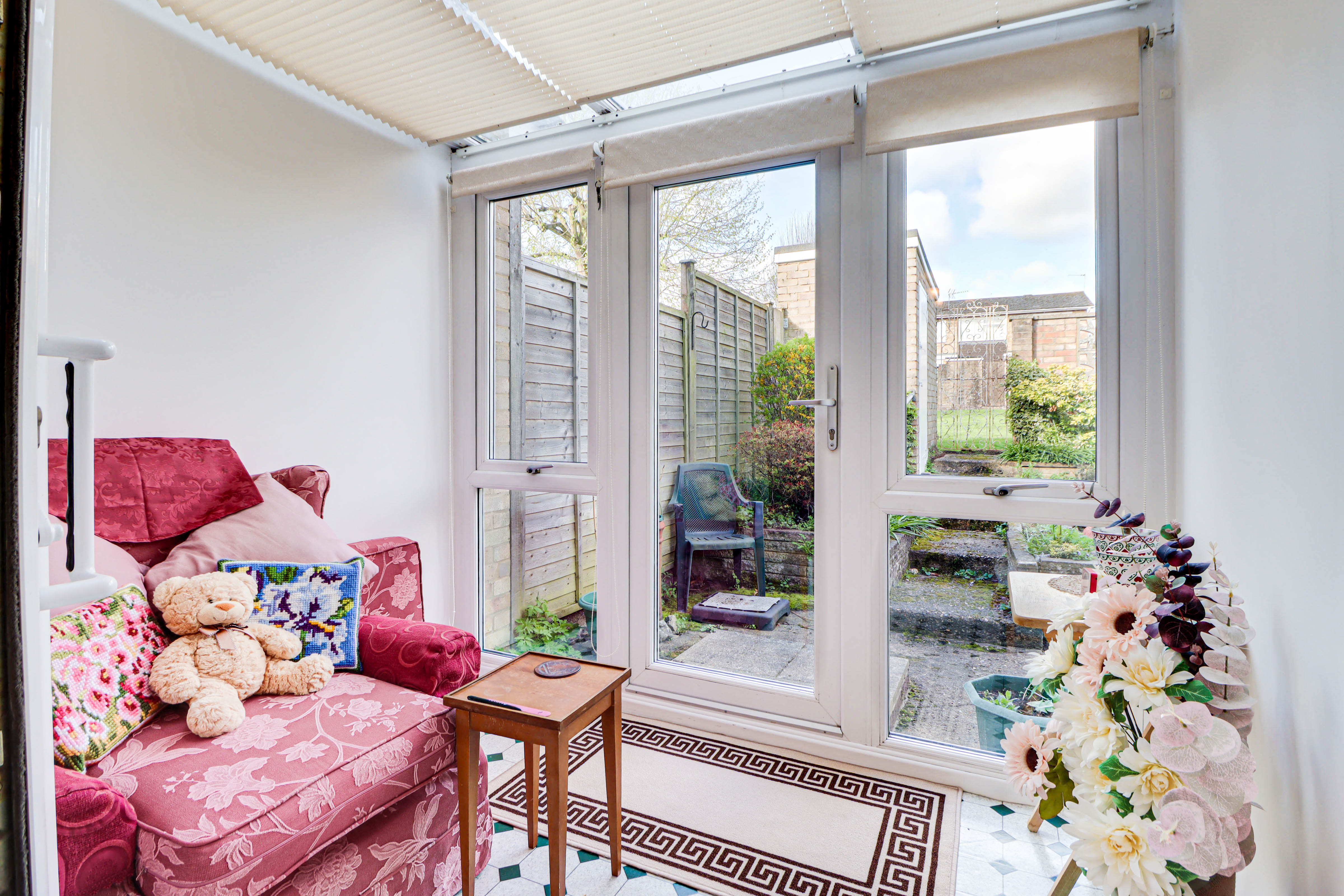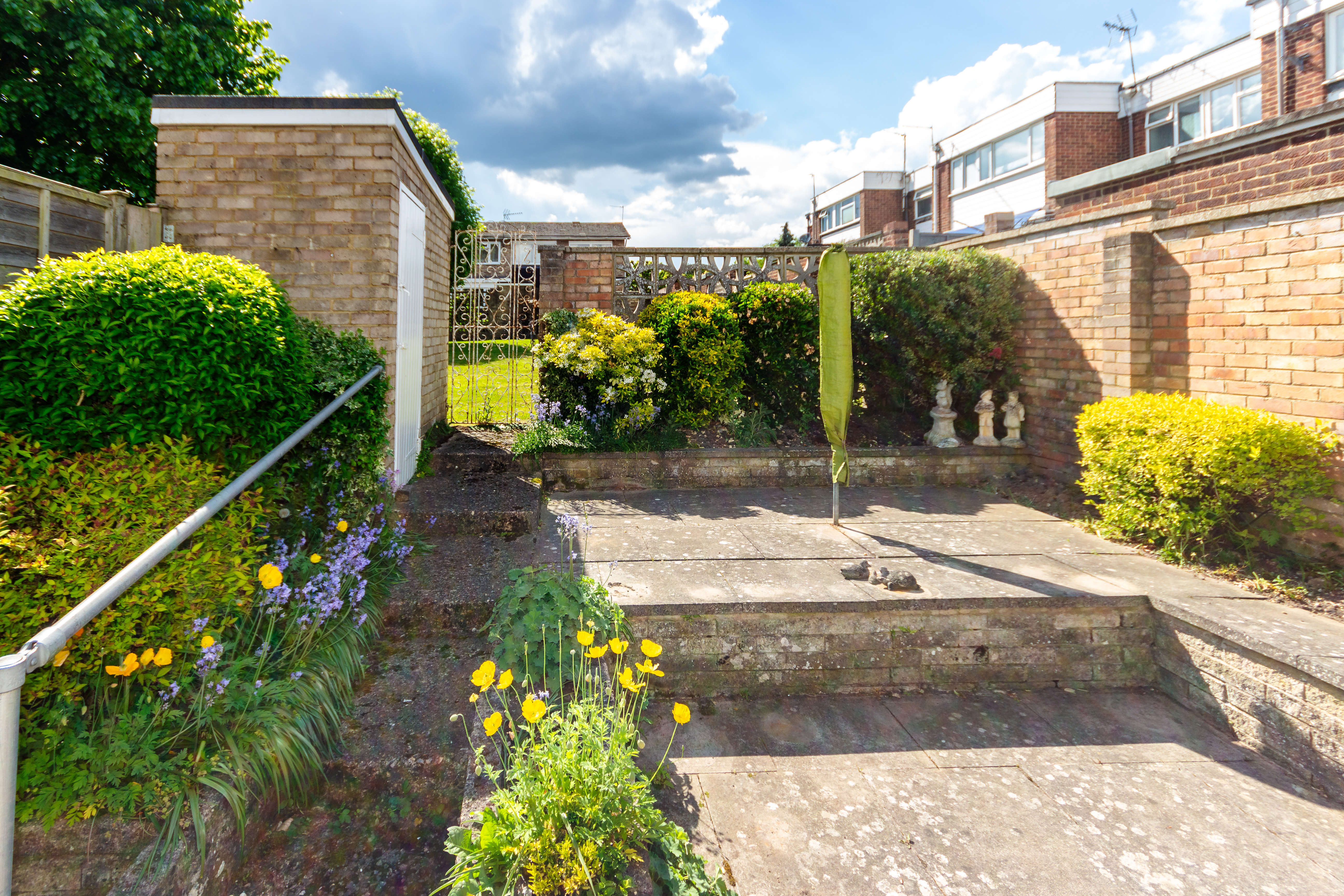 Outside the courtyard garden is paved for low-maintenance, steps lead up to a useful brick built storage shed. The property backs onto communal gardens and a gate at the rear gives access out to the gardens - a wonderful benefit of living in The Park!