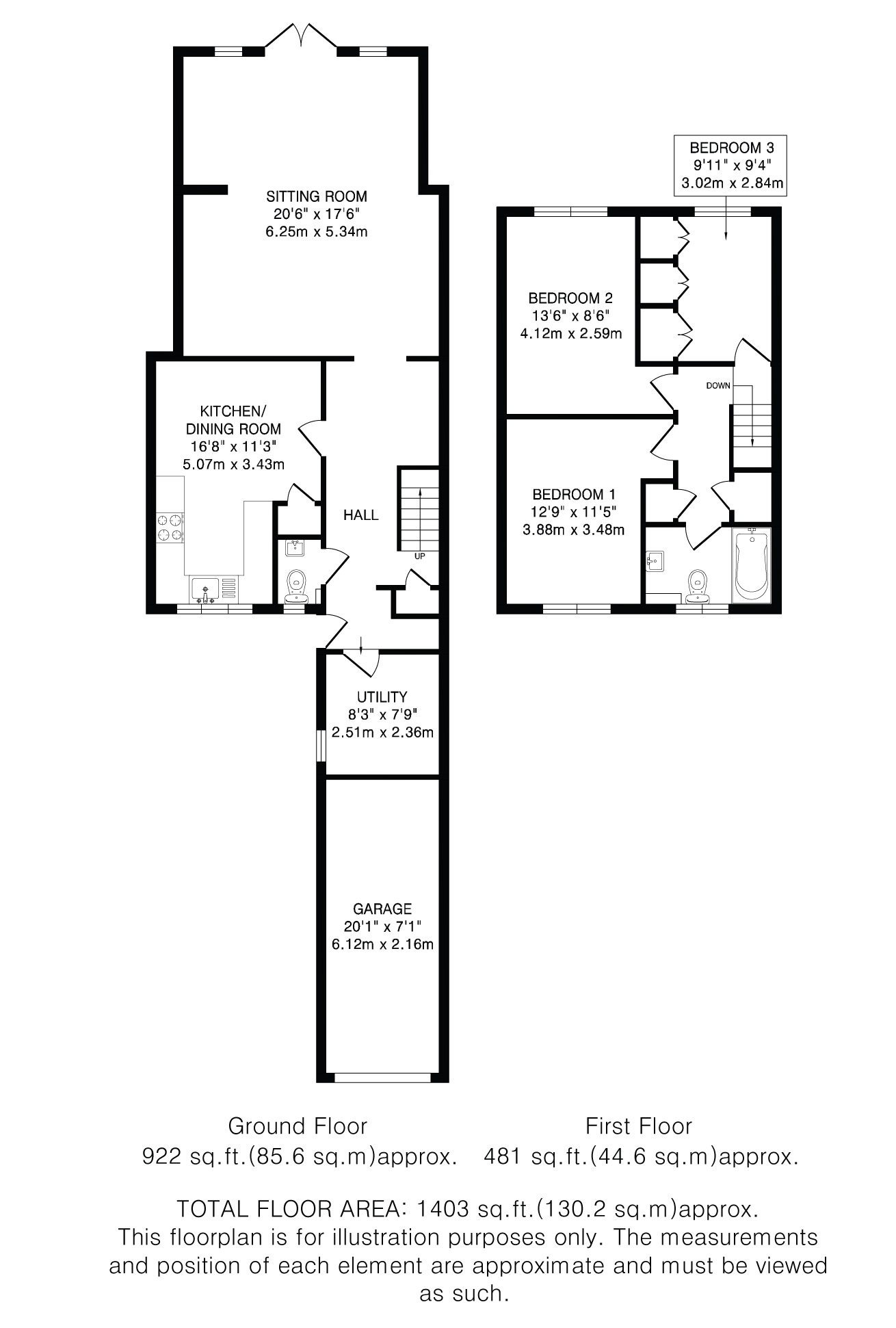 The entrance leads into an attractive hallway giving access to a large kitchen which is fully fitted with a stylish range of units with built-in oven and hob and dining area. There is then a spacious extended living room with patio doors leading out to the garden. The garage has been partly converted to a utility room with plenty of extra storage units and and space for a fridge/freezer. The remaining garage provides excellent storage. A fitted cloakroom with WC and hand basin completes the downstairs accommodation. Upstairs there are three good size bedrooms and an attractive family bathroom with ample storage cupboards.
