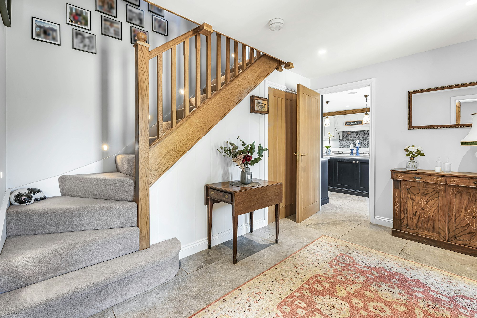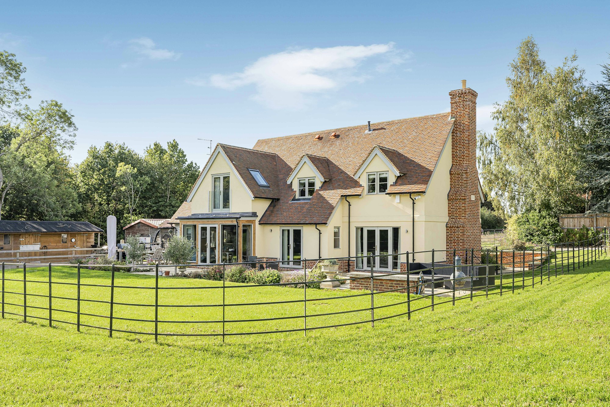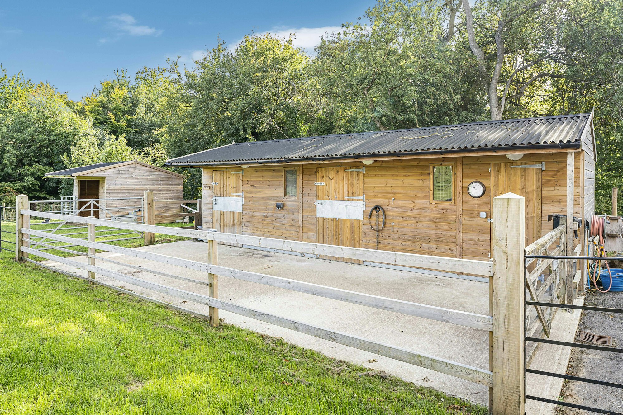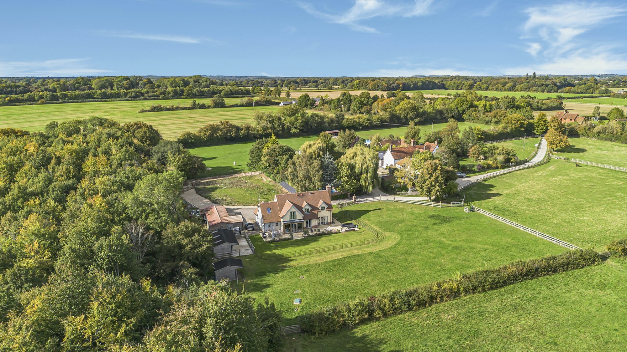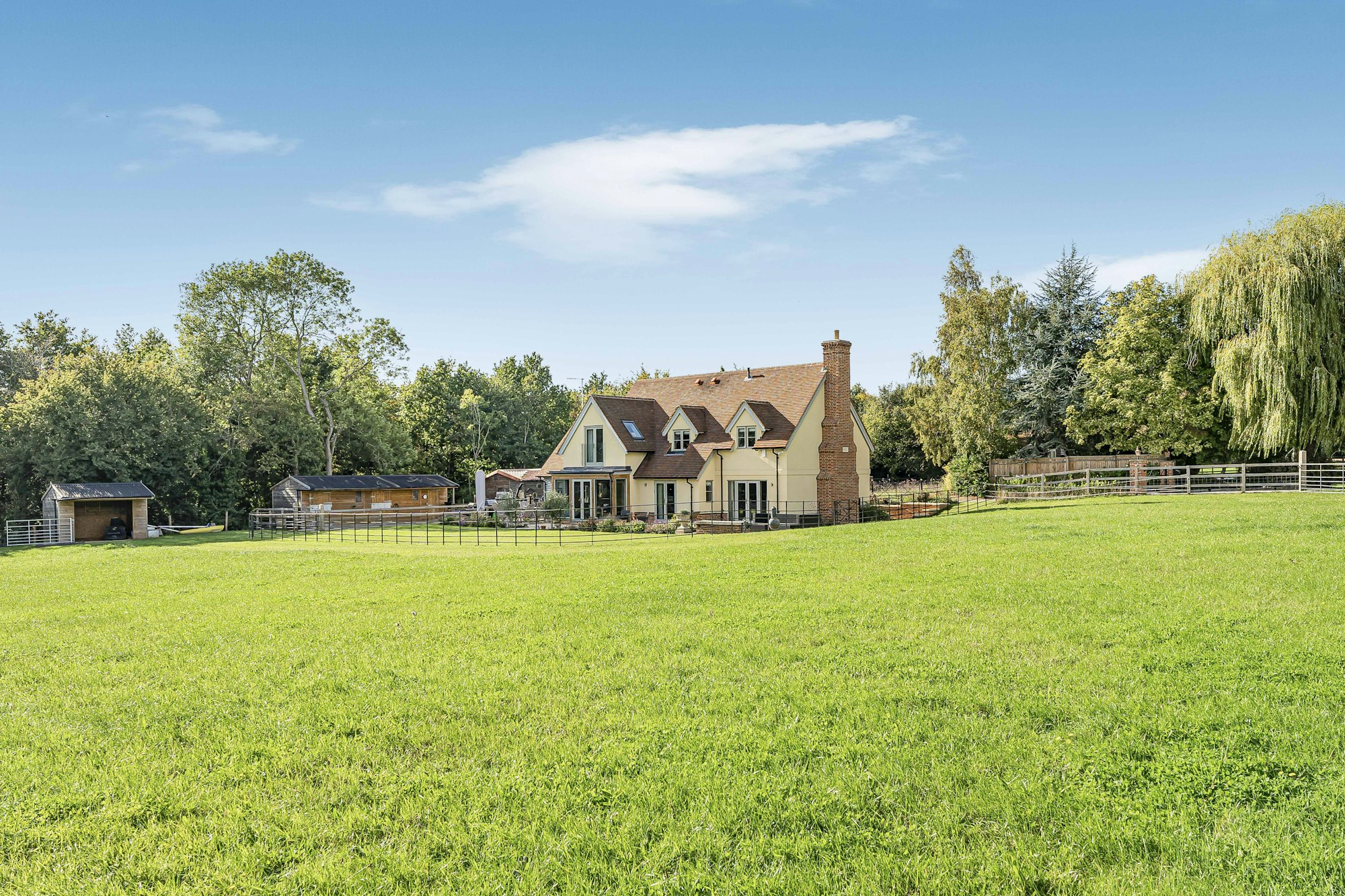 The grounds surround the house and are a mix of formal lawned areas delightful sunny paved patio and more natural paddock retained by mainly wrought iron estate style fencing, The sweeping driveway is laid to gravel with tarmacadam parking for multiple vehicles. There is a separate garage and stables building and enclosed yard with ample storage for tack and garden machinery if required. The property is accessed via a private driveway over 260 meters from Gaddesden Row and is quietly secluded being surrounded by woodland and pasture.