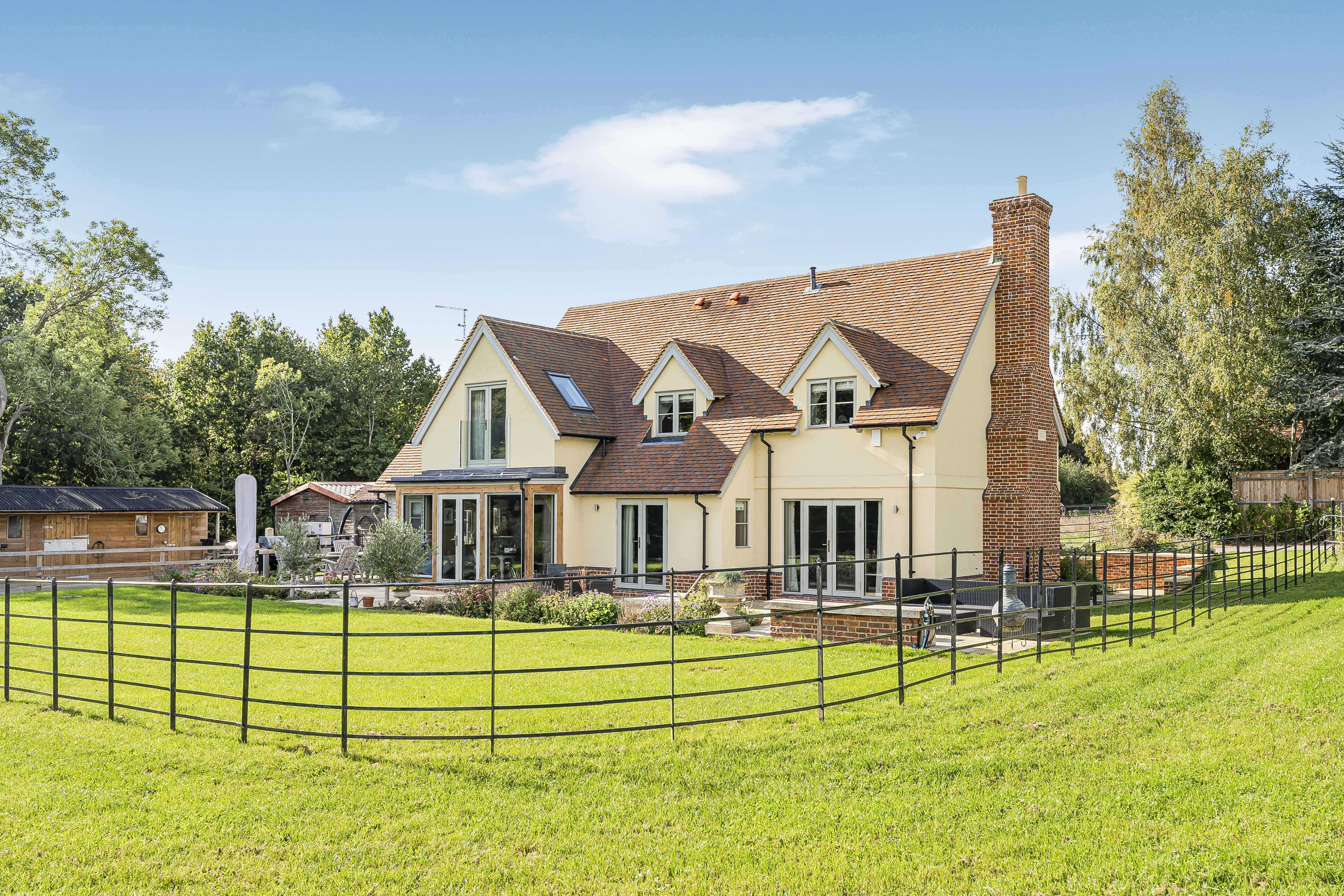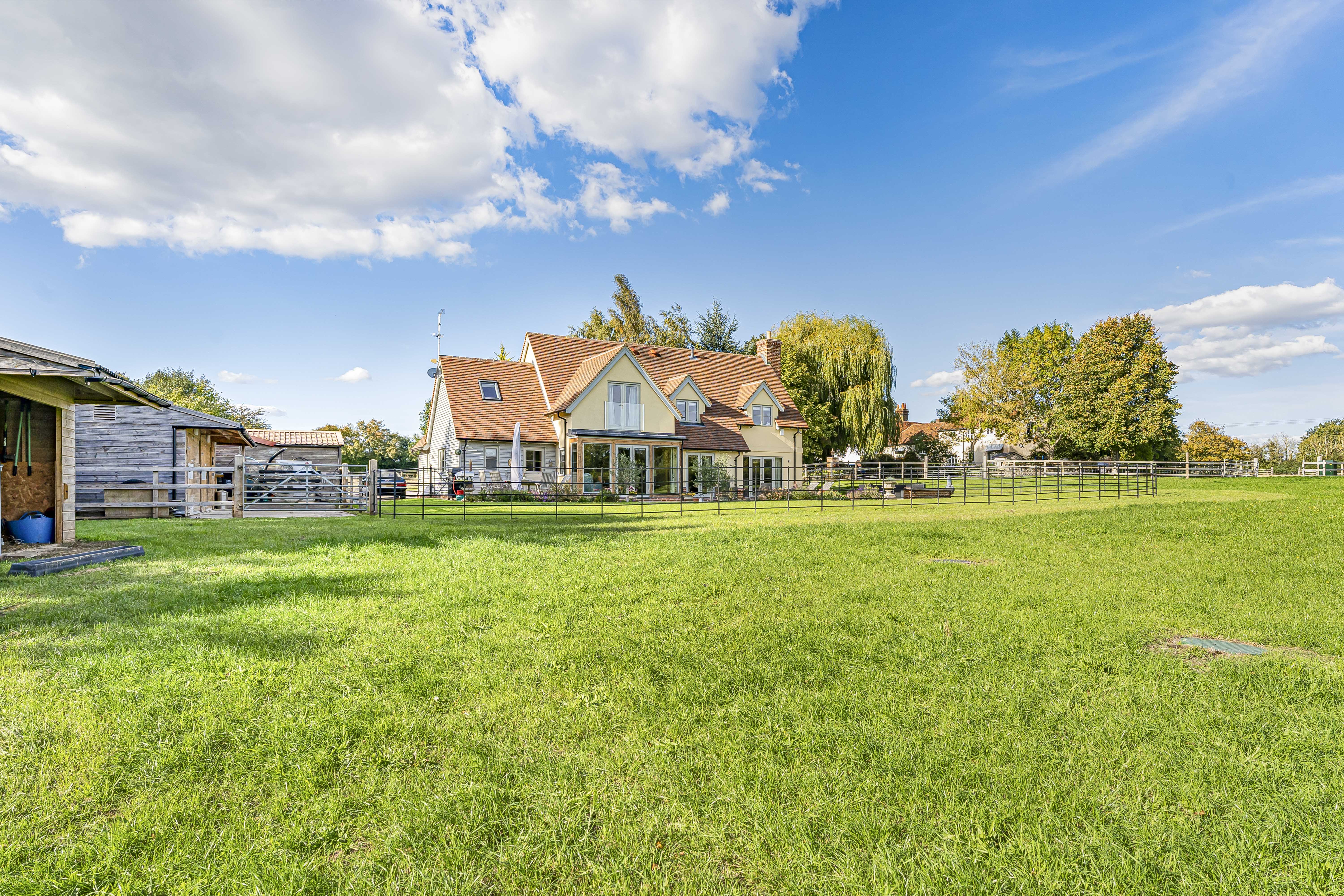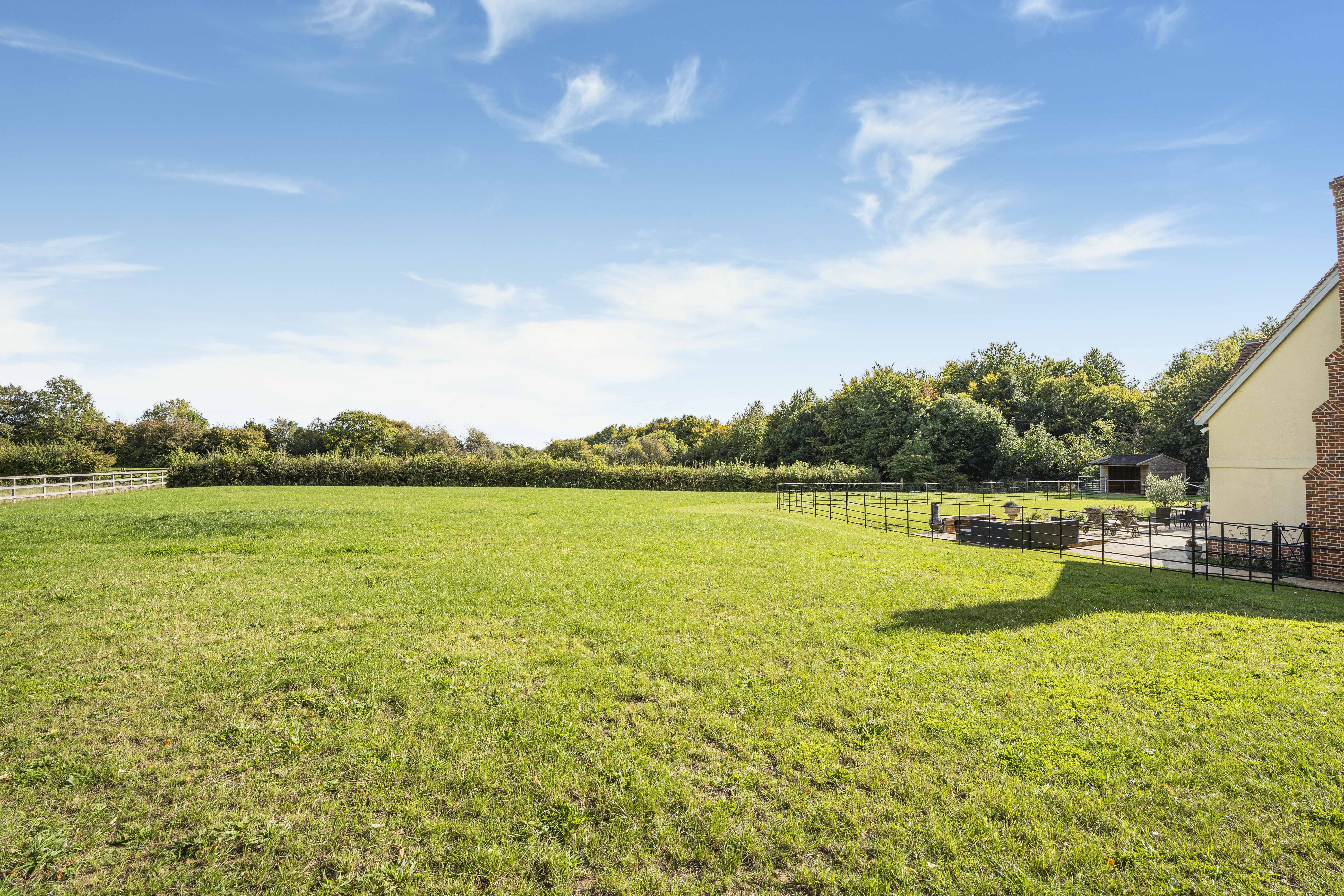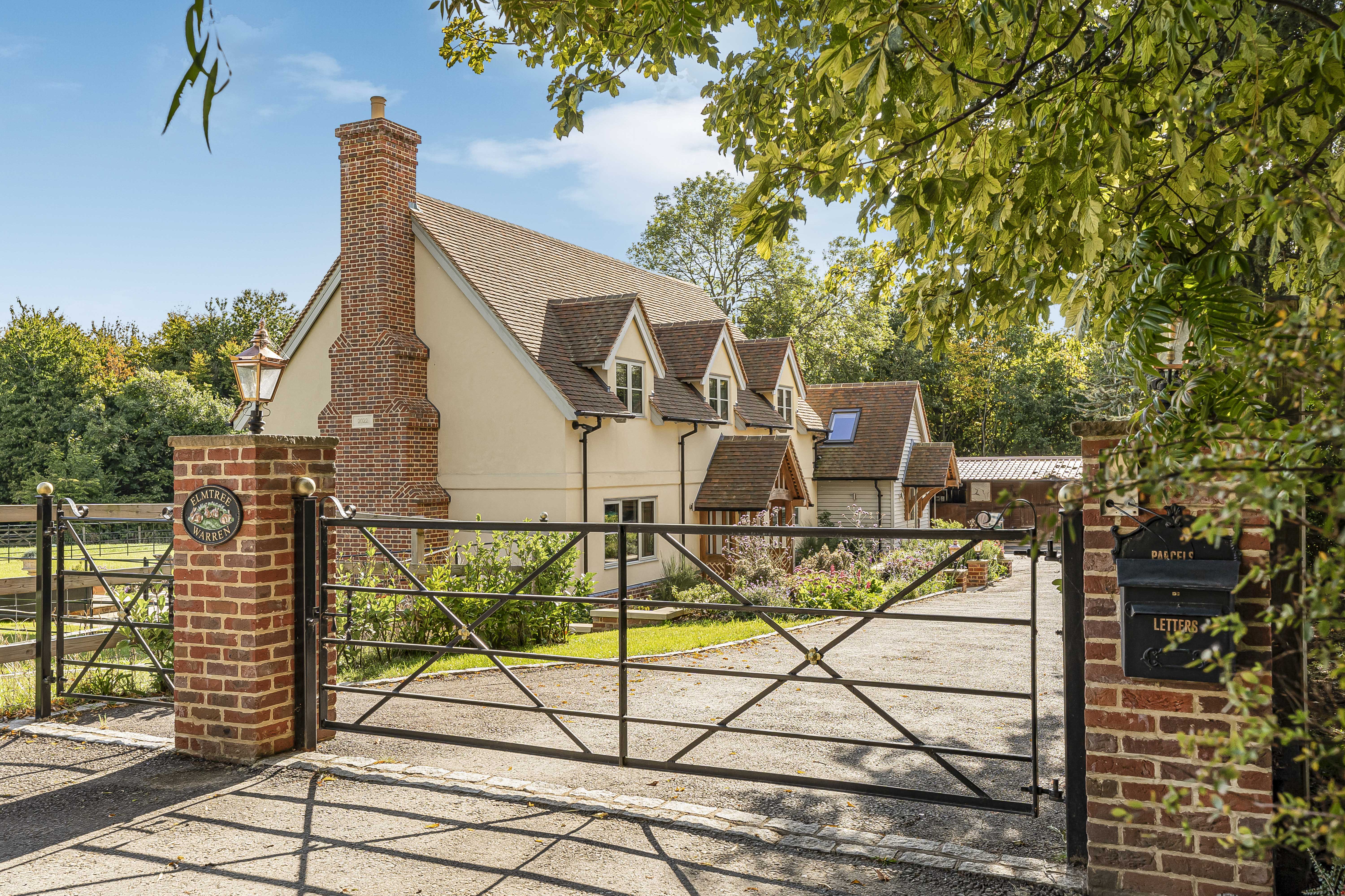 The grounds surround the house and are a mix of formal lawned areas delightful sunny paved patio and more natural paddock retained by mainly wrought iron estate style fencing, The sweeping driveway is laid to gravel with tarmacadam parking for multiple vehicles. There is a separate garage and stables building and enclosed yard with ample storage for tack and garden machinery if required. The property is accessed via a private driveway over 260 meters from Gaddesden Row and is quietly secluded being surrounded by woodland and pasture.
