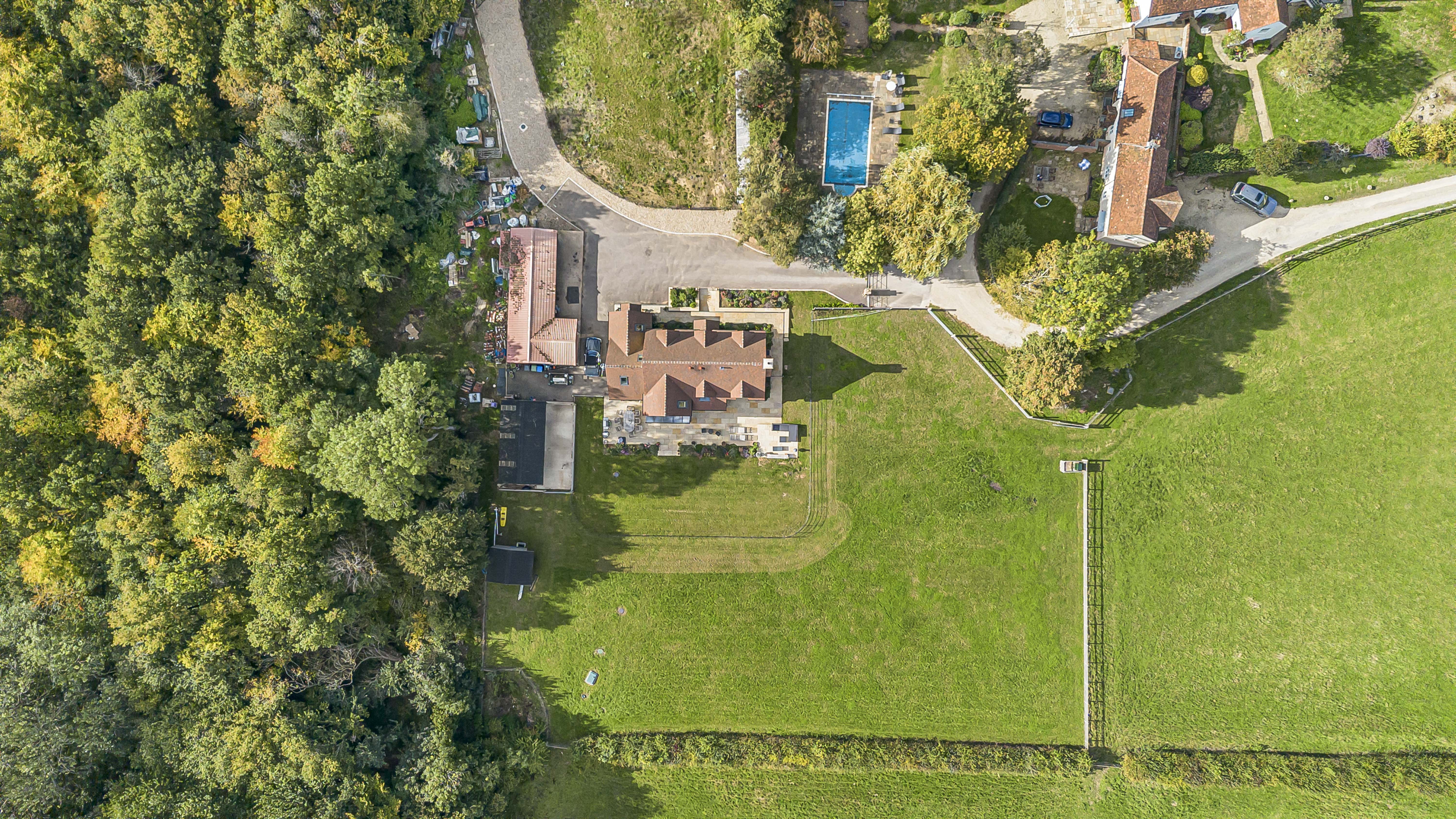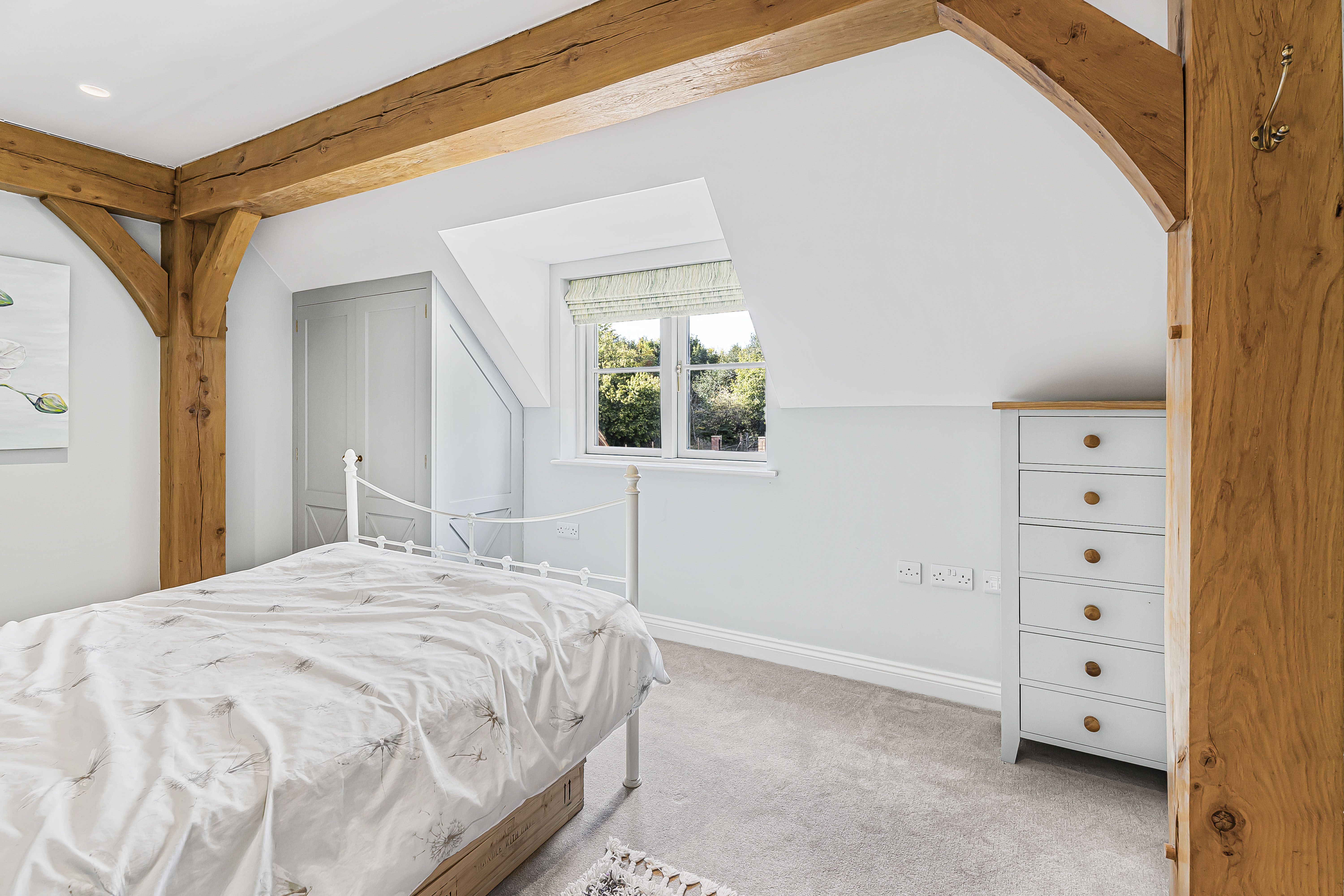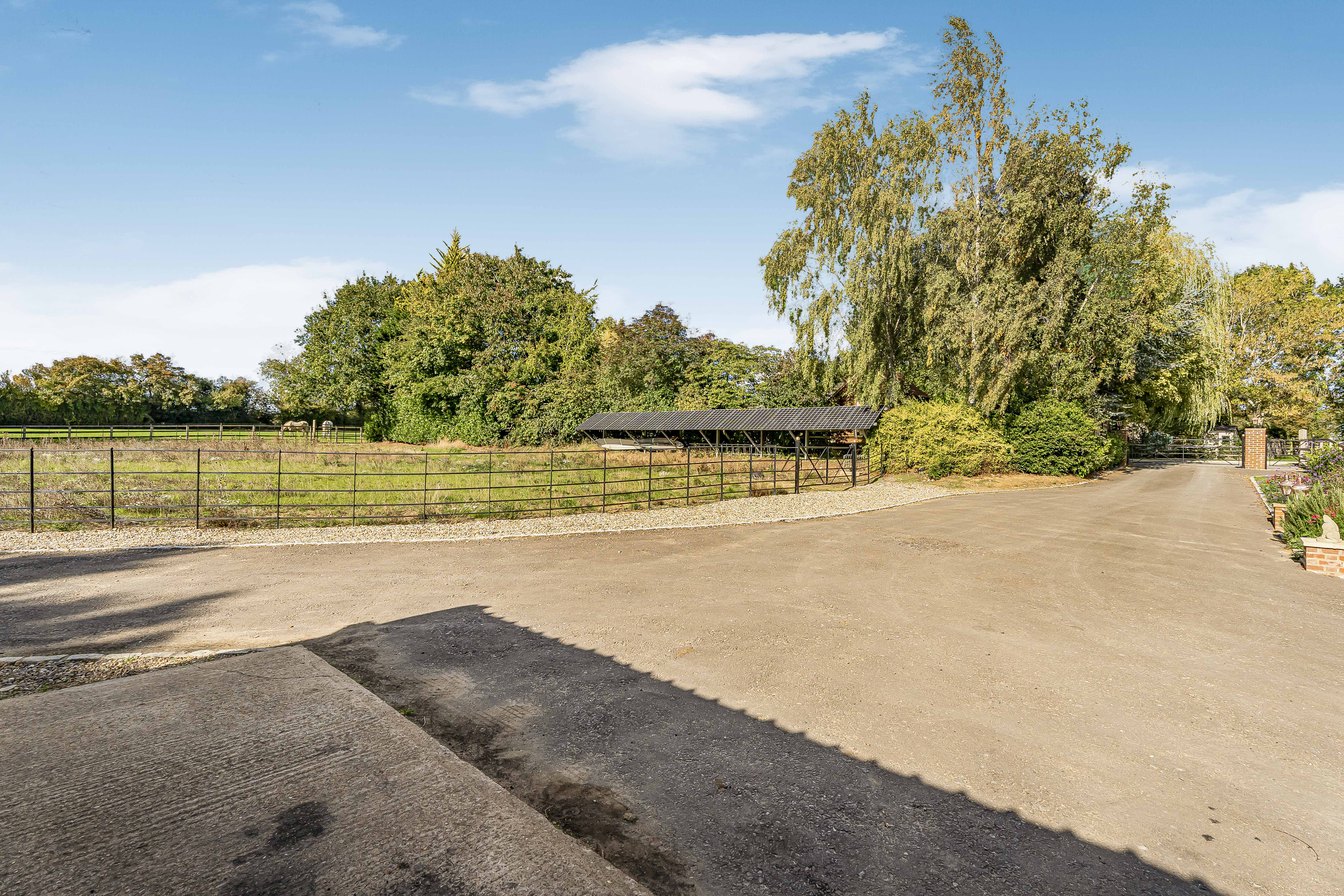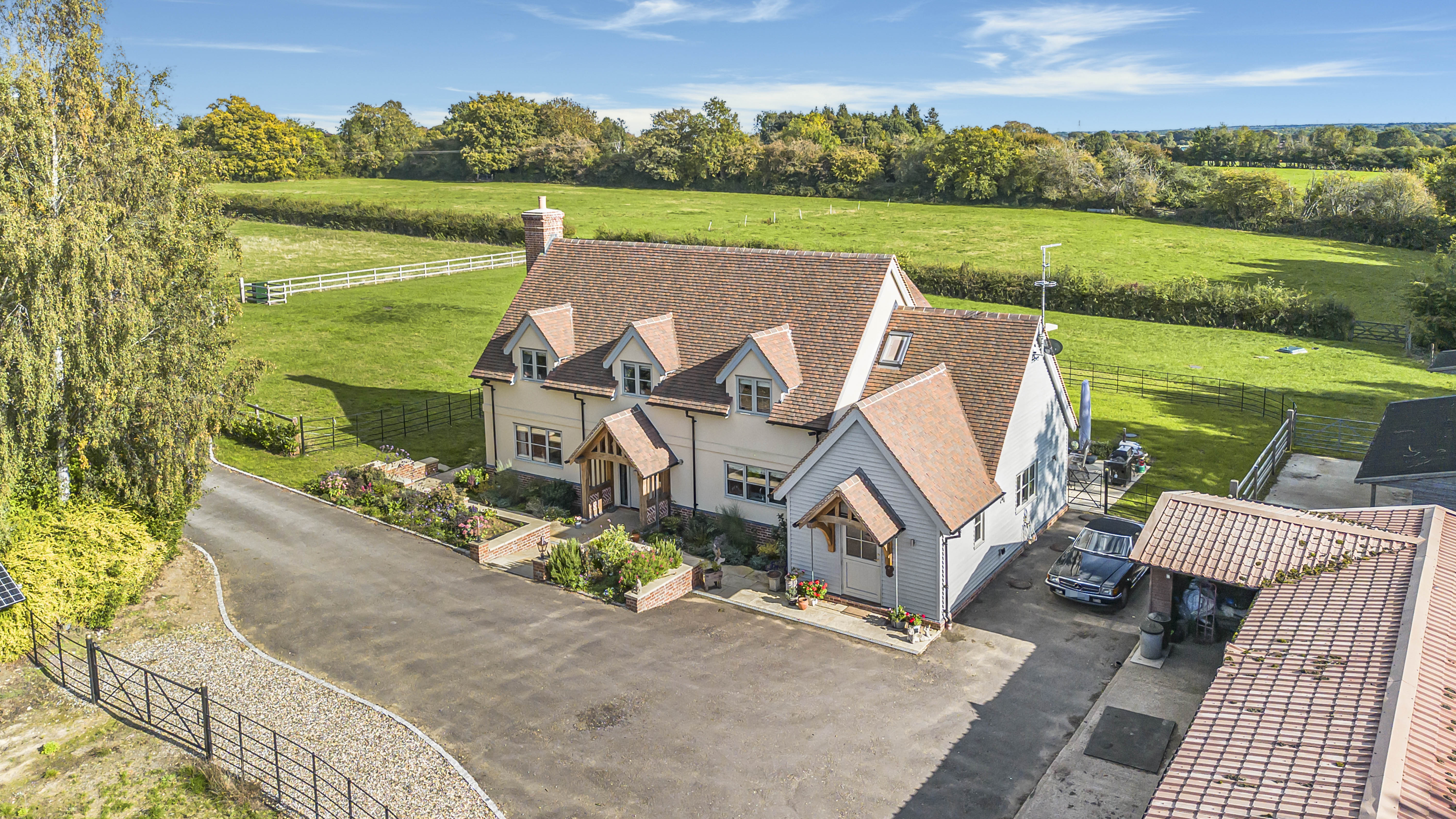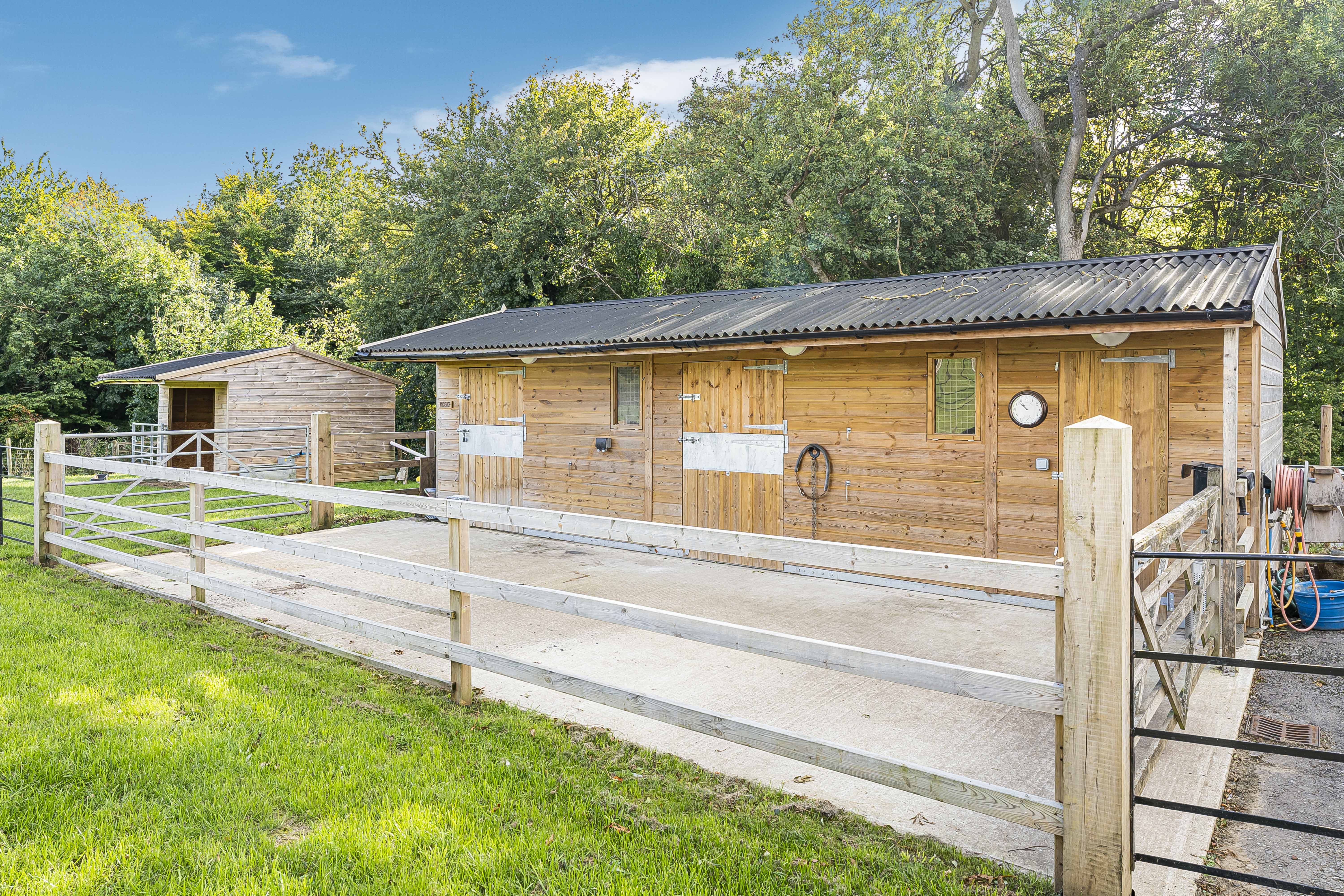 The grounds surround the house and are a mix of formal lawned areas delightful sunny paved patio and more natural paddock retained by mainly wrought iron estate style fencing, The sweeping driveway is laid to gravel with tarmacadam parking for multiple vehicles. There is a separate garage and stables building and enclosed yard with ample storage for tack and garden machinery if required. The property is accessed via a private driveway over 260 meters from Gaddesden Row and is quietly secluded being surrounded by woodland and pasture.