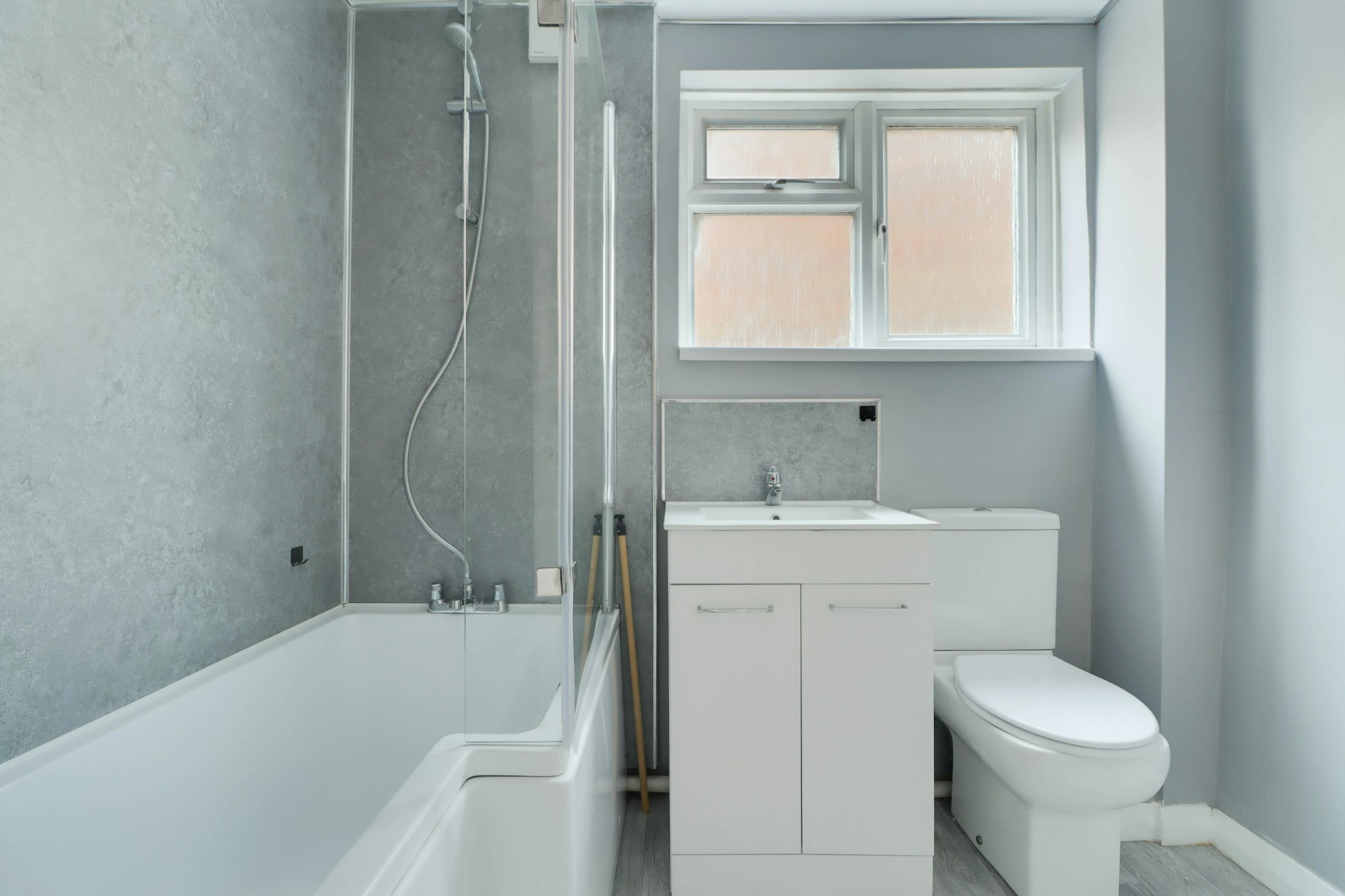 Upstairs there are two good size bedrooms and bathroom with three-piece suite and shower with glass screen over the bath.