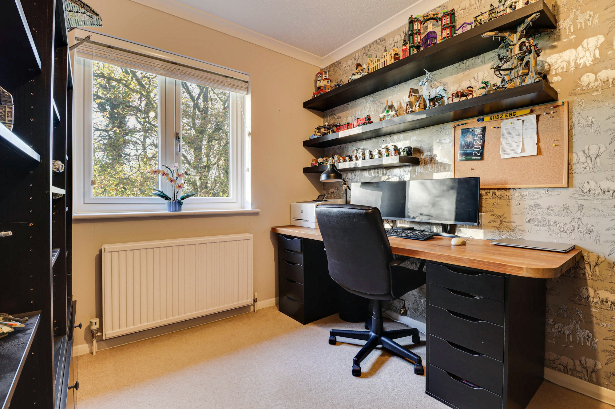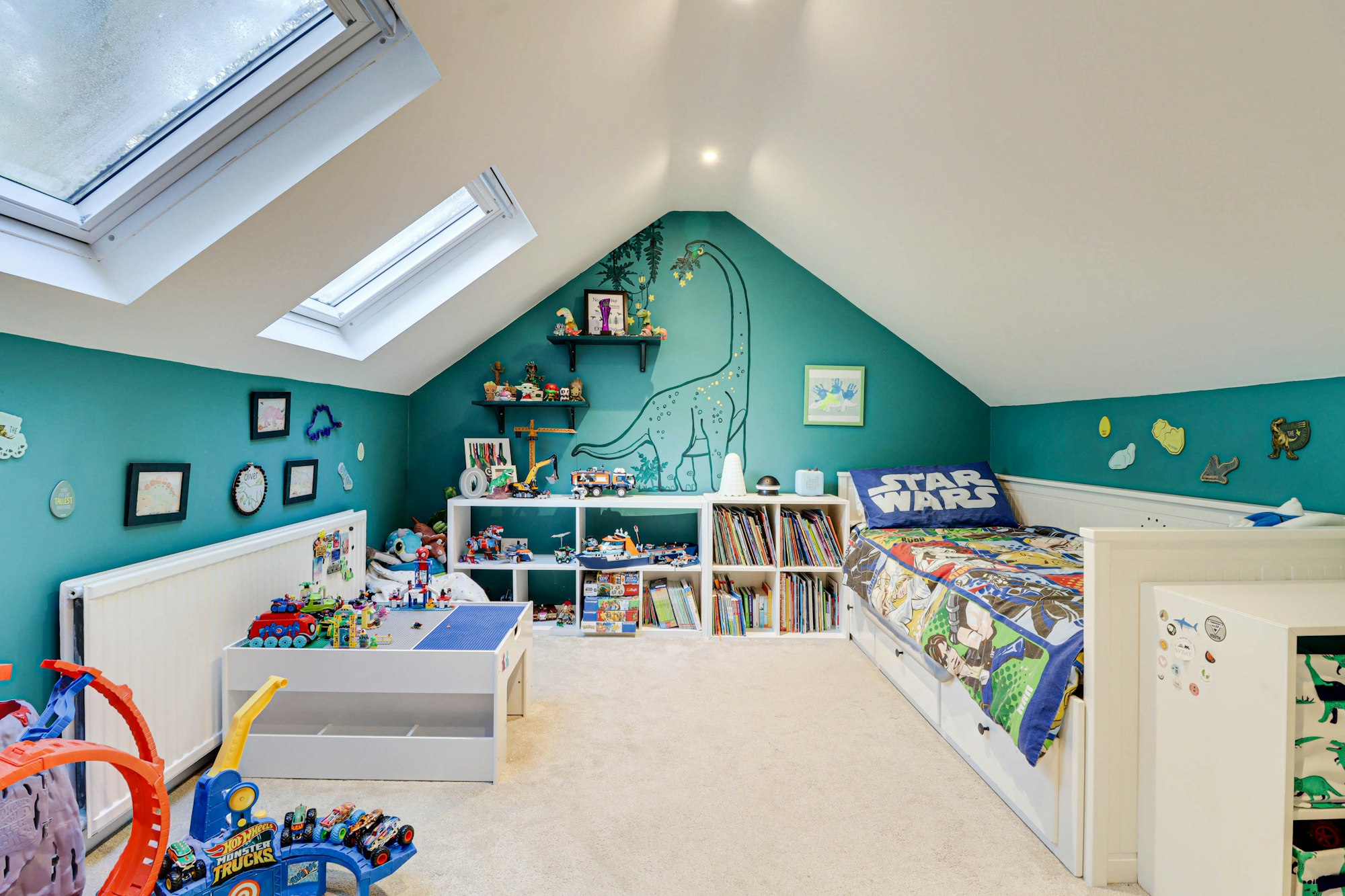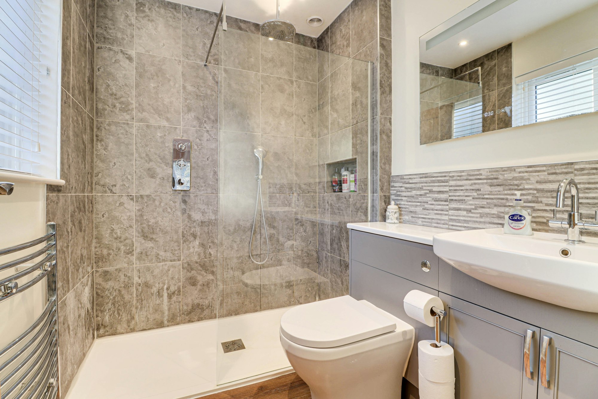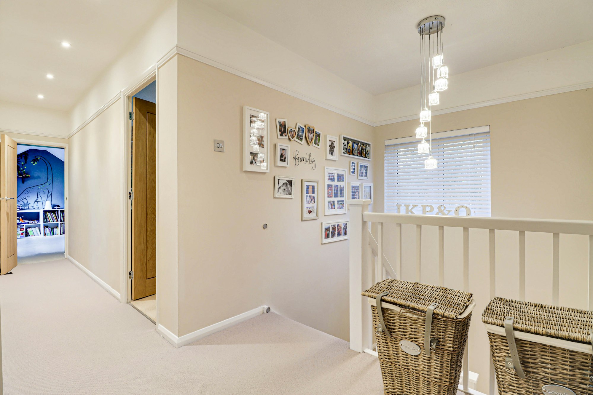 Upstairs there are five double bedrooms. The principal bedroom has an excellent range of fitted wardrobes and a modern ensuite with electric underfloor heating. A further refurbished family bathroom, also with underfloor heating, serves the remaining bedrooms.