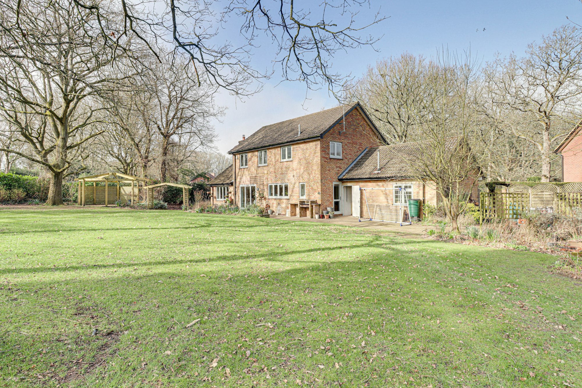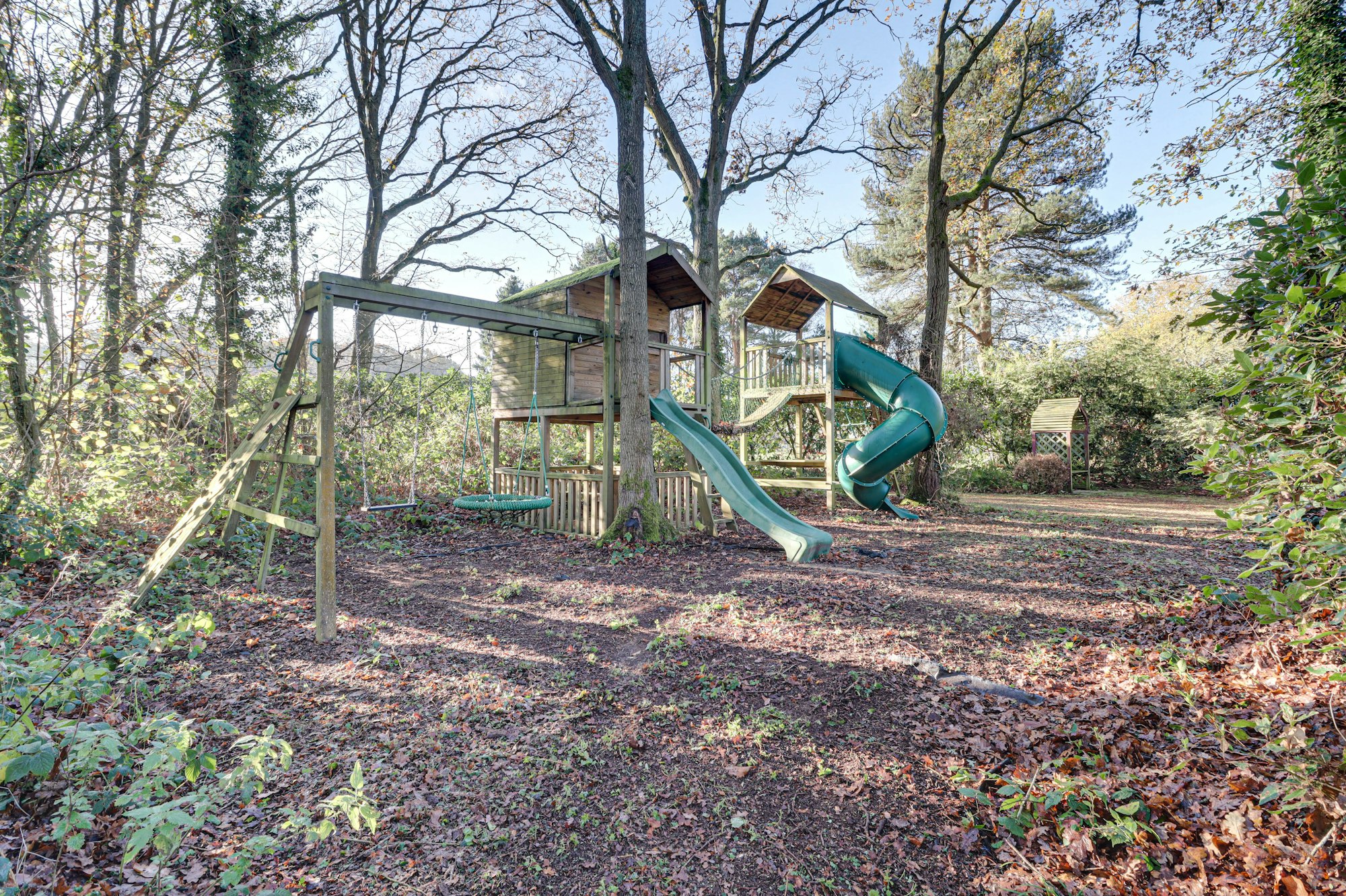 Outside the driveway provides ample off-street parking and leads to a generous double garage with electric folding door. An EV charger has also been installed. The house sits in a plot totalling approximately one-third of an acre with large rear garden, mainly laid to lawn with patio area, gazebo, decking, a greenhouse, large shed and children's play area with climbing frame and swings.
