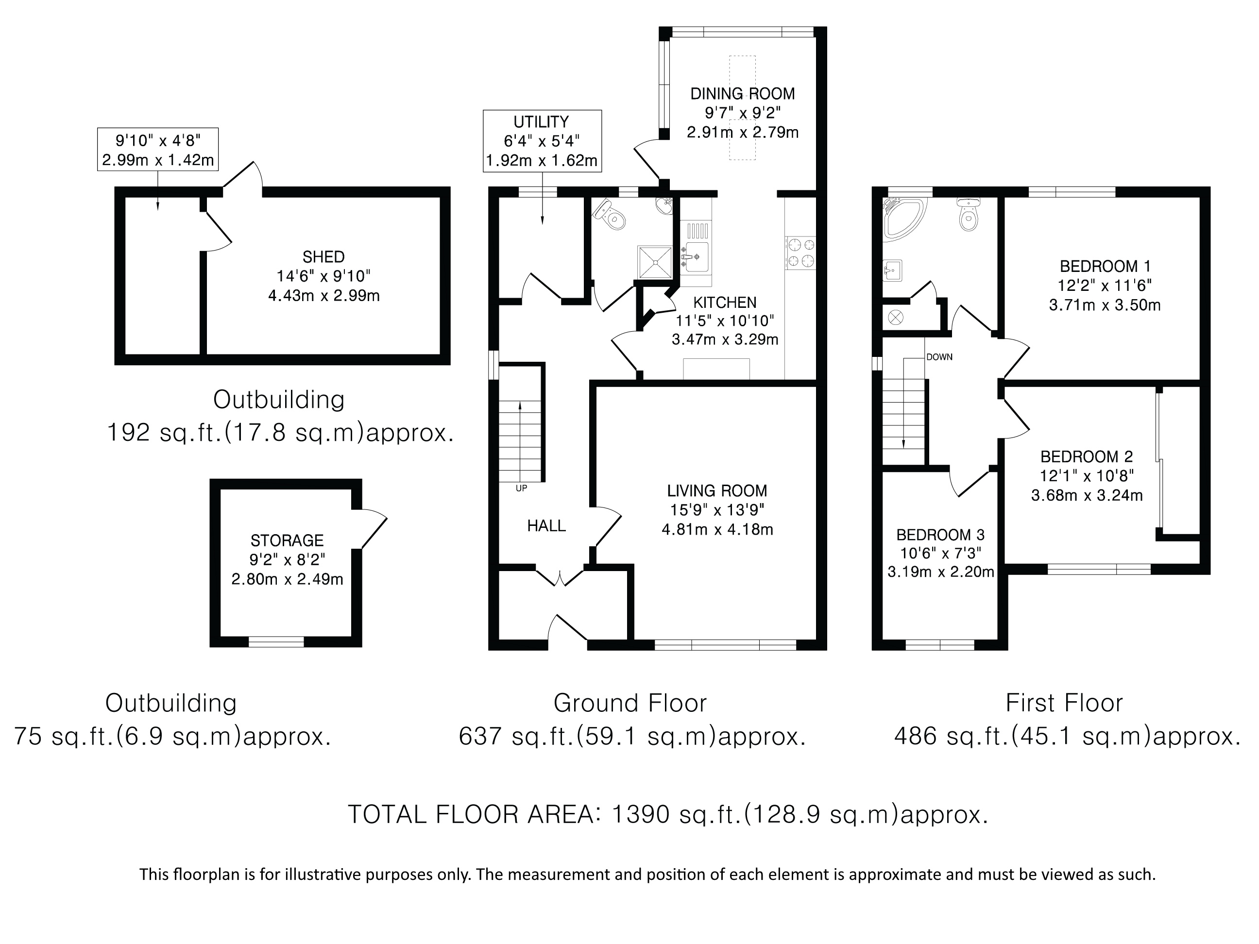 Upstairs there are three good size bedrooms served by a modern family bathroom with corner bath.