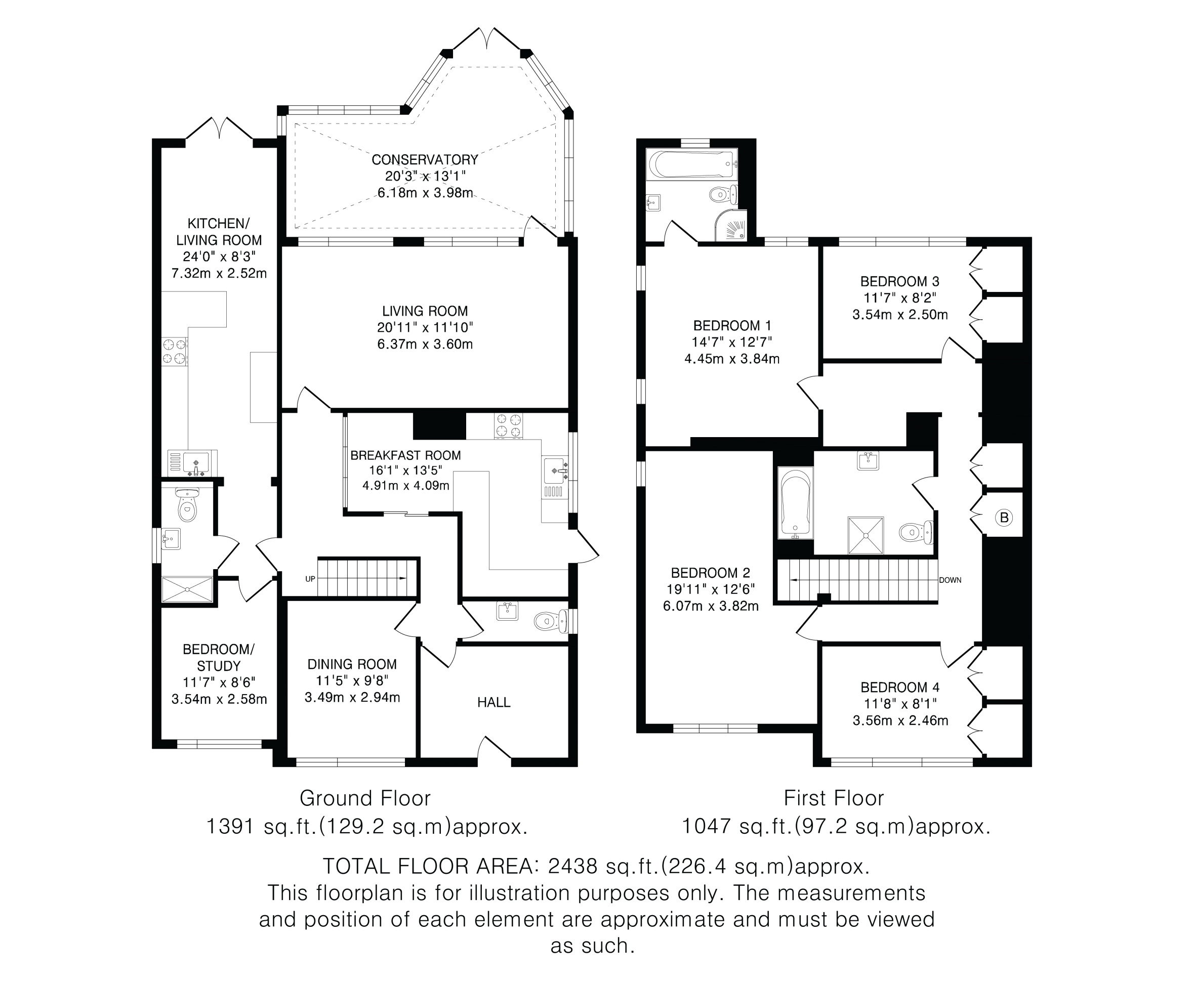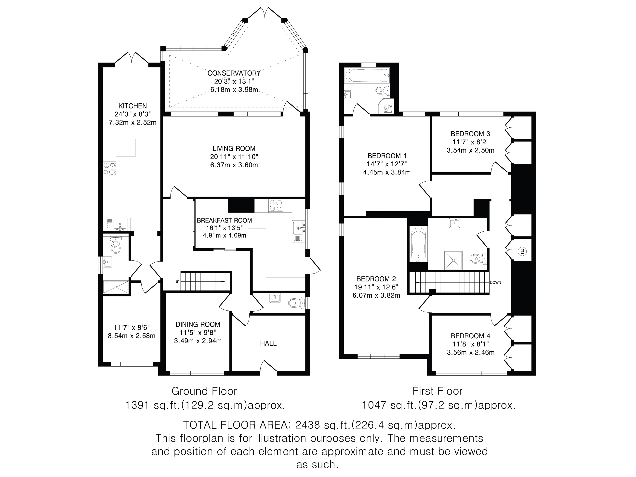 Upstairs there are four double bedrooms. The principal bedroom benefits from an ensuite bathroom with three piece suite and separate shower cubicle. A further family bathroom also with bath and shower serves the remaining bedrooms.